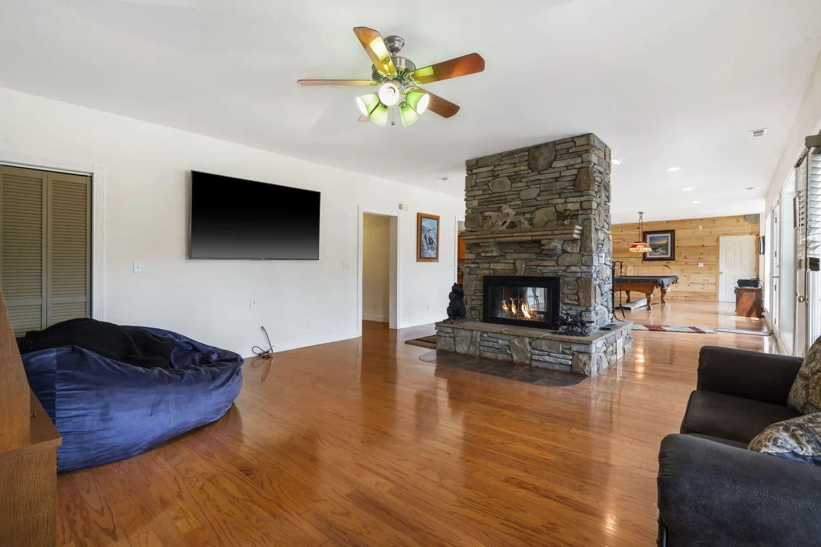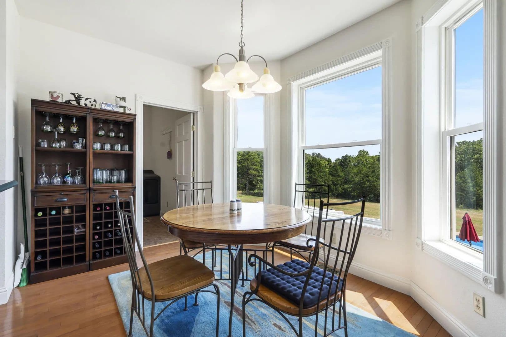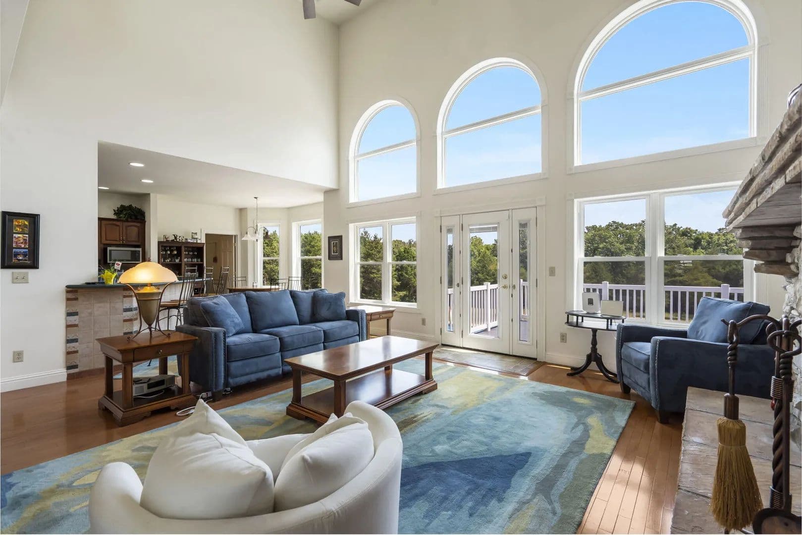 Welcome to Roberts Ridge! The home has a large open floor plan, when you walk in the front door you have an open foyer leading to the formal living room, with large windows spanning across the back yard, hardwood floors and massive stone fireplace. The primary bedroom and bath are located on the main floor. The staircase will take you to the upper level where you will find additional bedrooms, 2 more bathrooms, and a bonus room or 4th bedroom. Off the kitchen on the main level the stairs will take you to the fully finished basement with another full kitchen, family room and recreation room with yet another stone fireplace, safe room, workout room, mud room, and another full bathroom and access to the lower level patio with yet another outdoor fireplace. Outside you will find plenty of room to roam on this 131 acre farm with hayfields, 3 ponds, bottom land, wooded trails and access to Beaver Creek frontage to spend plenty of time in the water or floating creek to watch the bald eagles flying high above or chasing some great fishing. Need more space for trail rides or livestock, this property has several outbuildings, workshop and a 100x 60 red iron constructed barn with stables and a tack room that is fully equipped with water and sewer. If you have been looking for a private retreat or just a little elbow room this place has it all. Seller also has a list of farm equipment, household goods, and tools that can be purchased. Places like this don't come available often, with a country setting and only 15 minutes from Forsyth, nearby access to bull Shoals Lake, or a short drive into Branson for area entertainment.