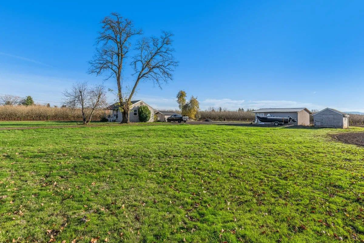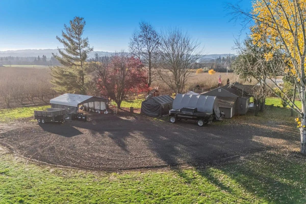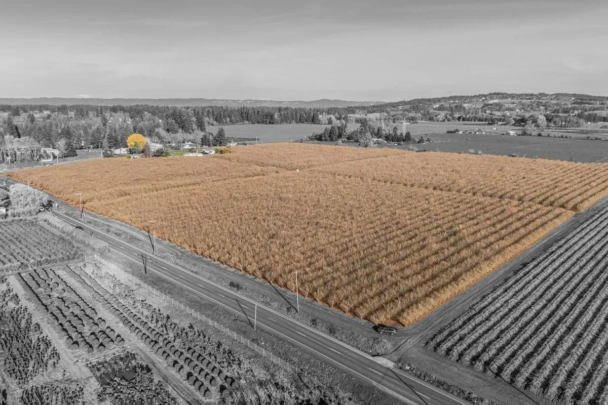 Discover an exceptional 44-acre farm property in the heart of Washington County, featuring 40 acres of productive Jefferson hazelnuts planted in 2015 on a double density 9' x 18' row spacing. The orchard is situated on well-drained Quatama and Aloha soils—highly regarded for their consistency, vigor, and long-term crop performance. With established water rights from the Tualatin River, this property offers the rare combination of premium soils and reliable water supply ideal for continued success. Two dwellings are included on the property, providing valuable flexibility for multigenerational living, employee housing, or rental income. The primary home, built in 1948, offers approximately 1,741 sq ft of living space, while the second residence, built in 1940, adds an additional 700 sq ft. Whether you’re looking to expand an existing operation or establish a new agricultural investment in one of Oregon’s most sought-after farming regions, this property is a standout opportunity.