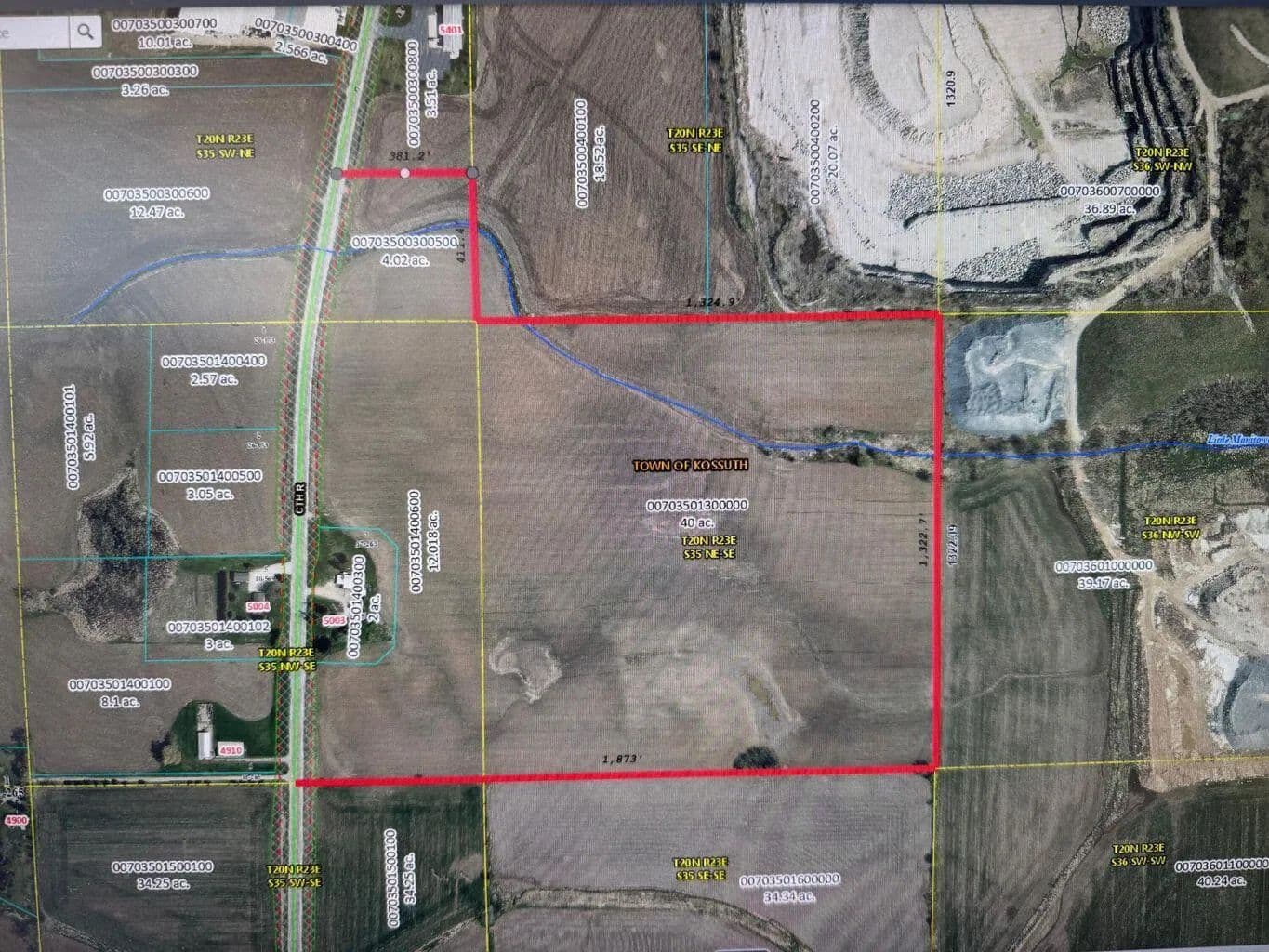Three contiguous parcels totaling approximately 56.038+/- acres in the Town of Kossuth. Land consist of primarily tillable acreage zoned ''GA'' General Ag & ''SE'' Small Estate and is located near CTH R & HWY 310.