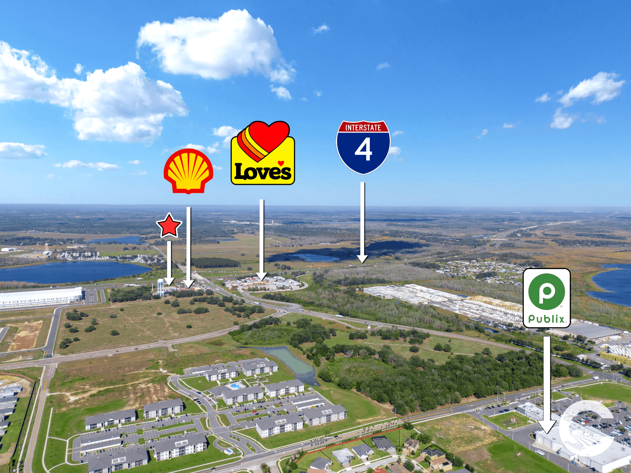 2.4 acres located at I-4 & SR 559 behind McDonalds in Auburndale, Florida. Site fronts on SR 559 and I-4. Sits high above Interstate for excellent visibility. Possible billboard site. Subject is half mile East of new Amazon Fulfillment Center on C Fred Jones Road/SR 559A. Name and directional sign available on SR559 site entrance. New Publix Shopping Center half mile south on SR 559. Possible Hotel, motel, service stations, restaurants, recreation and tourist-related commercial establishments. Interstate 4 Daily Traffic counts: 97,000 West bound, 100,600 East Bound.