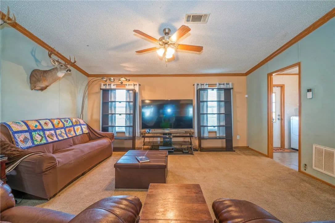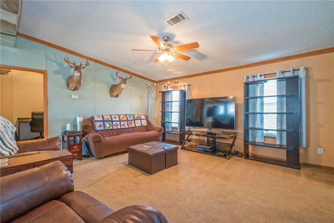 Discover your ideal farm and ranch retreat on nearly 22 acres of countryside. This property features a spacious 4-bed, 2-bath manufactured home, seamlessly blending modern comfort with rural charm. A 40 x 60 enclosed barn with 110 and 220 electricity throughout stands ready for all your farming and storage needs. The property boasts a picturesque pond and a creek meandering through the landscape. Whether you're an avid bird watcher or prefer the thrill of hunting, this haven offers opportunities for dove hunting, deer hunting, and wildlife observation. Immerse yourself in the beauty of nature right at your doorstep. A dedicated water line to the pond ensures a consistent and reliable water source throughout the year. Don't miss the chance to make this property your own and embark on a new chapter of peaceful and idyllic living. Welcome home!