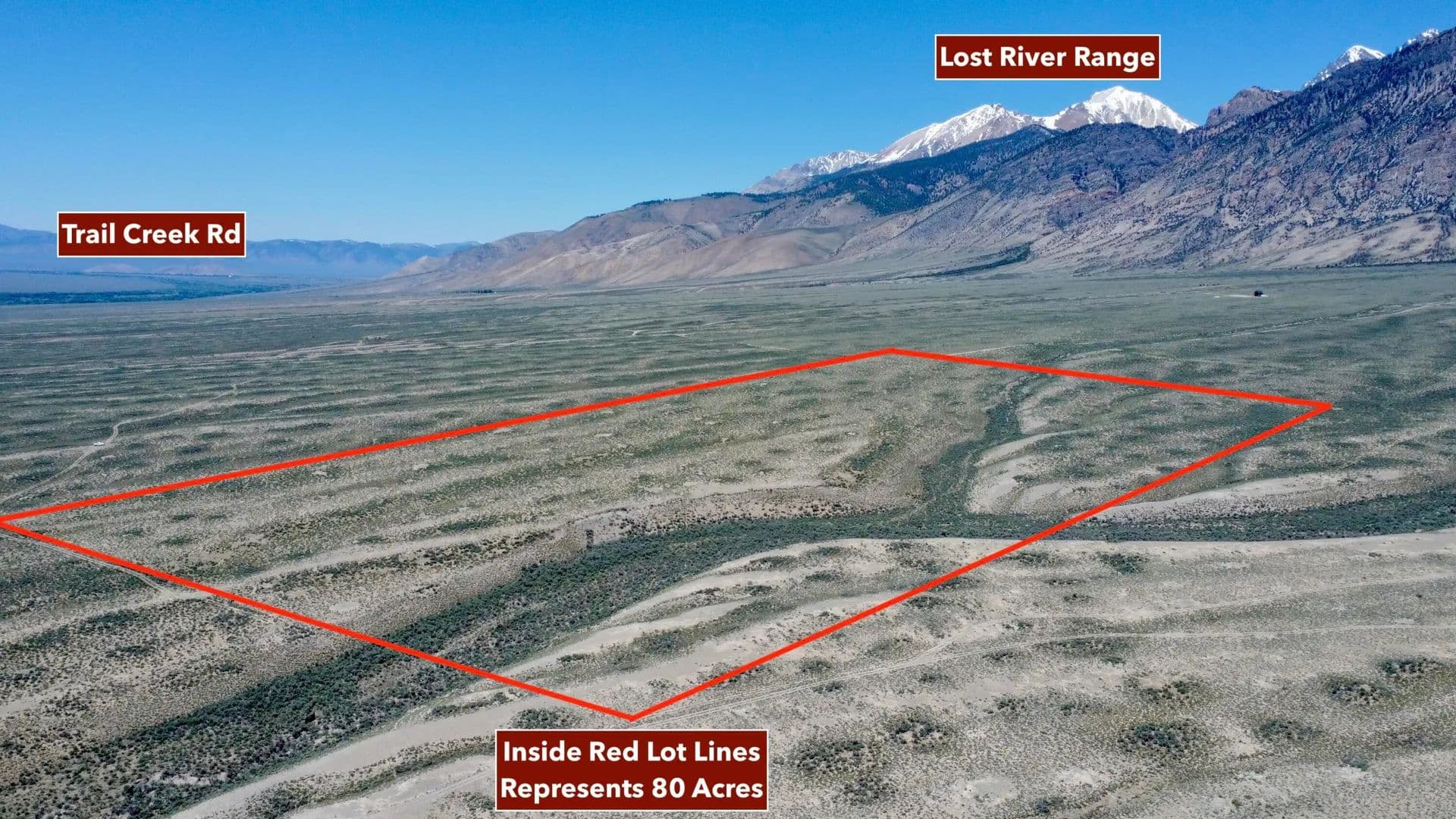 Prime recreational and hunting getaway above Mackay Reservoir! This 80-acre parcel borders BLM land on three sides and sits tucked against the majestic Big Lost Mountain Range. Enjoy sweeping views of the reservoir, the iconic 6X Ranch, and the rugged White Knob Mountains to the west.