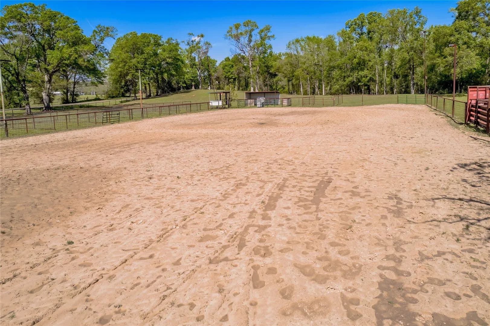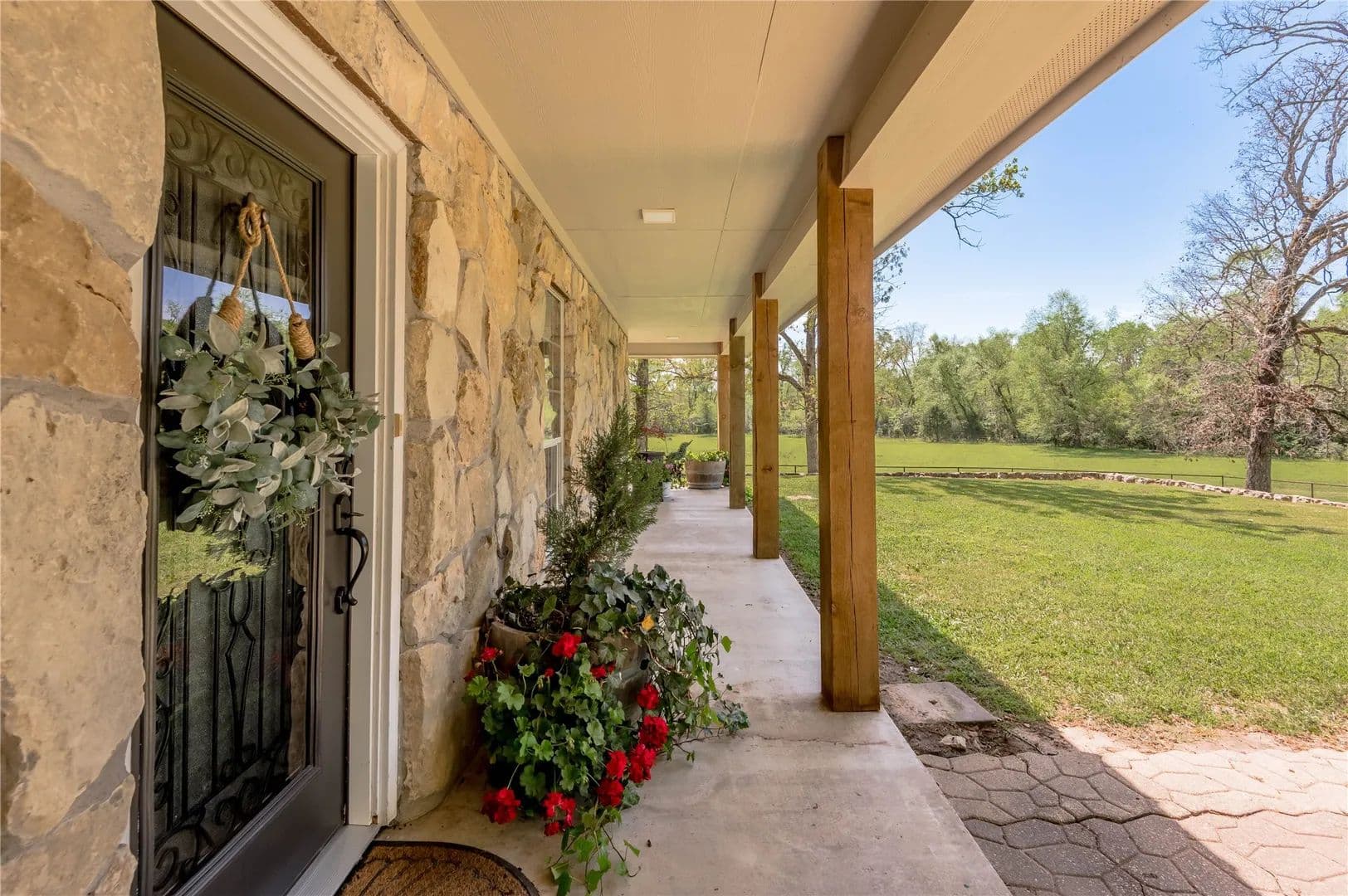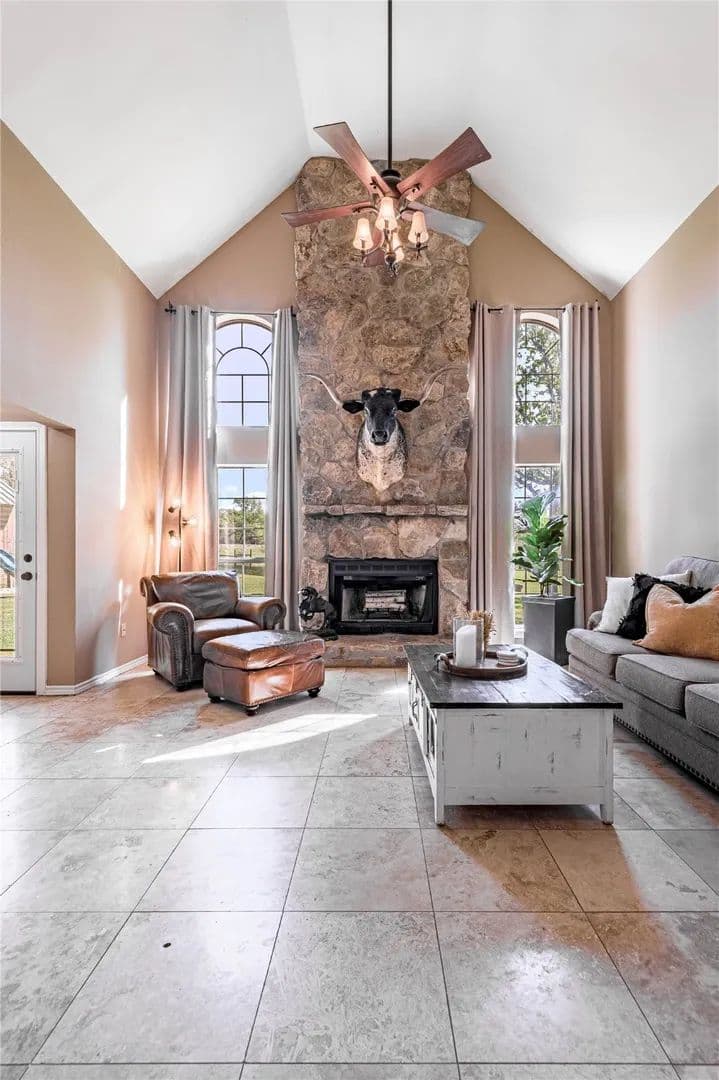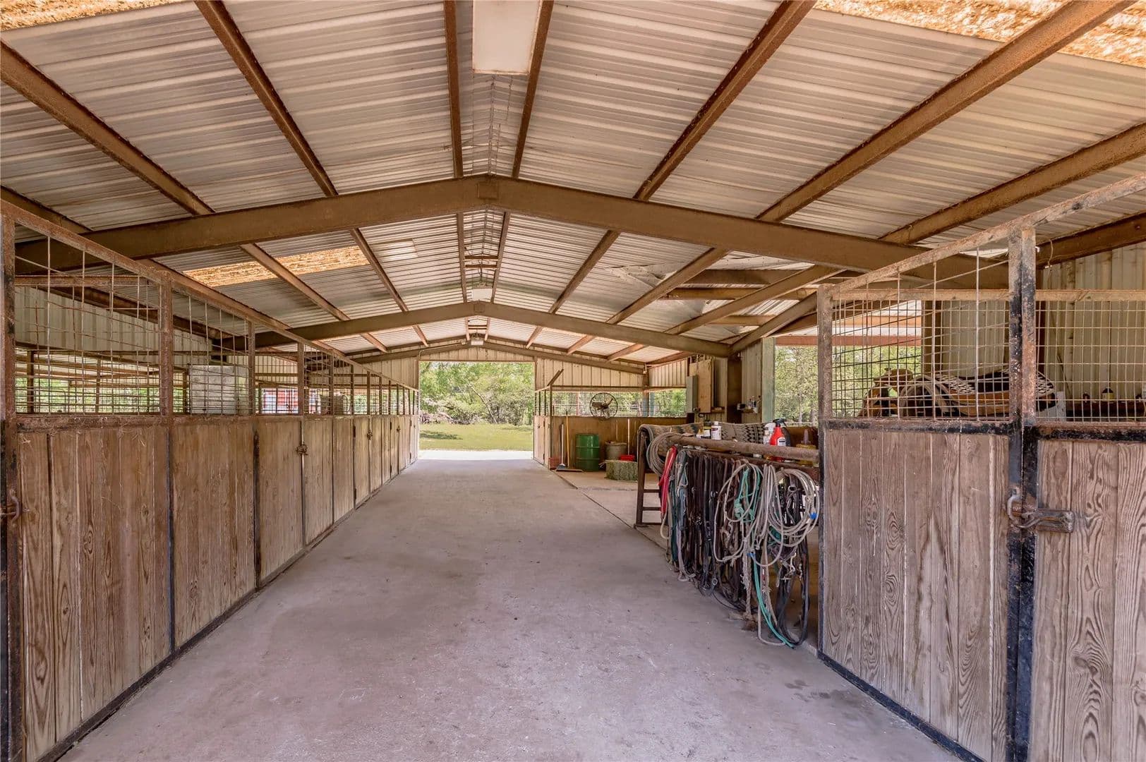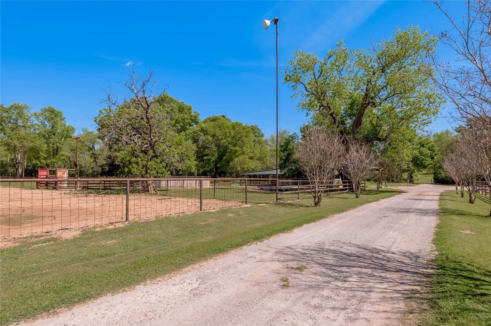 Bring the Horses! Designed, built, and previously used as a horse training facility, this property is a dream for the horse enthusiast. Gated entry w/pipe fencing; lighted arena w/covered announcer stand, livestock holding pens, cattle return alley; custom 60' the round pen; extra parking for trucks/trailers; and a custom 7-stall barn with covered entrance. Barn has new electrical; stalls have dedicated runs; built-in feeders & auto waterers, wash rack, vet stocks, and 2 open 12x12 storage areas. 6 individual pastures; 5 with covered stalls. As you continue up the drive and you'll cross the live creek on the newly rebuilt bridge and arrive at the custom hilltop home. With welcoming covered porches and fantastic views, you'll be right at home here. This home offers a wonderful floor plan and great views from every room. Master suite with private bath and huge walk-in closet. Spacious downstairs living room with huge FP + 2nd living area up.