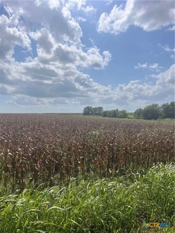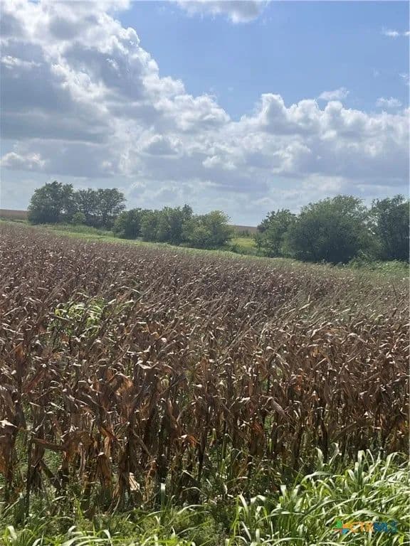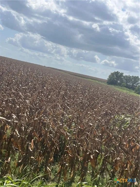 Property has a slight ridge, great place for a homestead. At the bottom of the property would make a great place for a pond/stock tank. There are a few trees near the road. Currently planted in corn, with harvest around the corner.
