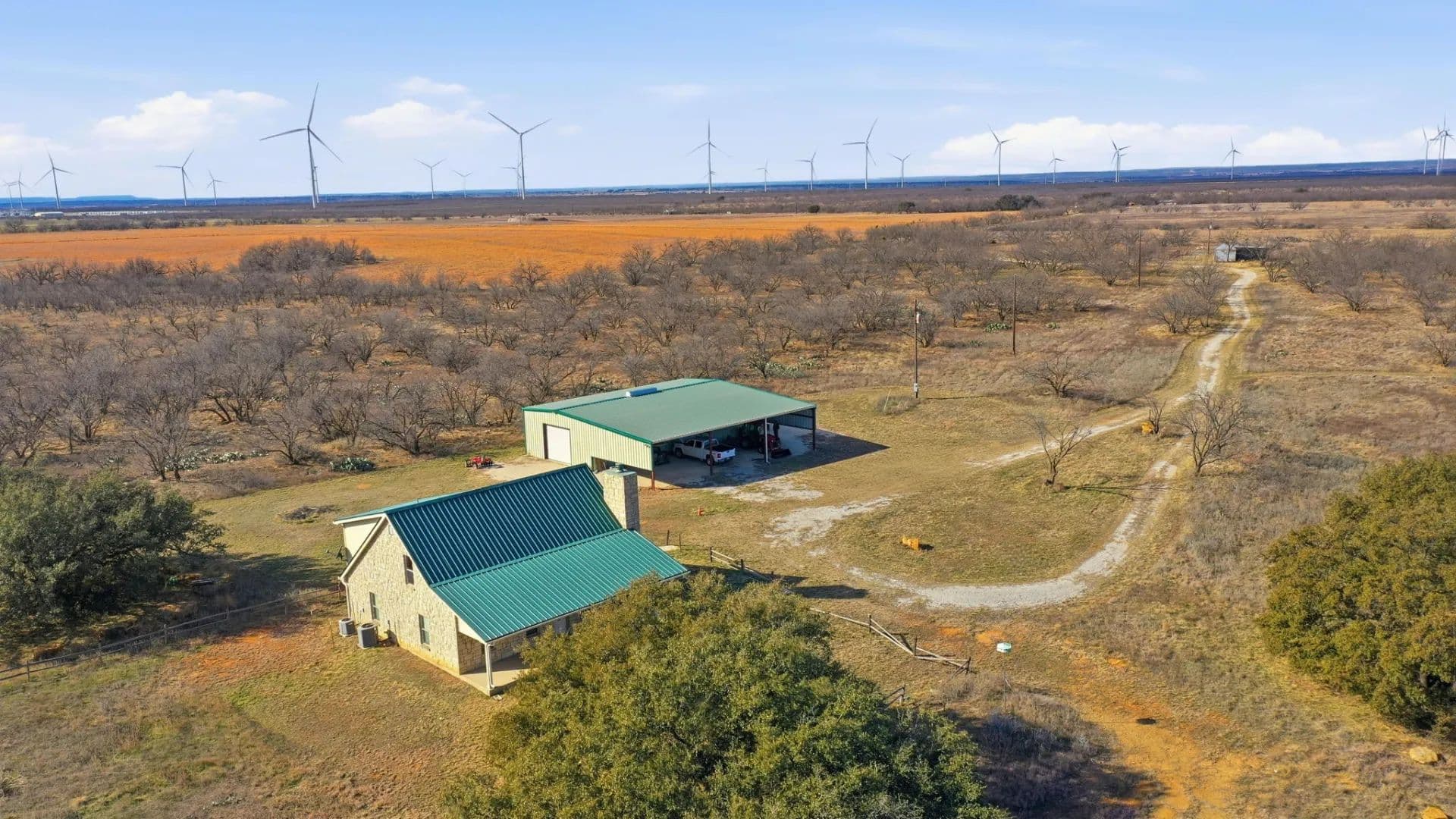 This well-improved 155 acre property on FM 880 in Callahan County offers a rare combination of comfortable country living, functional ranch improvements, and built-in income. With paved frontage and easy access, the ranch is ideally suited for full-time living, weekend use, or a working operation. The 3 bedroom, 2 bath stone home features classic Texas character with a covered front porch, metal roof, and inviting interior finished in warm wood tones. The open living area includes a fireplace and vaulted ceiling, creating a cozy yet spacious gathering space. The home is positioned to enjoy peaceful views of the surrounding land while remaining close to the main ranch improvements. The living area boasts beautiful vaulted ceilings and an open concept. Upstairs you will find one bedroom, bathroom and a 7x11' room that would make a great office space. A large 30x60 metal shop with roll-up door provides excellent space for equipment, tools, and recreational vehicles, making day-to-day ranch work efficient and organized. The shop has an 24x60 awning off one side that provides plenty of parking space for vehicles or tractors. There is also a barn with electric and cattle working pens. Land is fenced and cross fenced with barbed wire. The land consists of gently rolling terrain with native grasses and scattered cover. Three stock tanks provide reliable water for livestock and wildlife, and the area is known for strong populations of whitetail deer, hogs, and other native game. The property is currently in a wildlife exemption. Adding to the value, a windmill located on the property generates approximately $14,000 per year in income, offering a steady revenue stream with minimal impact on ranch operations. Located within Baird ISD, this property checks all the boxes for buyers seeking a productive, well-rounded ranch with income potential, quality improvements, and convenient access. A turnkey Callahan County ranch with lasting value and multiple uses.