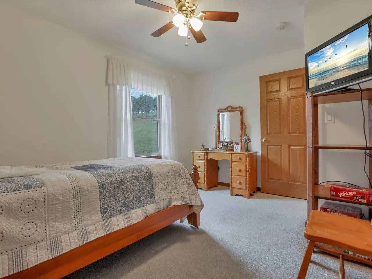 The home's mechanicals are in excellent condition and include geothermal heating, a backup propane generator, electric hot water tank, water softener, and a private well and septic.