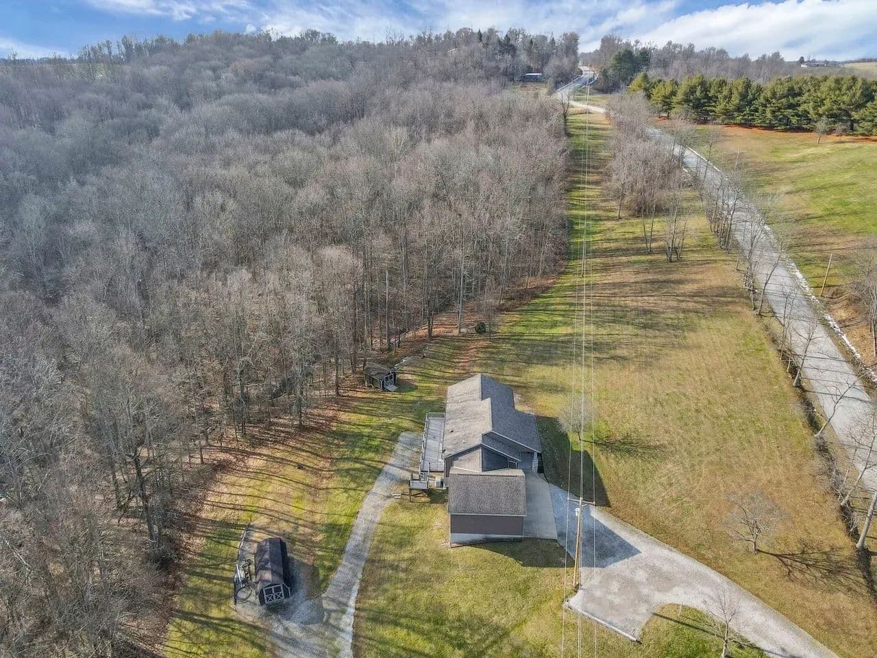 Two storage barns are in place, each with electric service and a frost-free water hydrant. It's an easy walk into the woods and down to the small seasonal creek that flows through the property. Any mineral rights owned by the sellers will convey. Located close to US-16 and State Route 60.