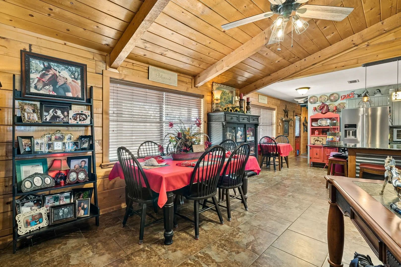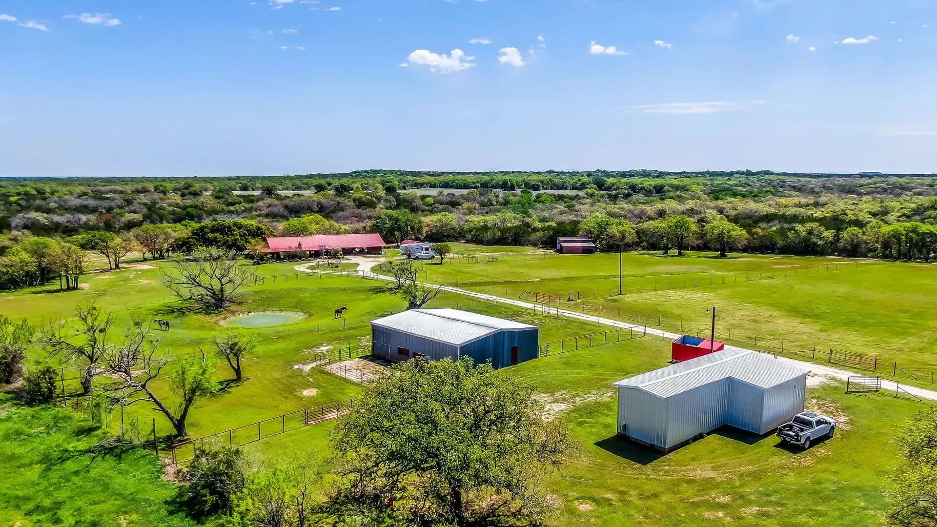 Welcome to 4155 County Road 188, located in the Cowboy Capital of the World, Stephenville, TX. This stunning property is nestled on a sprawling lot and offers a serene country living experience while still being just a short drive from all the conveniences of the city. Upon arriving at the property, you'll be greeted by a beautiful single-story log home with a spacious front yard and a welcoming front porch perfect for enjoying a morning cup of coffee or relaxing in the evening. The open concept layout flows seamlessly into the dining area and kitchen, making it the perfect space for entertaining guests or enjoying family dinners. The home features three spacious bedrooms, each with ample closet space and natural light. Outside, the property features a large backyard with plenty of space for outdoor activities, a covered patio perfect for grilling and entertaining, and a storage shed. There is also a nice horse barn, chicken coop, equipment sheds and so much more! Great Horse property
