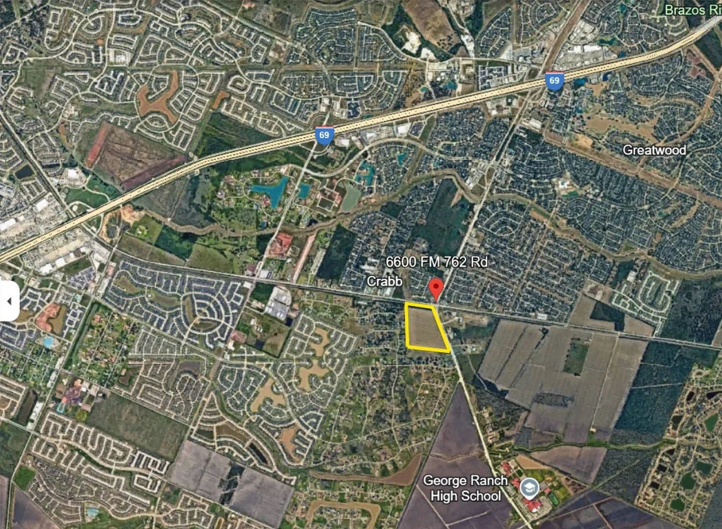 Land Dev Opp located directly on the SH-99 Grand Parkway Expansion Project, SH-59/69 at Crabb River Rd in Richmond, TX. 2-parcels, 47.9509 acres total, being split by the SH-99 Grand Pkwy Project (13.91 acres). Front of the property, approx +/-7.25 acres will remain in the northeast section along Crabb River Road; the middle section will consist of +/-13.91 acres earmarked for the SH-99 Grand Parkway Expansion Project; the rear southwest section will consist of +/-26.3 acres.