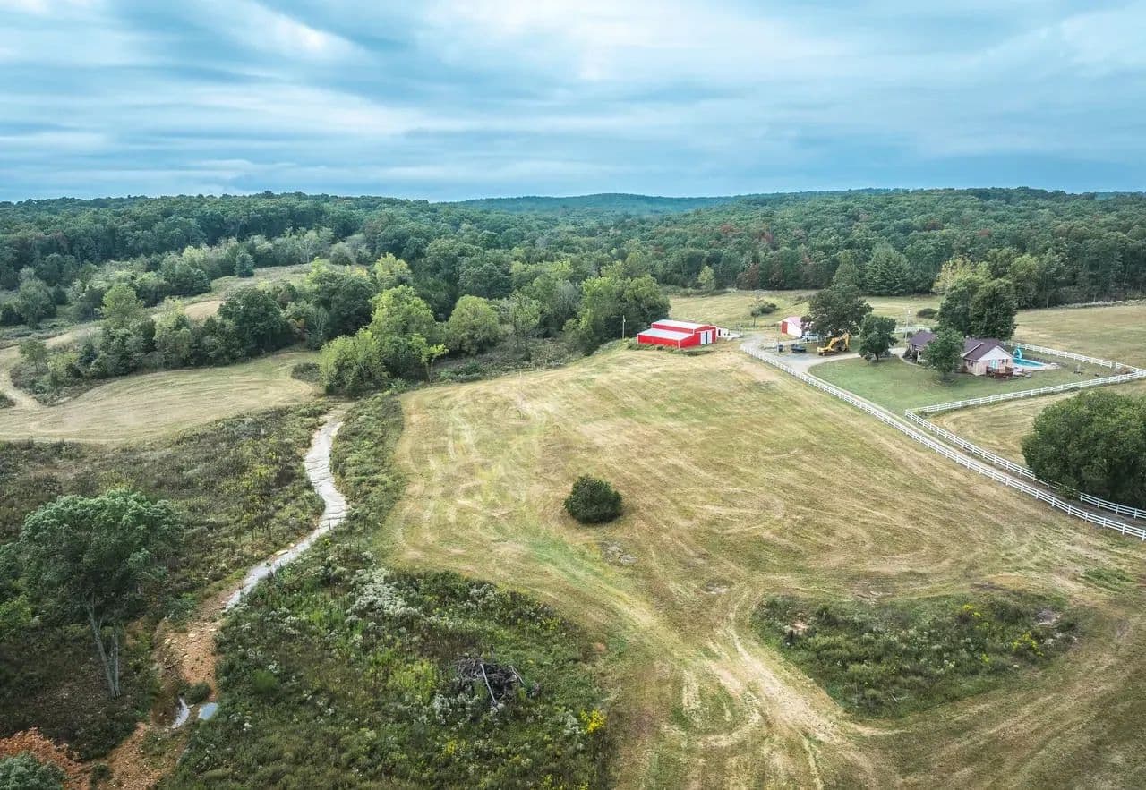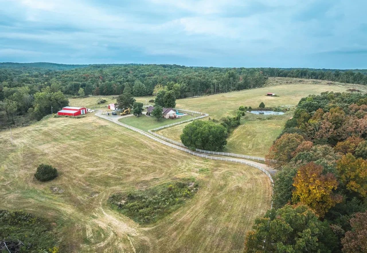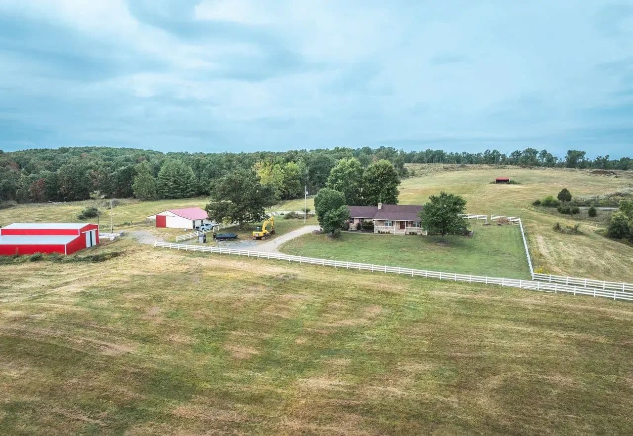 Discover 110 acres of rolling beauty in St. Francois County, featuring a perfect blend of pasture, woods, and panoramic views. This 3, 3-bath, 2,841 sq. ft. brick farmhouse offers plenty of space with a partially finished basement, making it ideal for family living or a country retreat. The property includes multiple barns suited for work, storage, or recreation, and a pond that adds charm and function. With 12 acres of open, farmable ground and 100 acres of mature woods, this land is perfect for a variety of uses—from raising livestock to enjoying premier hunting. Deer and turkey are abundant, and the wooded acreage provides endless opportunity for outdoor recreation. A steady breeze and wide-open views create the ideal setting for peaceful country living, while still being within reach of town conveniences.