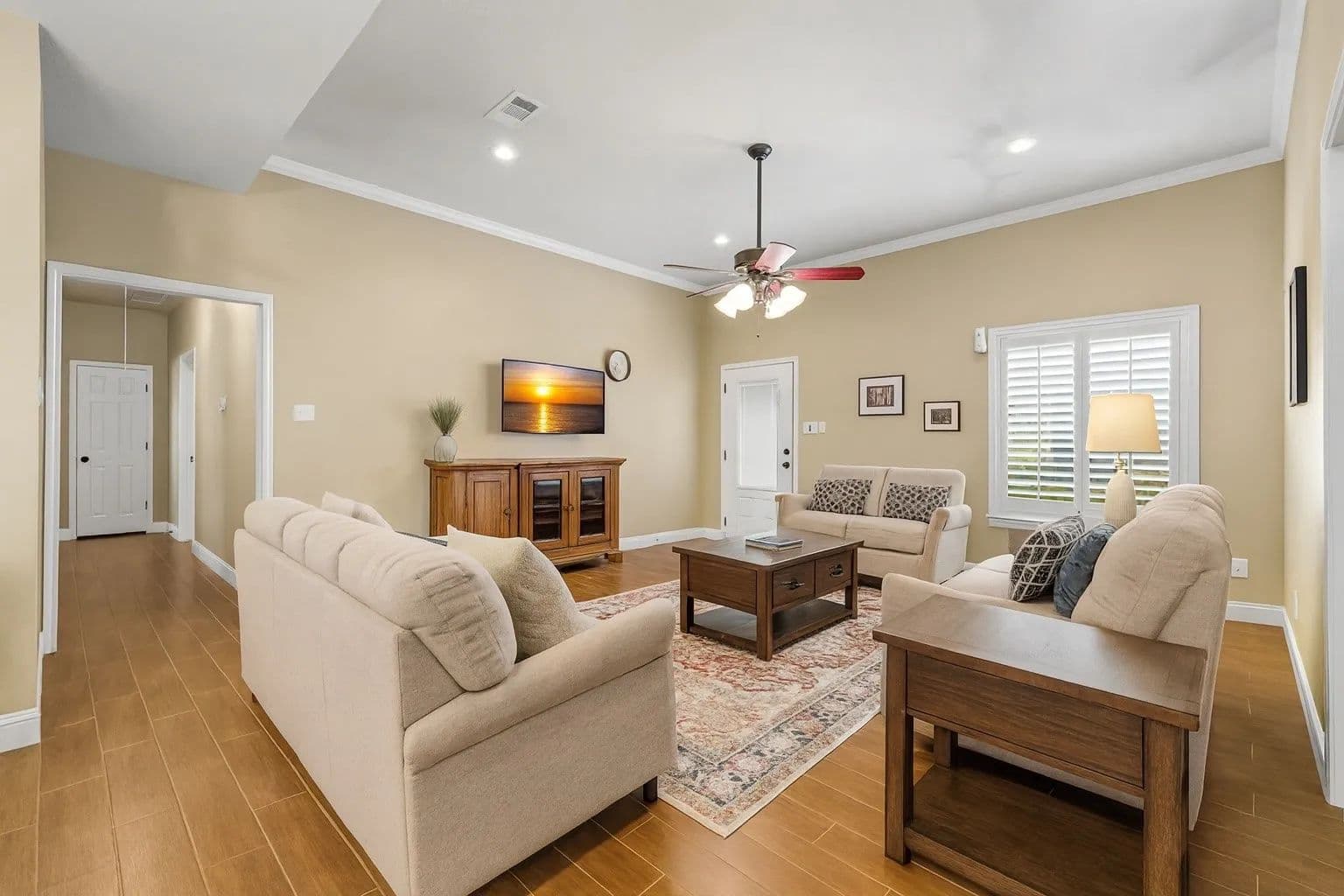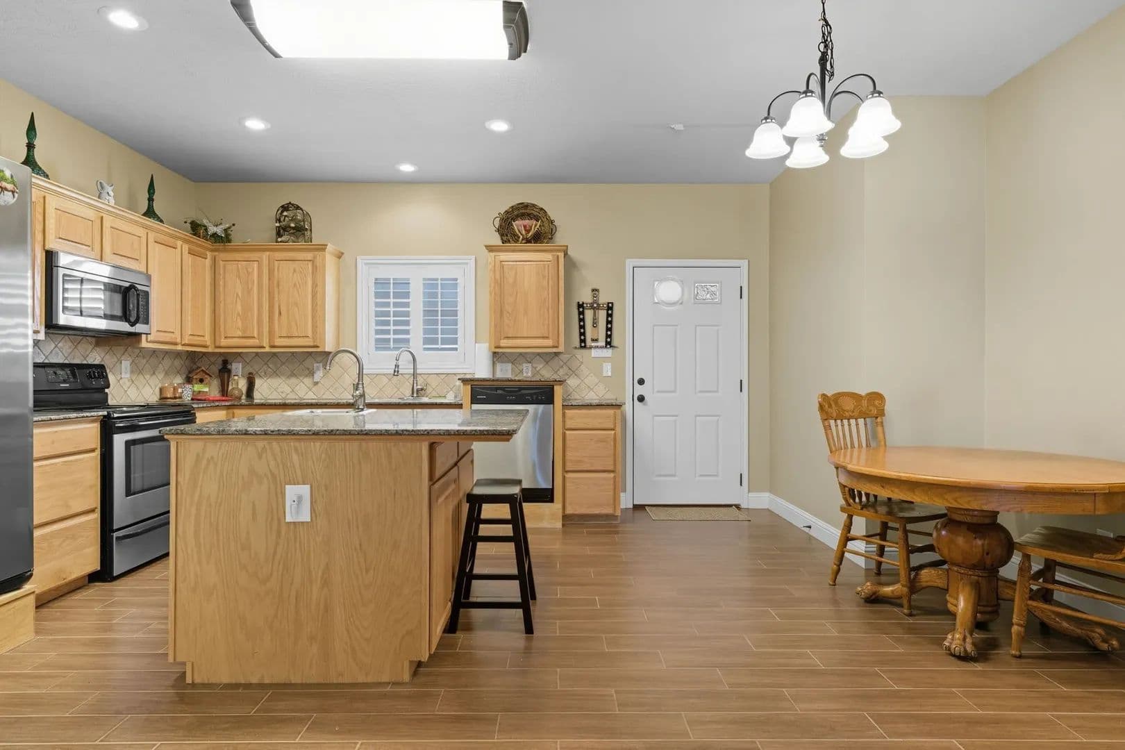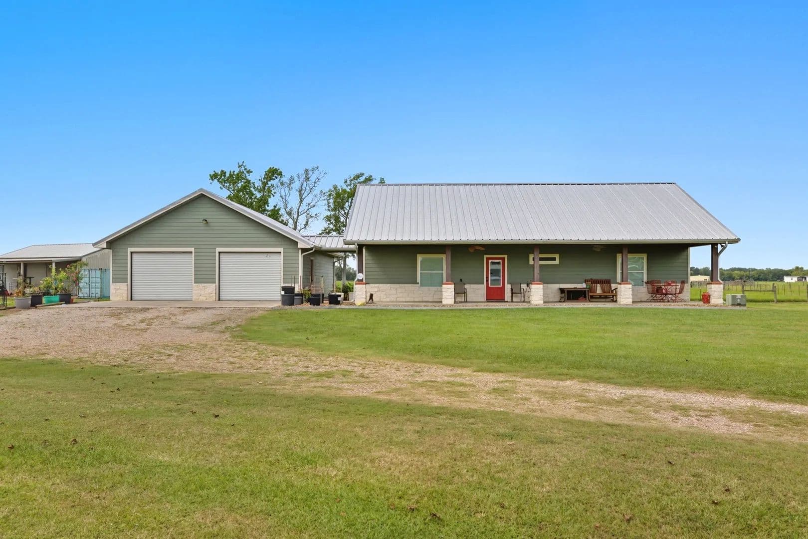 Experience the freedom of country living on this breathtaking 12.67-acre ranch that feels like a private golf course. Relax on wide covered porches as you watch deer by the two stocked ponds, gather eggs, or ride your side-by-side to check on horses or cattle. The open-concept 3-bed, 2-bath ranch-style home features a durable metal roof, tile floors throughout, and a kitchen built for entertaining with an island and second sink. The primary suite offers a spa-like bath with an oversized shower and soaking tub. A versatile 3-car garage includes its own kitchen, full bath, and workshop bays, plus a dry storage room ideal for tack or reloading. Fully fenced and cross-fenced, this property is ready for livestock, gardening, or simply savoring wide-open views. Whether you’re a first-time landowner or ready to move up to your dream ranch, this turnkey retreat blends modern comfort with classic country charm—schedule your private tour and make the dream yours.