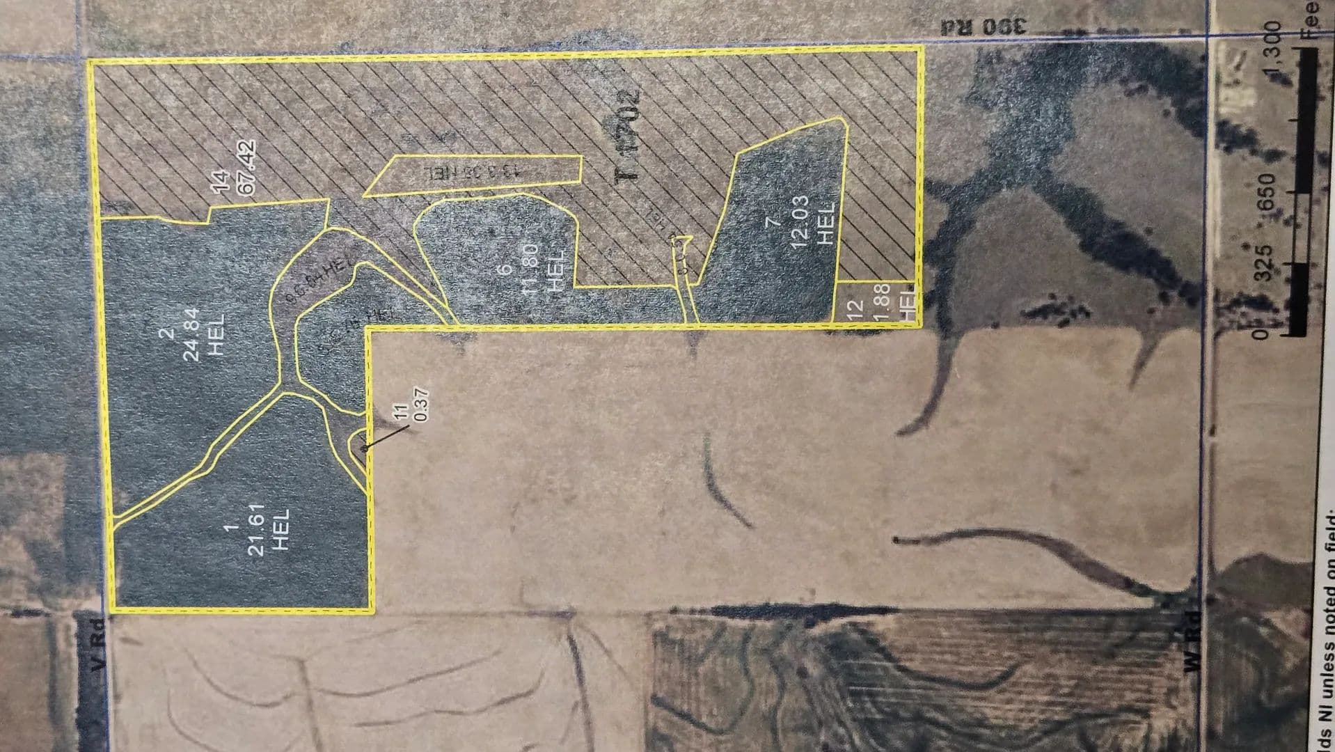 Mitchell County KS Farmland For Sale. Legal Description: +/-312 Acres located in S23, T09, R06W Acres 157.39. This quarter section tract of land includes +/-81 acres tillable dryland, +/-67 acres pasture. Owners have had good deer hunting success on the property. The property is situated at the Southwest corner of the intersection of V Road and 390th Road.