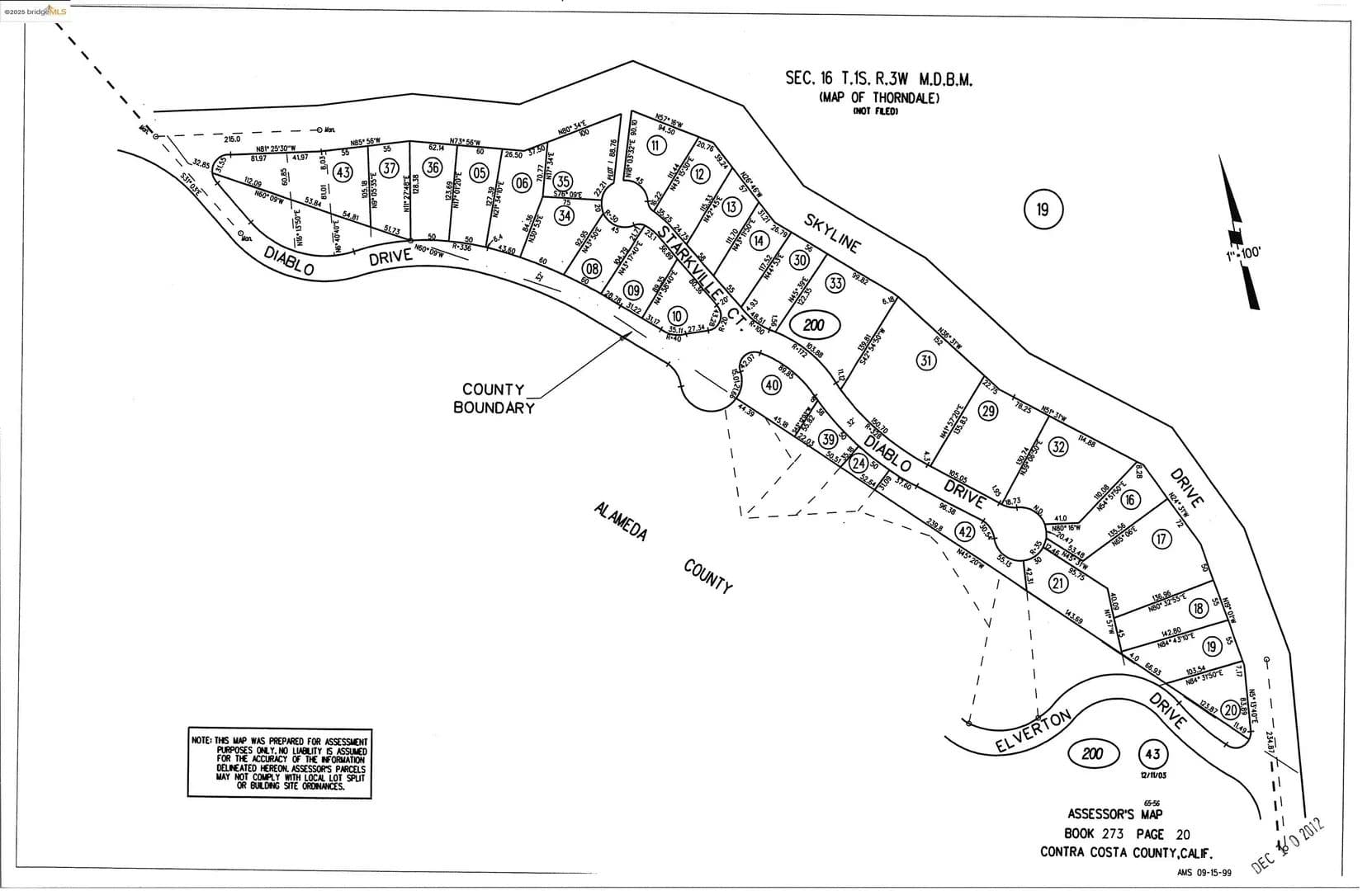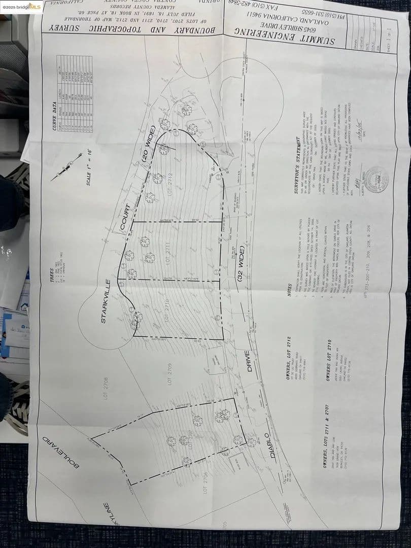 One of three lots to be sold together or separately. Parcel 273-200-009-2 is 6,000 sq. feet. Parcel 273-200-008-4 is 4,675 sq. feet and parcel 273-200-006-8 is 7,425 sq. feet. Each individual lot is $55,000 each. Sold together the asking price is $165k. Beautiful lots towards the corner of Starkville and Diablo Dr. This is a downslope from Diablo Dr. and an upslope from Starkville. Parcel 273-200-006-8 fronts on both Diablo Dr. and Skyline Blvd. This is right on the edge of Oakland and Orinda at the county line between Alameda and Contra Costa County.