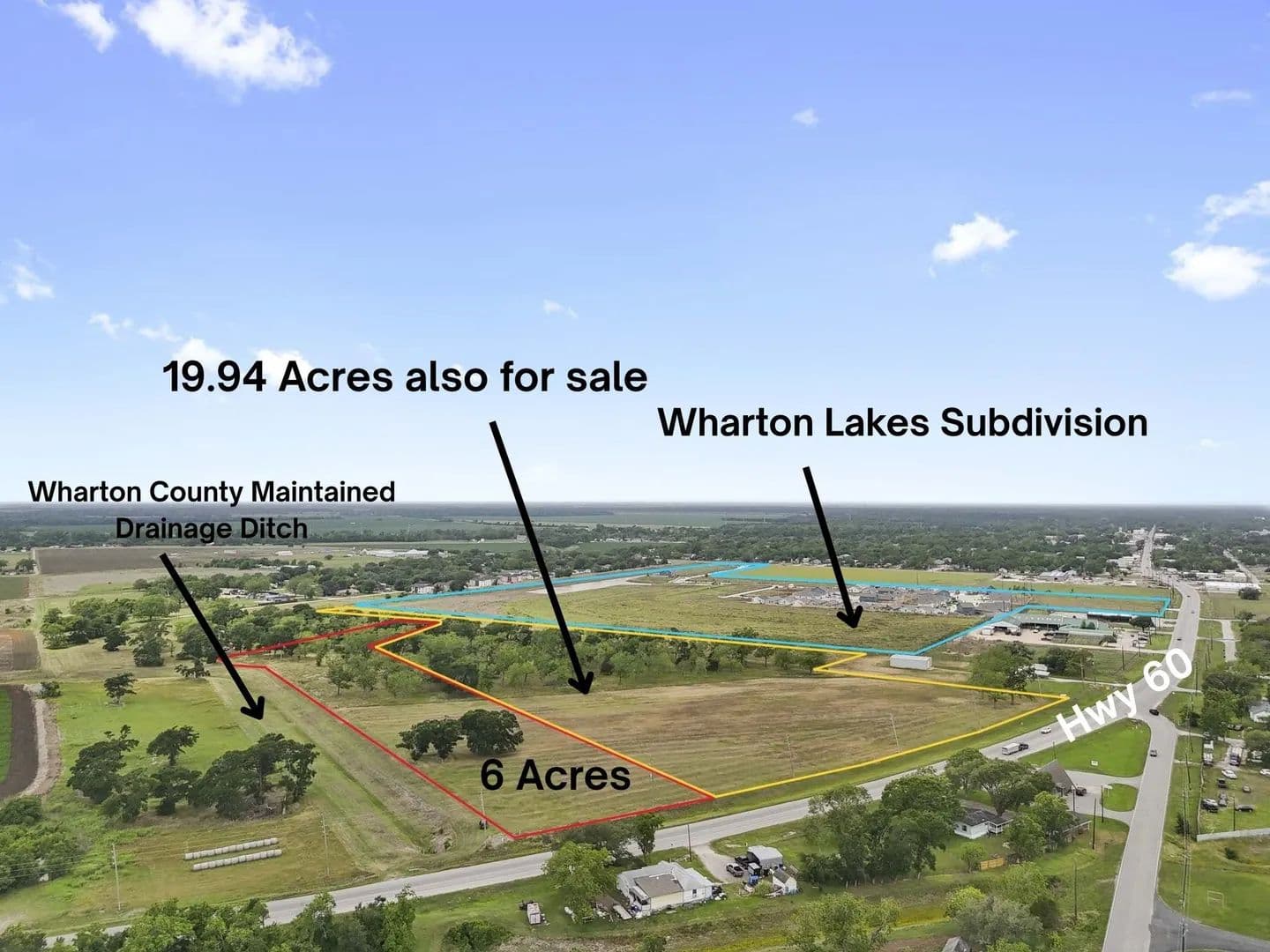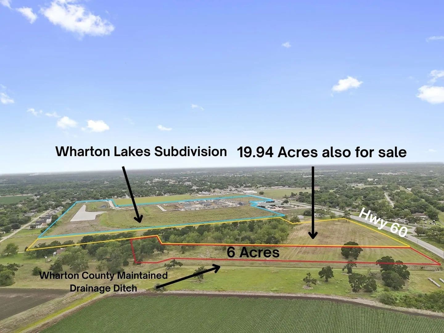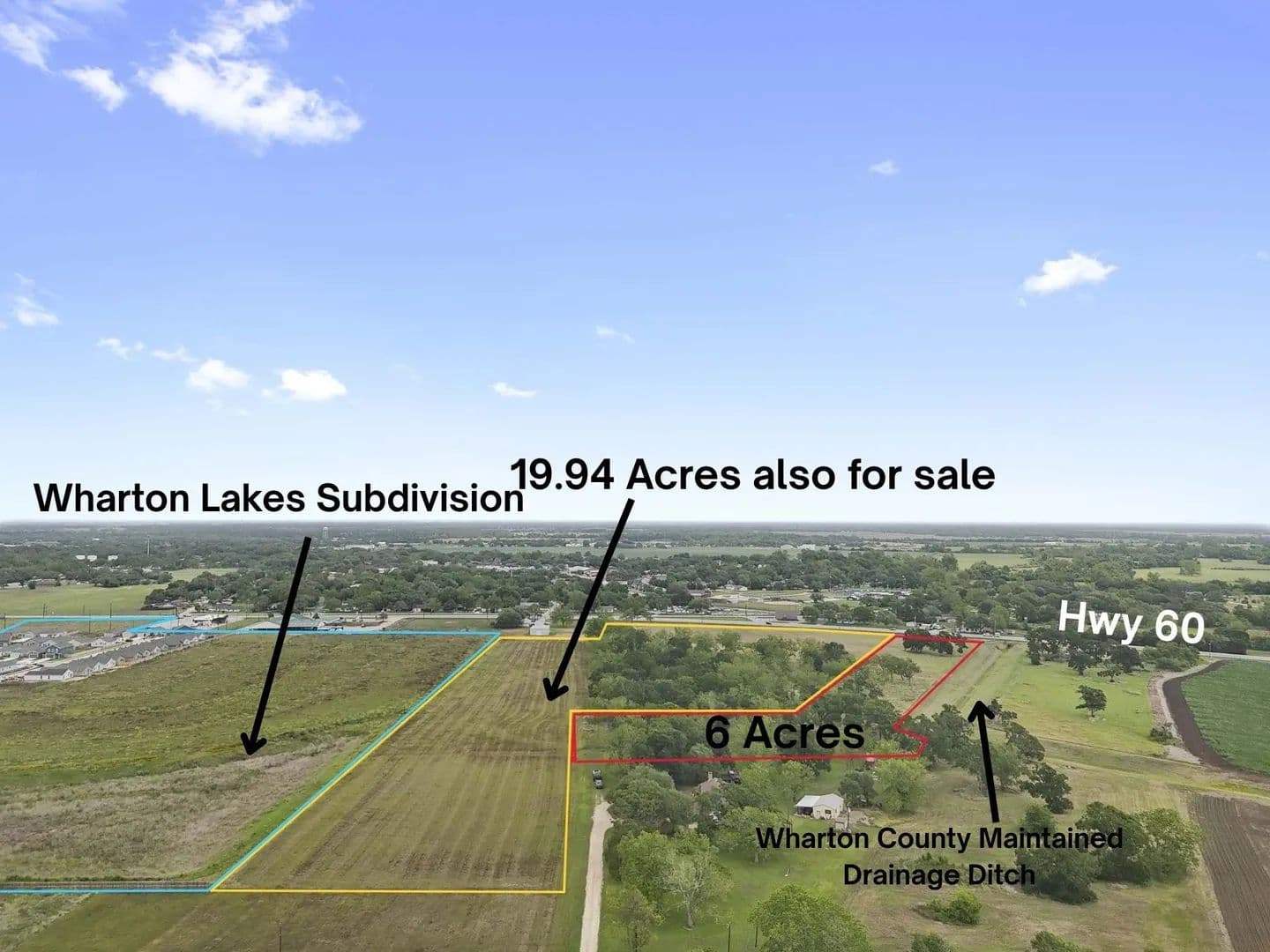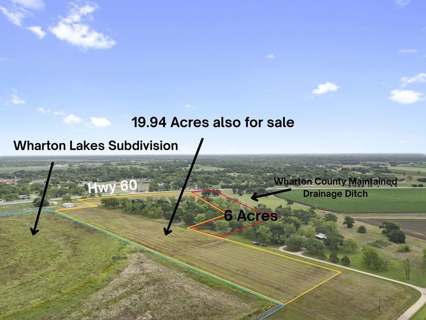 This 6 acre tract primed for residential development is within the City of Wharton ETJ and is close to the new 220 lot Wharton Lakes subdivision that is currently being developed. The county maintained Santa Fe drainage ditch is adjacent to the southeastern boundary. On the opposite boundary is approximately 19.95 +/- acres also for sale. Don't miss all this great property has to offer!
