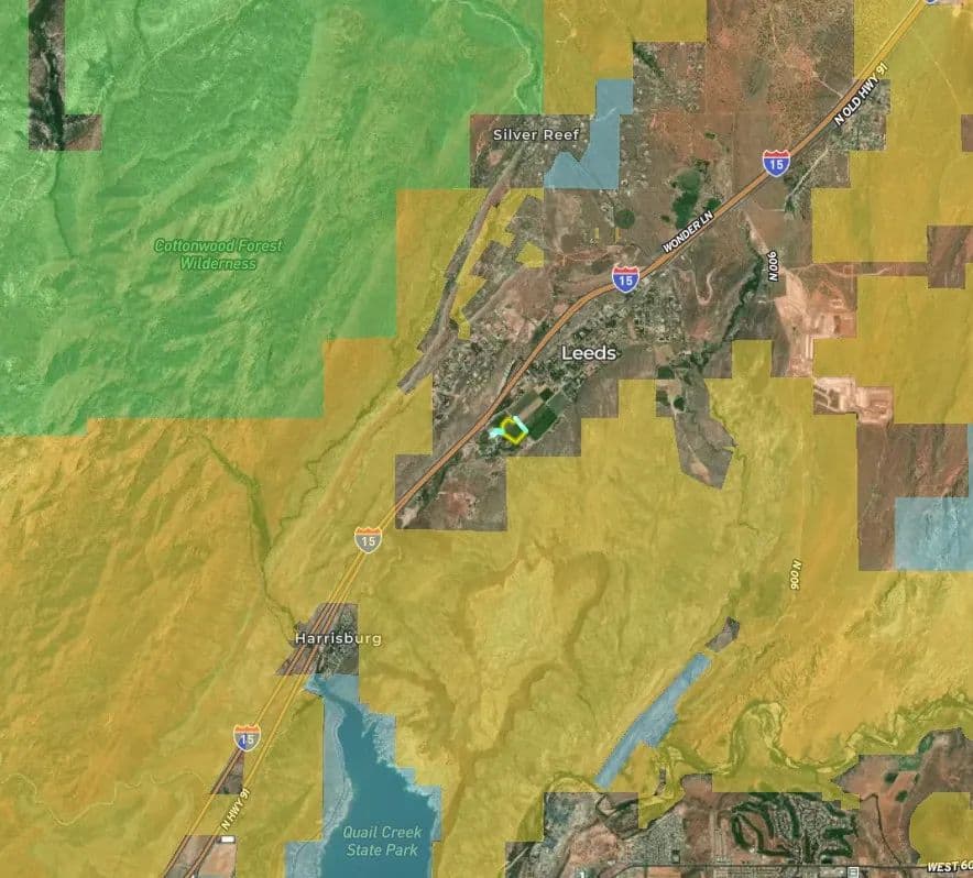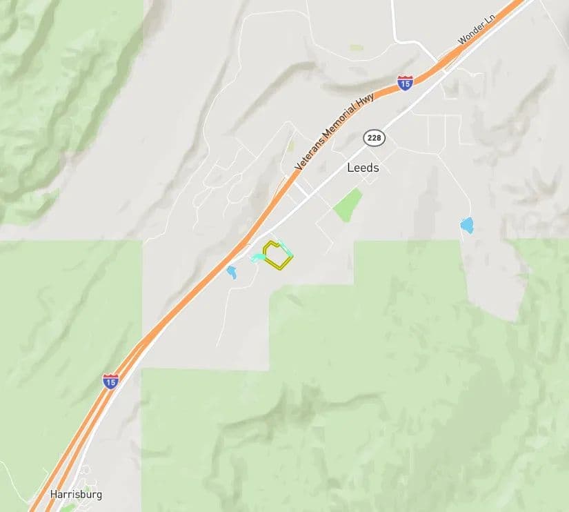 This 10-acre property is located within Leeds city limits in Washington County, Utah. The parcel has a long history of agricultural use and features mostly flat ground with productive soil characteristics. The parcel is just minutes from Interstate-15 with convenient access to both north and south onramps. The layout and zoning provide flexibility, allowing the property to remain intact as a single rural holding or be divided into several 1-plus-acre lots, subject to city approvals and required improvements.