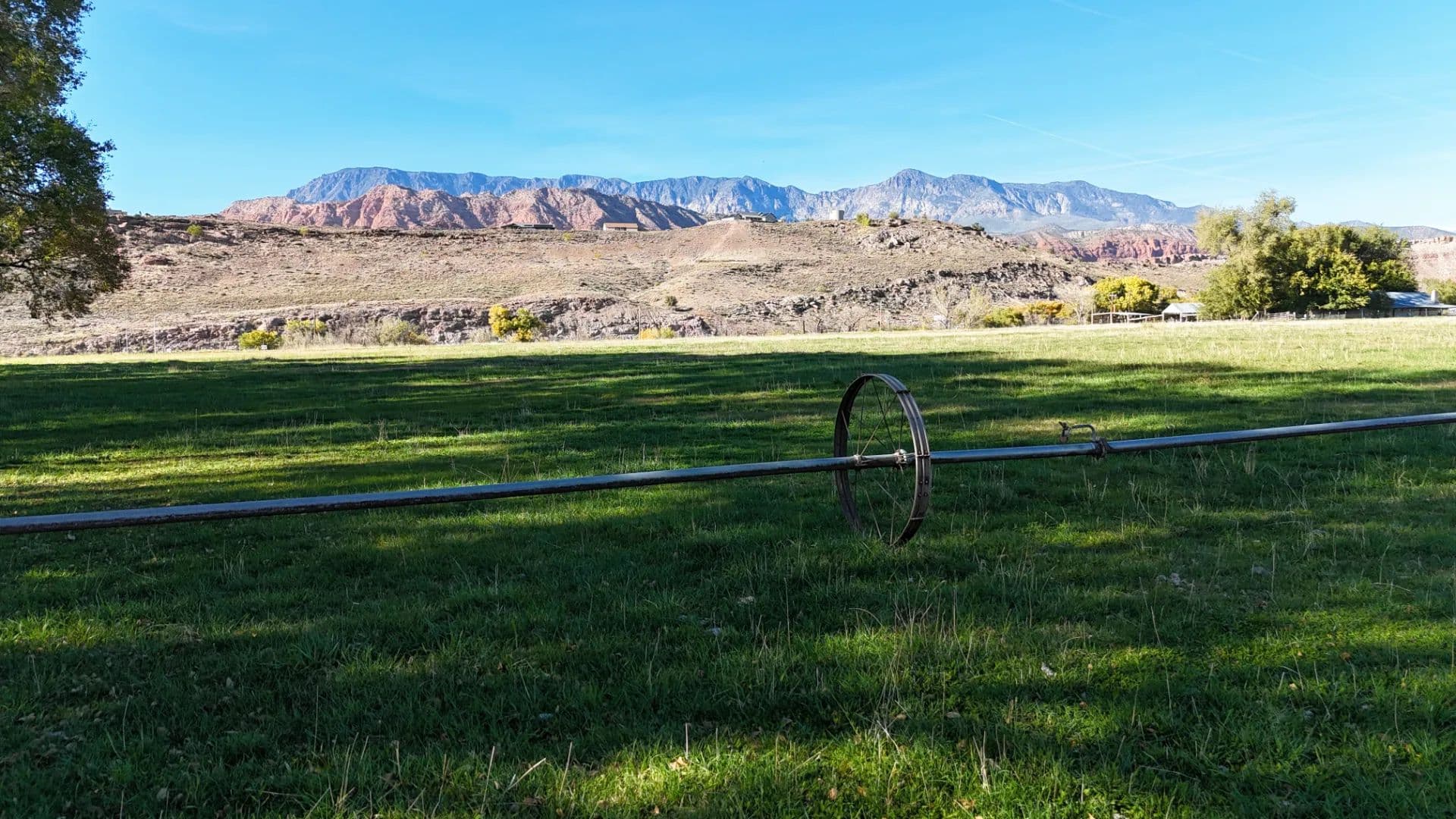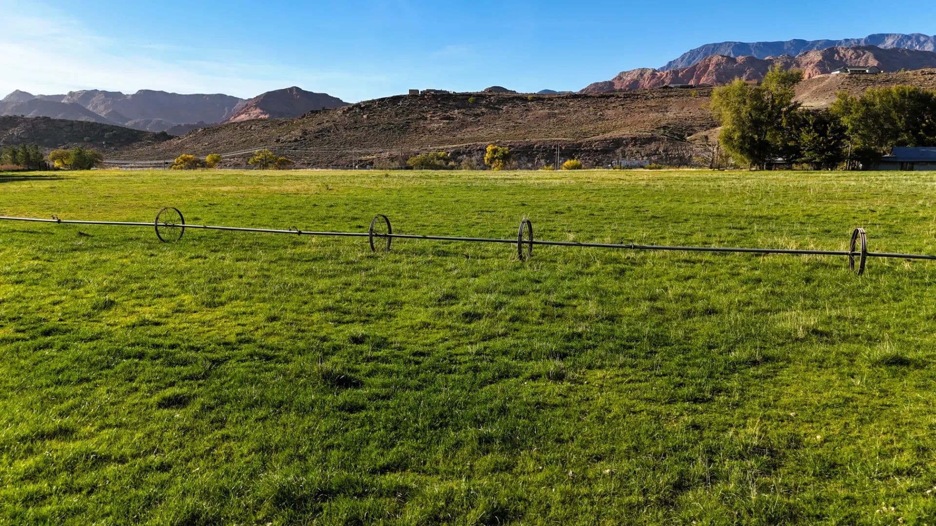 The terrain is primarily level, which may reduce grading needs depending on the intended use. Views from the property include surrounding red rock formations and open skies typical of southwest Utah. The soil quality reflects its agricultural past and may support continued farming, hobby agriculture, or landscaped residential uses where permitted.