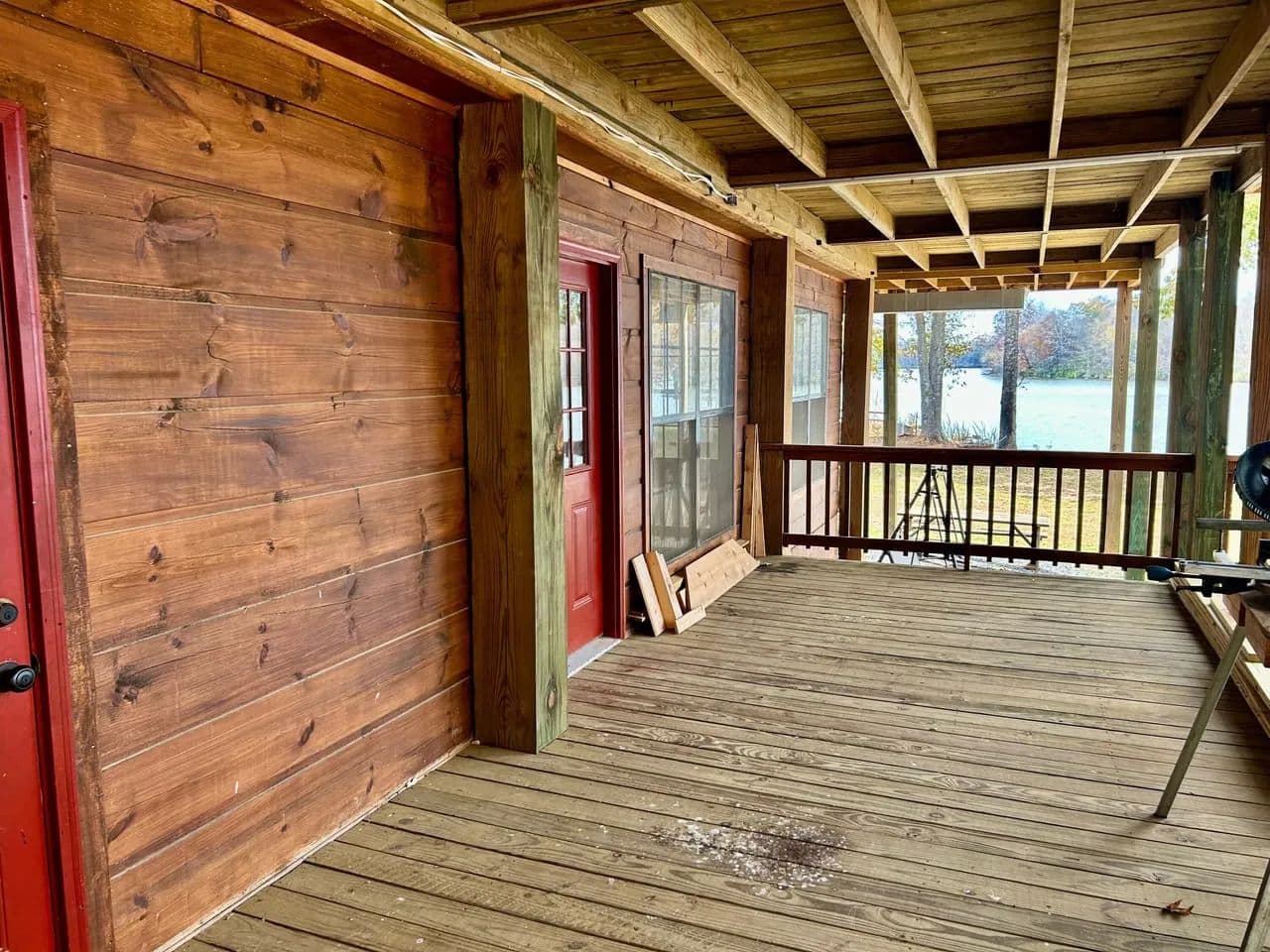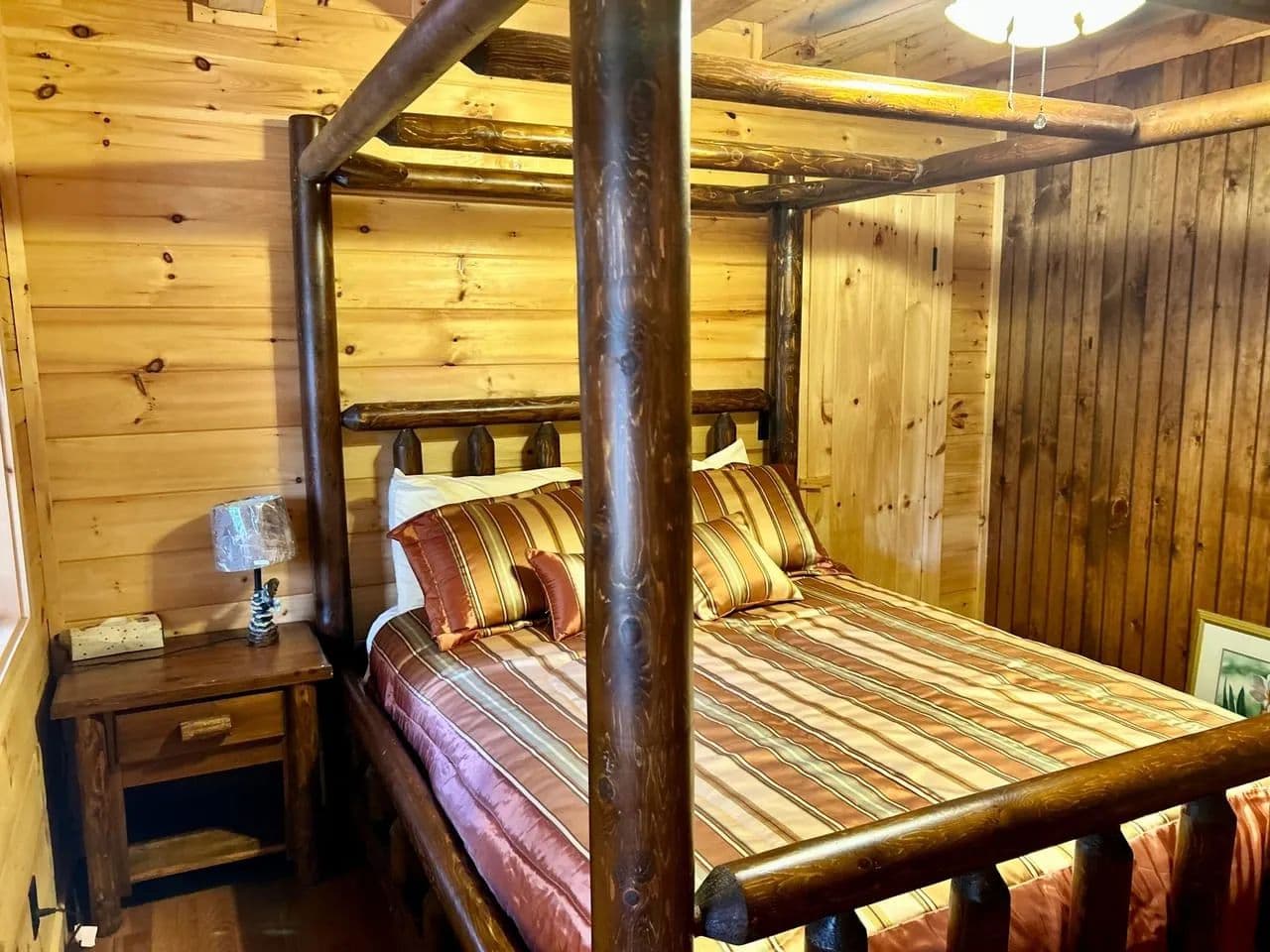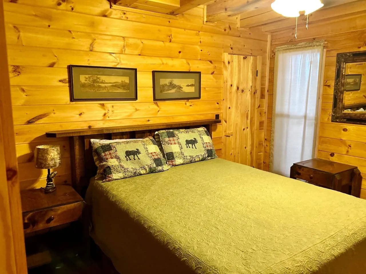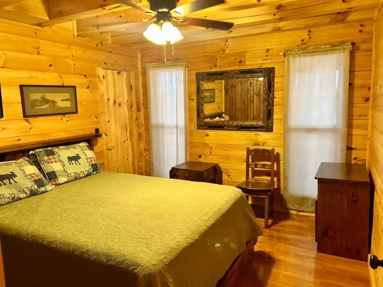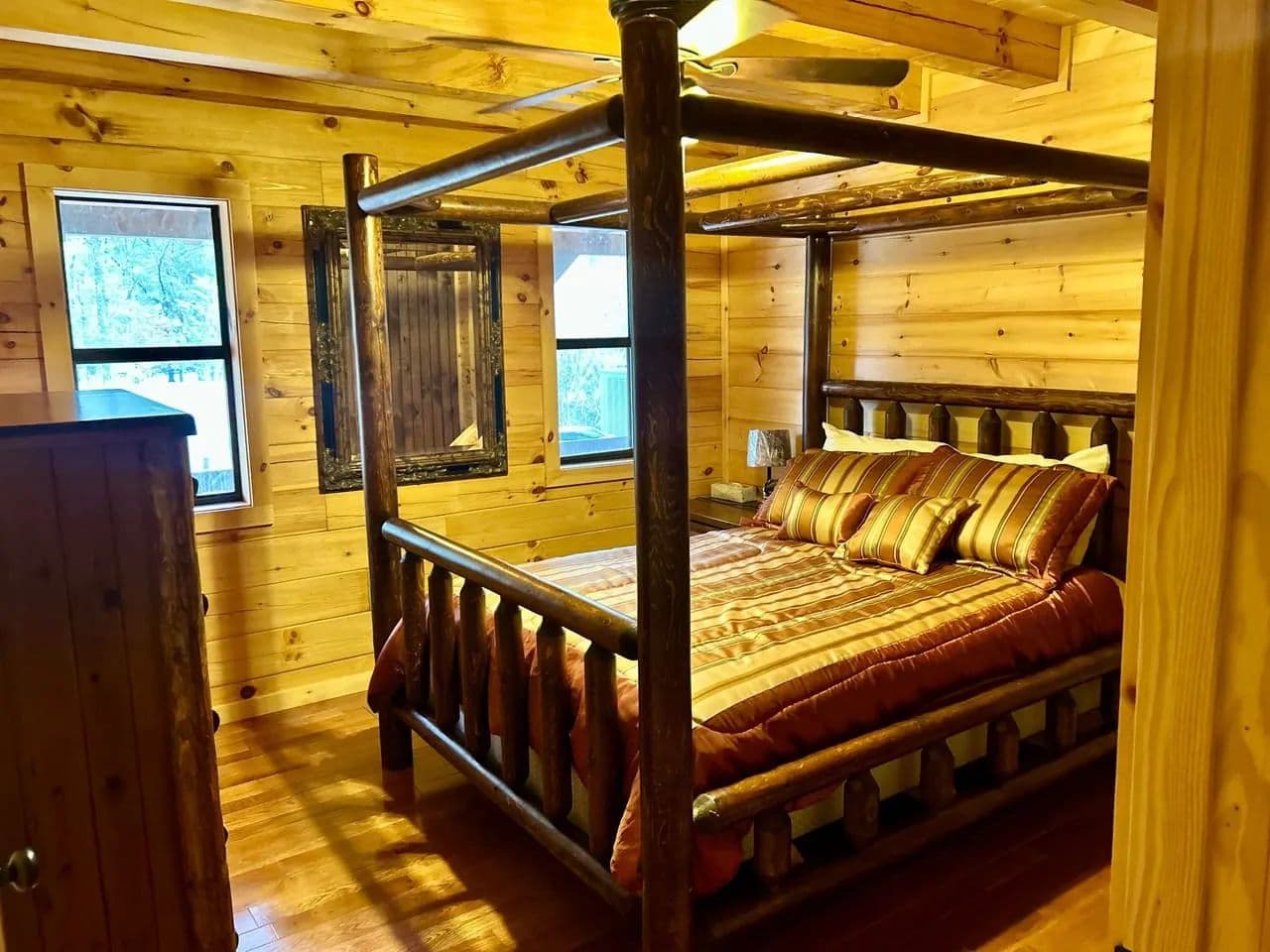 The log home consists of approximately 4100 square feet and is built from white pine logs with a total of 6 bedrooms and 4 1/2 baths. The main living space features 3 bedrooms, 2.5 baths, large great room, kitchen and dining room, sunroom and screened grilling porch.