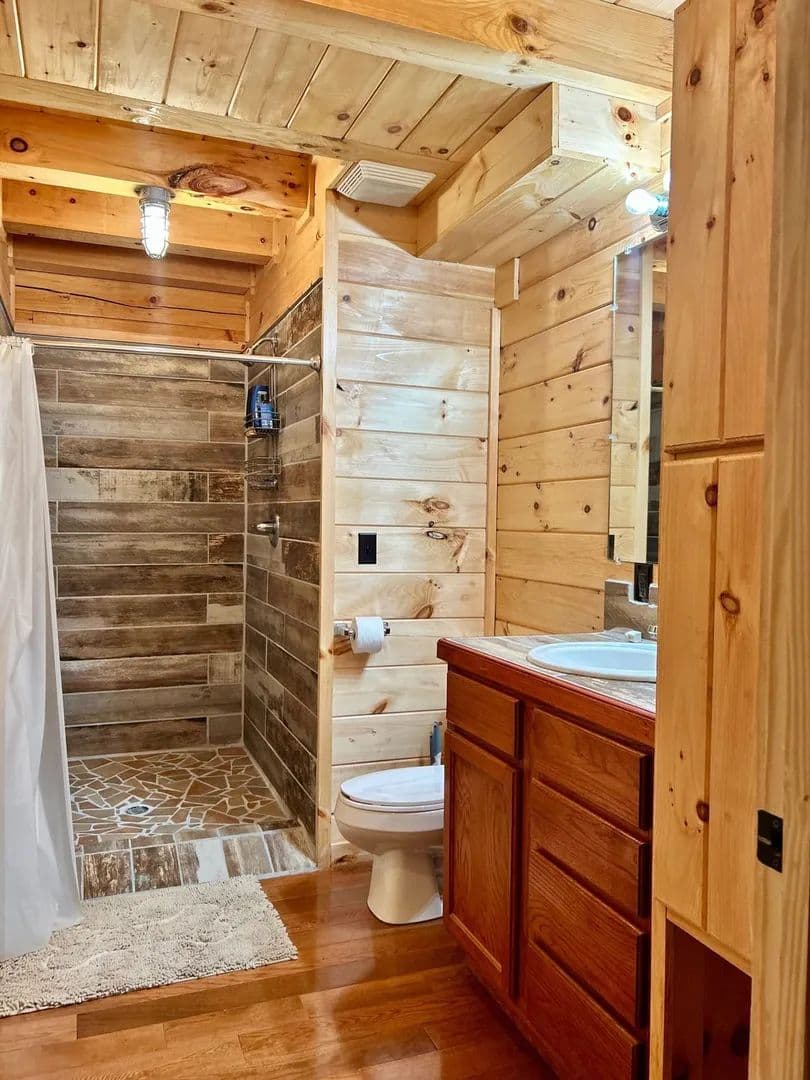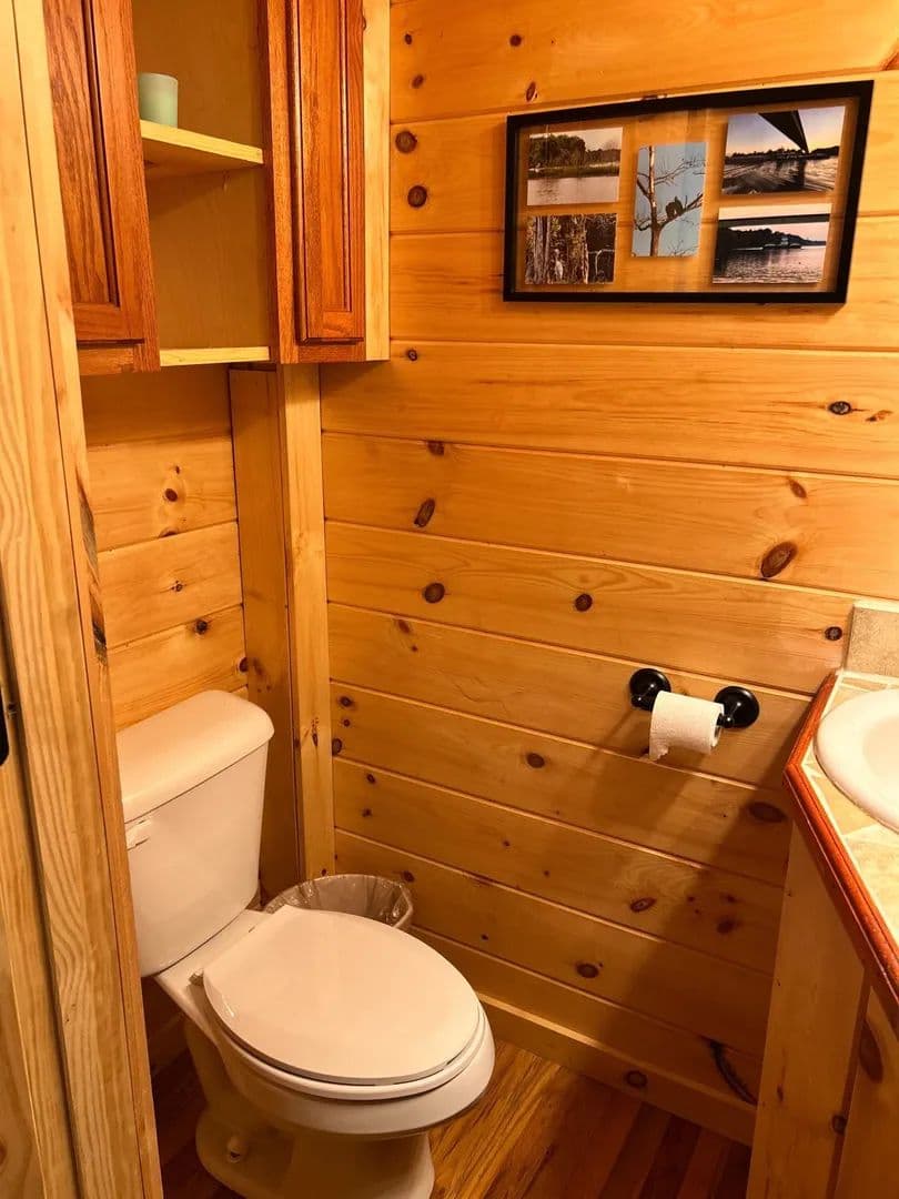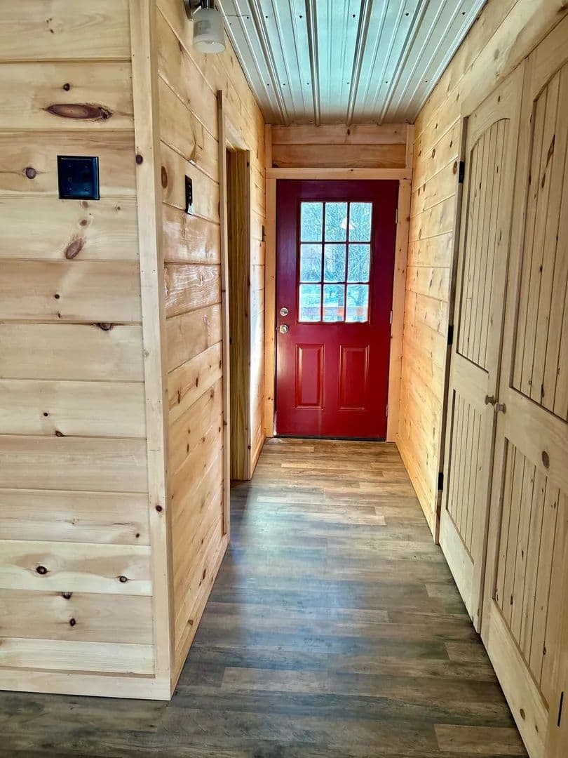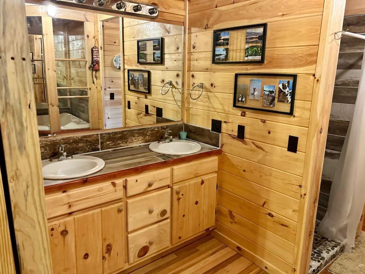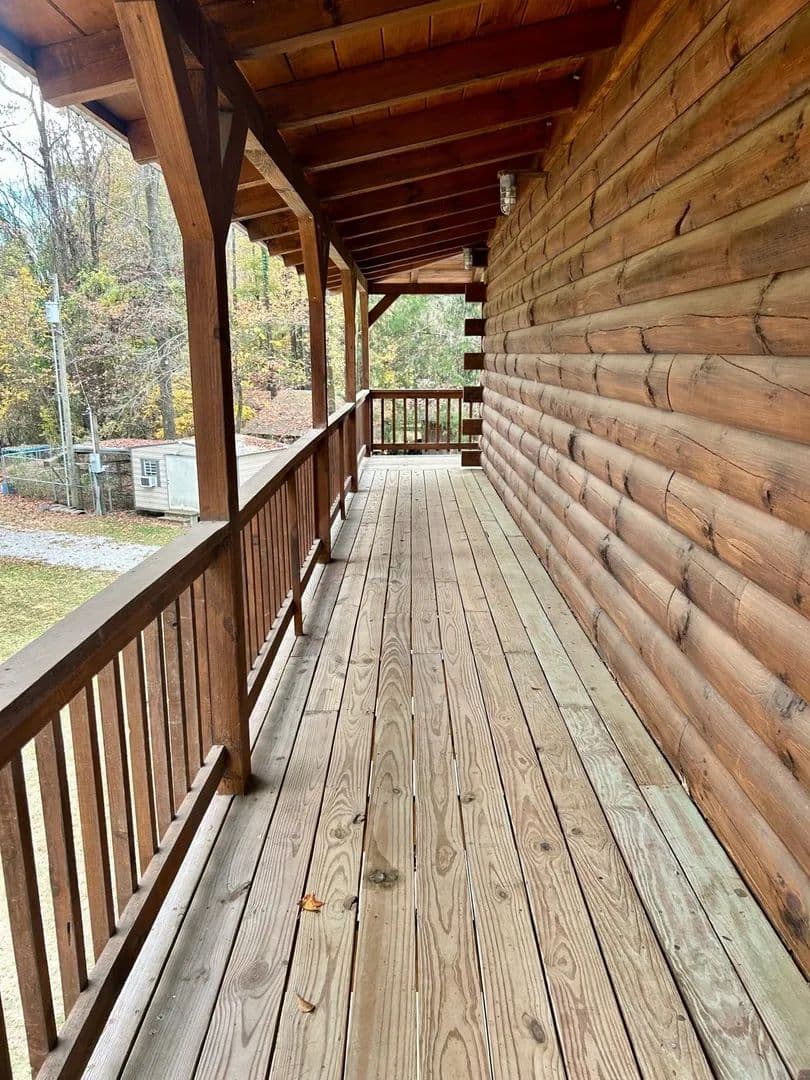 The log home consists of approximately 4100 square feet and is built from white pine logs with a total of 6 bedrooms and 4 1/2 baths. The main living space features 3 bedrooms, 2.5 baths, large great room, kitchen and dining room, sunroom and screened grilling porch.