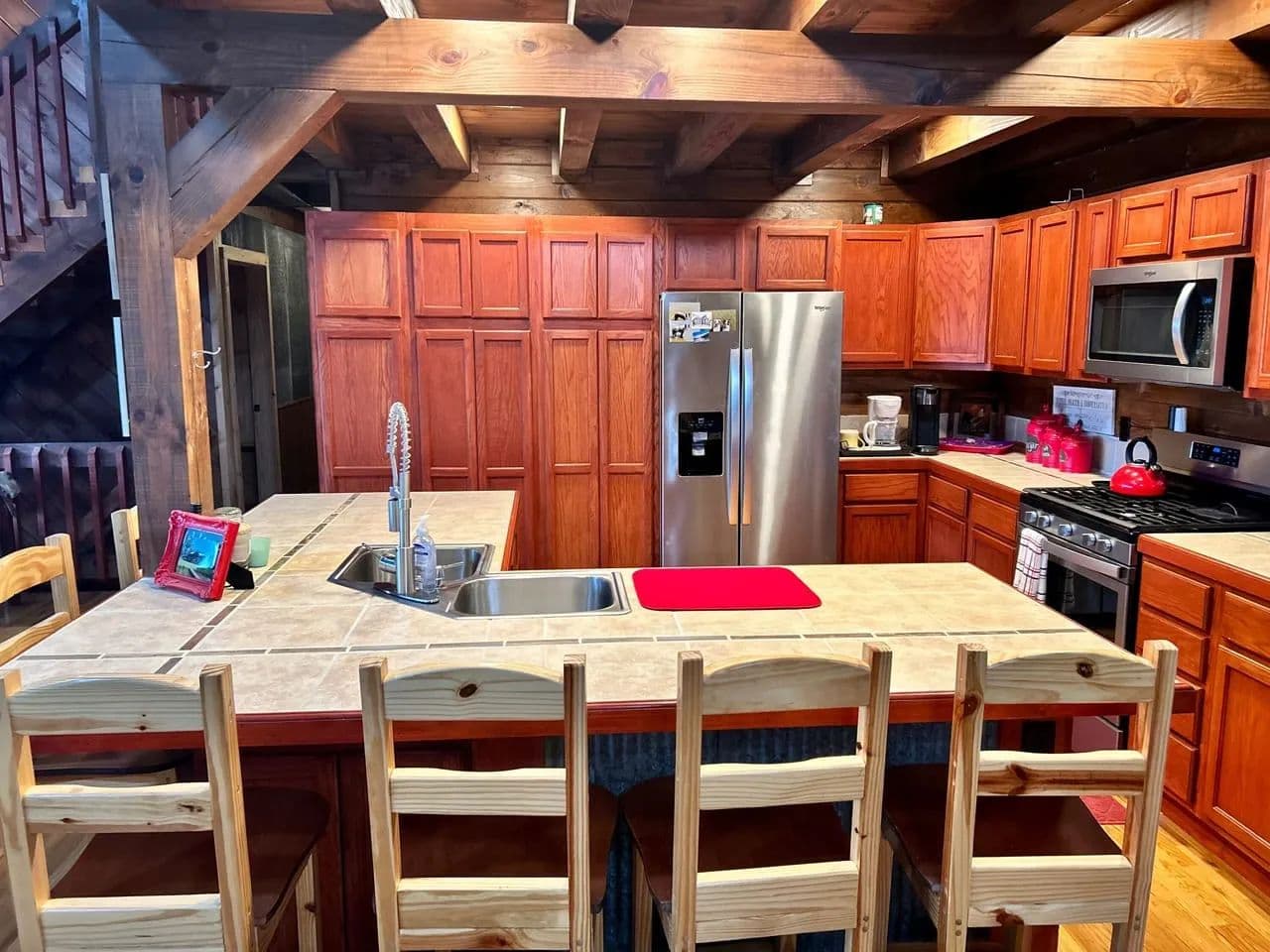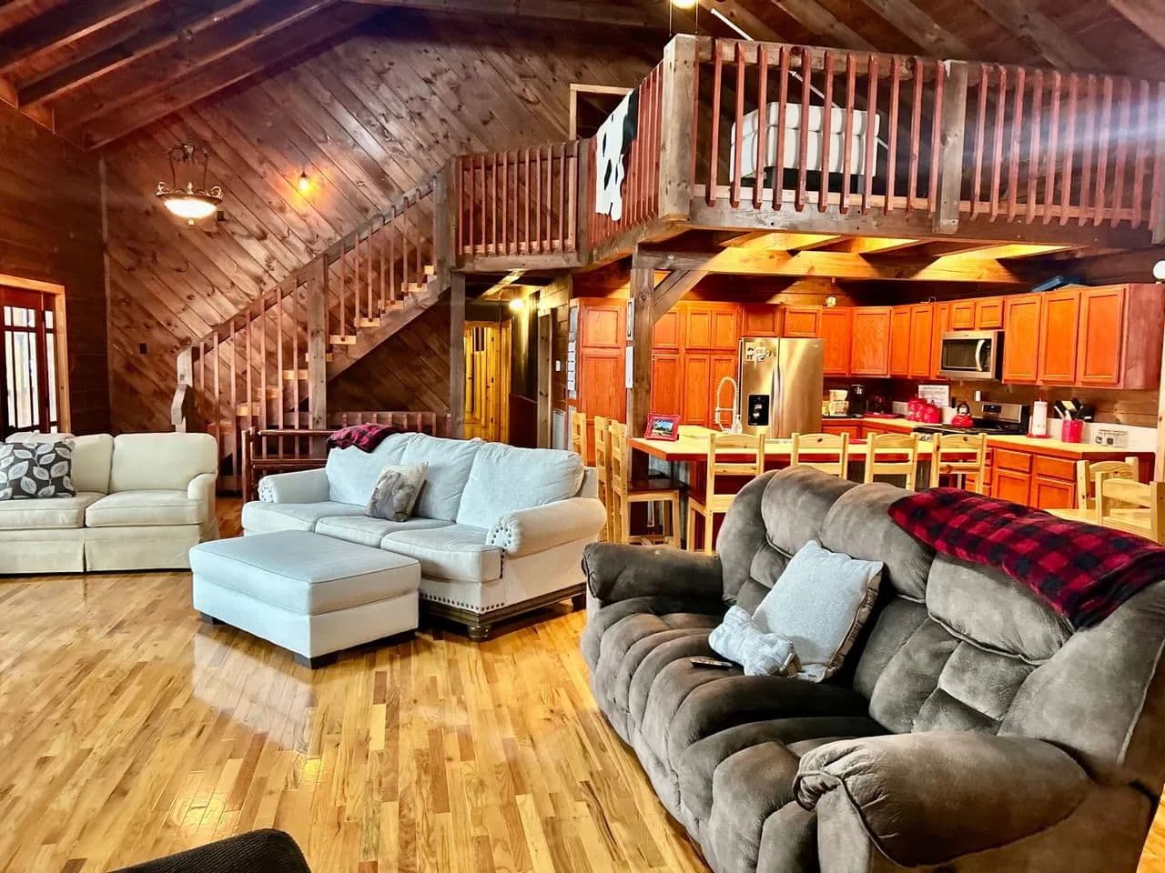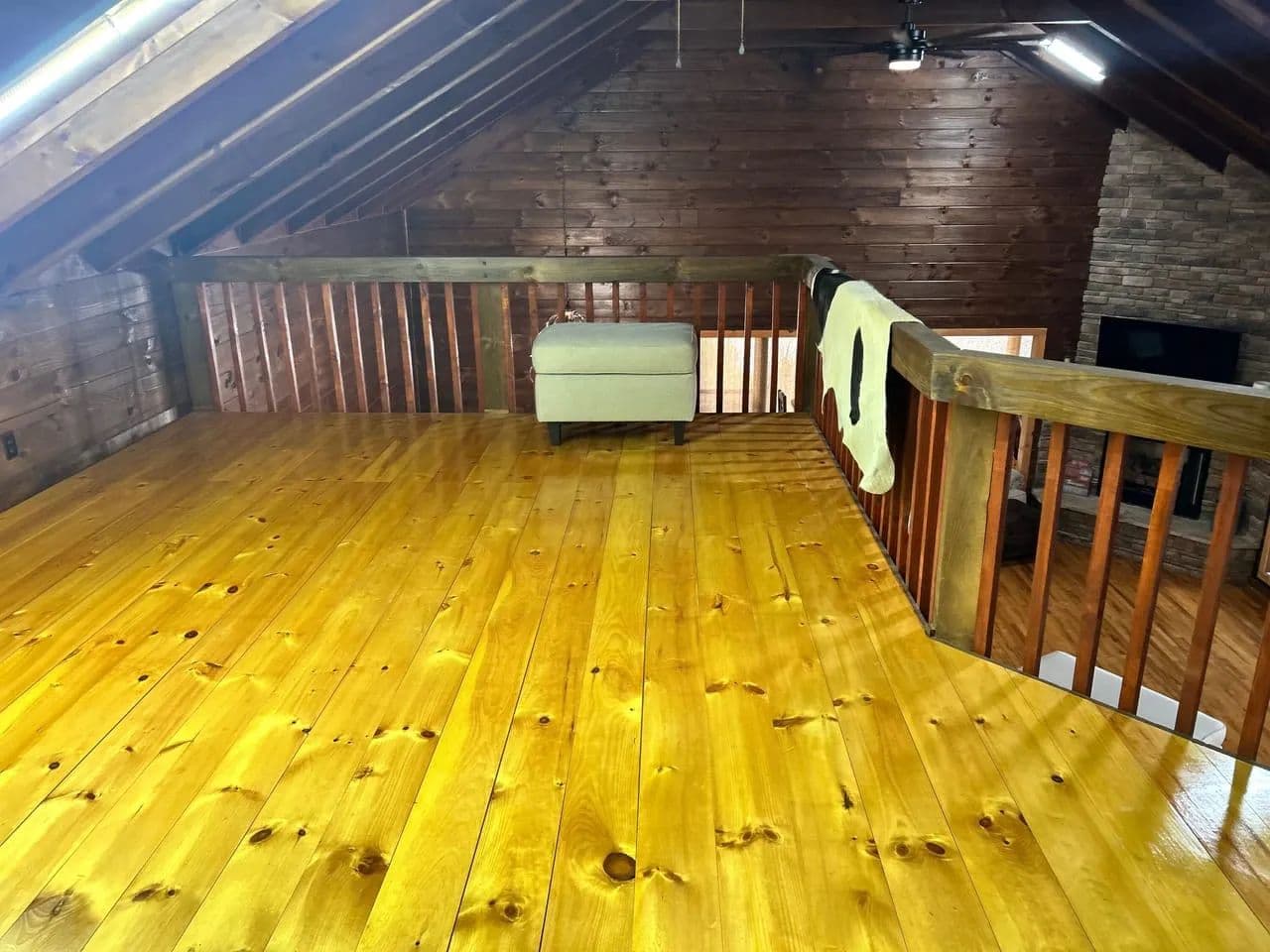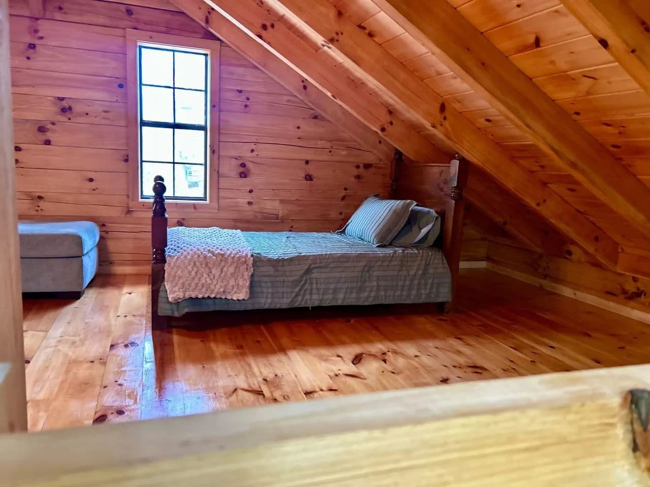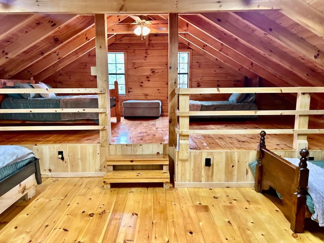 The loft offers an elevated deck with one large open bedroom which could easily sleep 8 to 10 people.