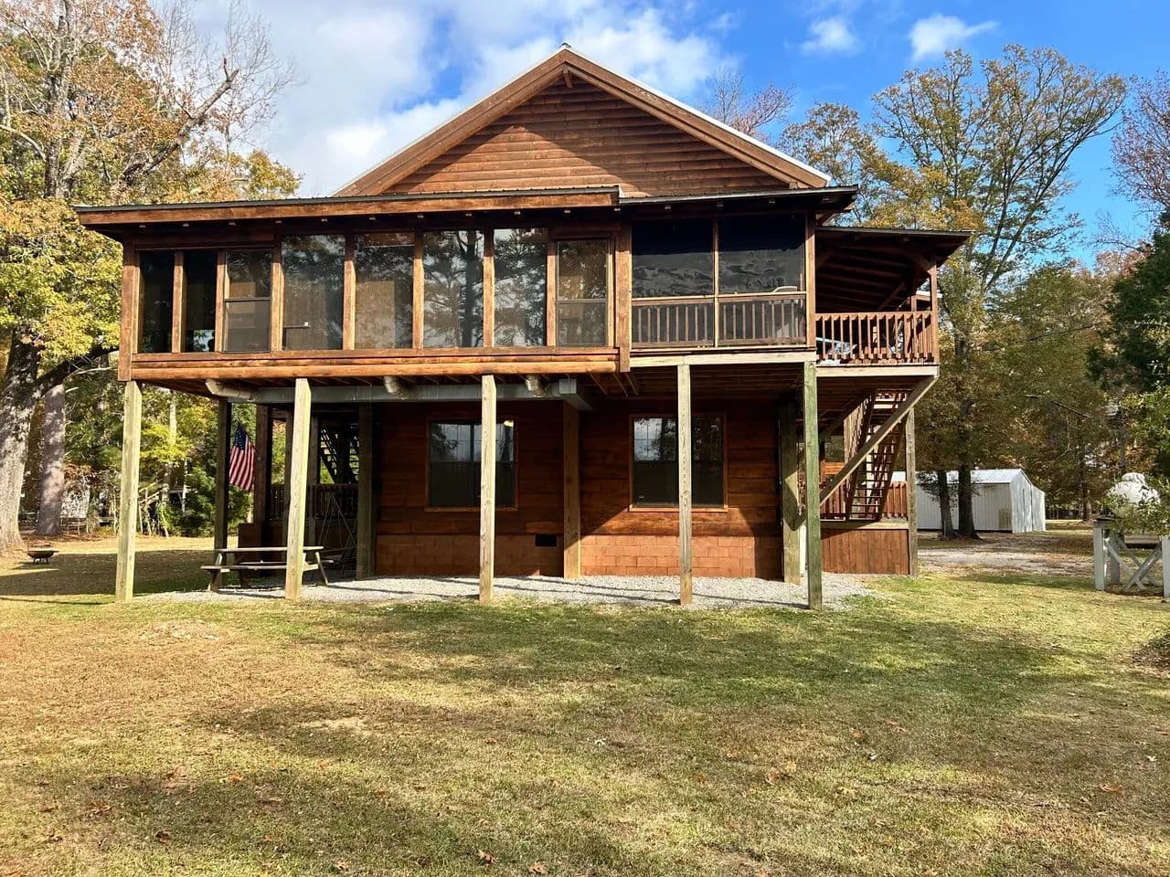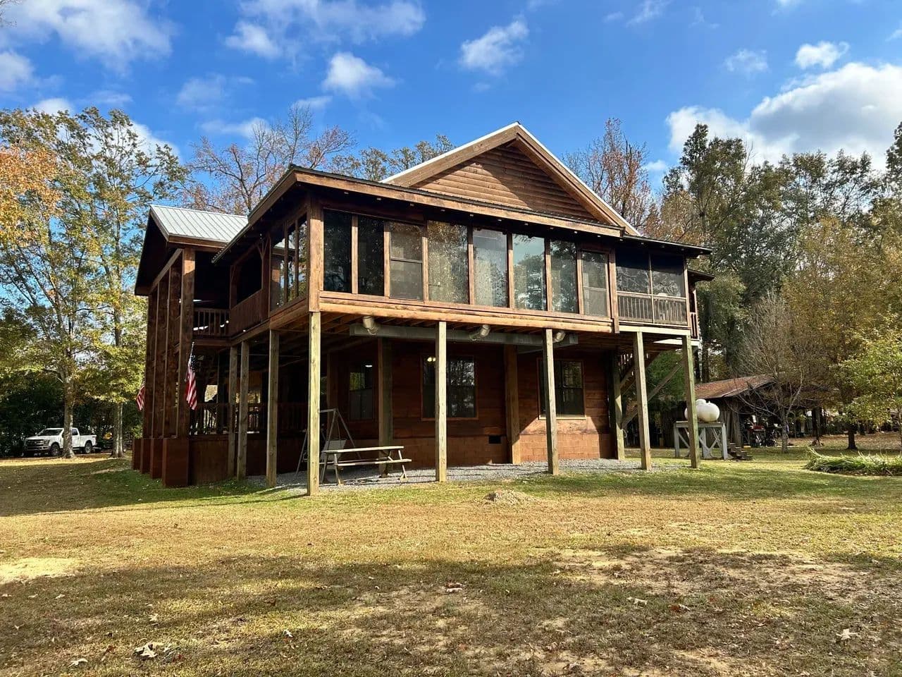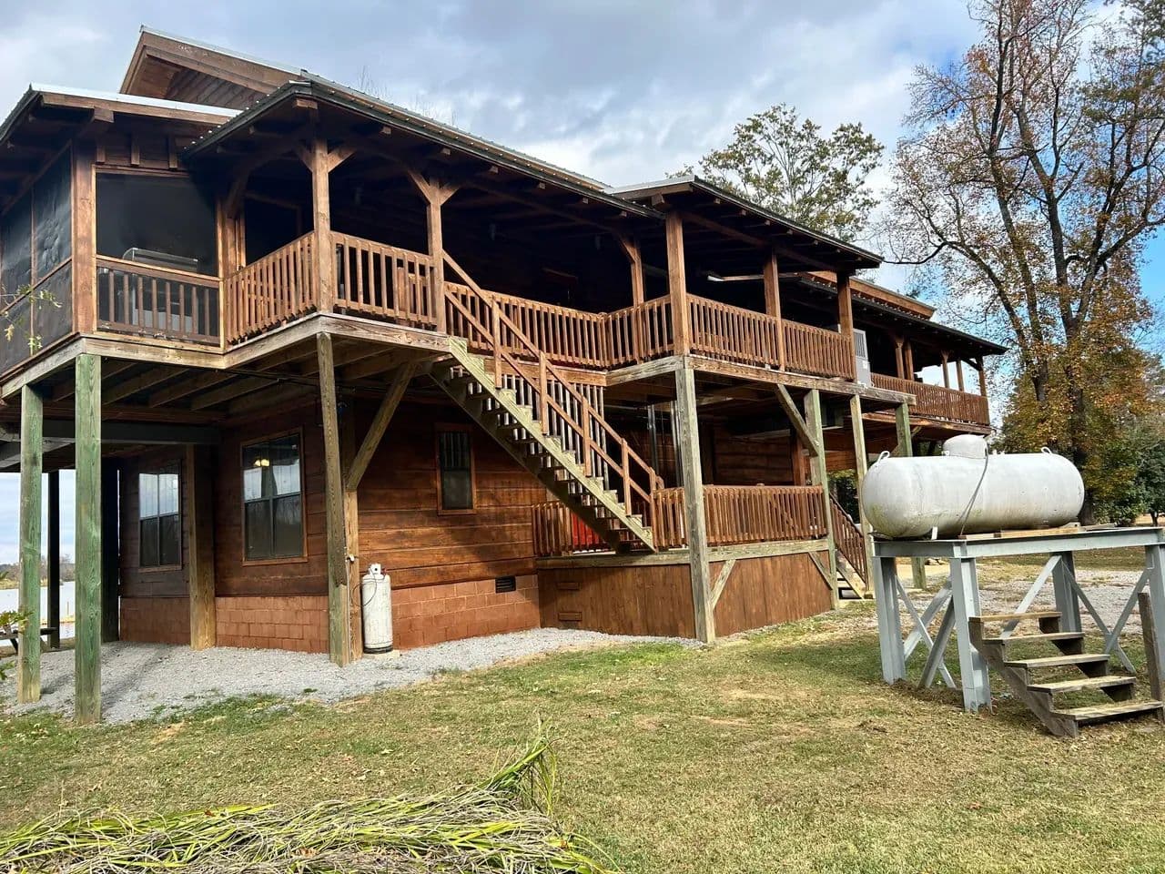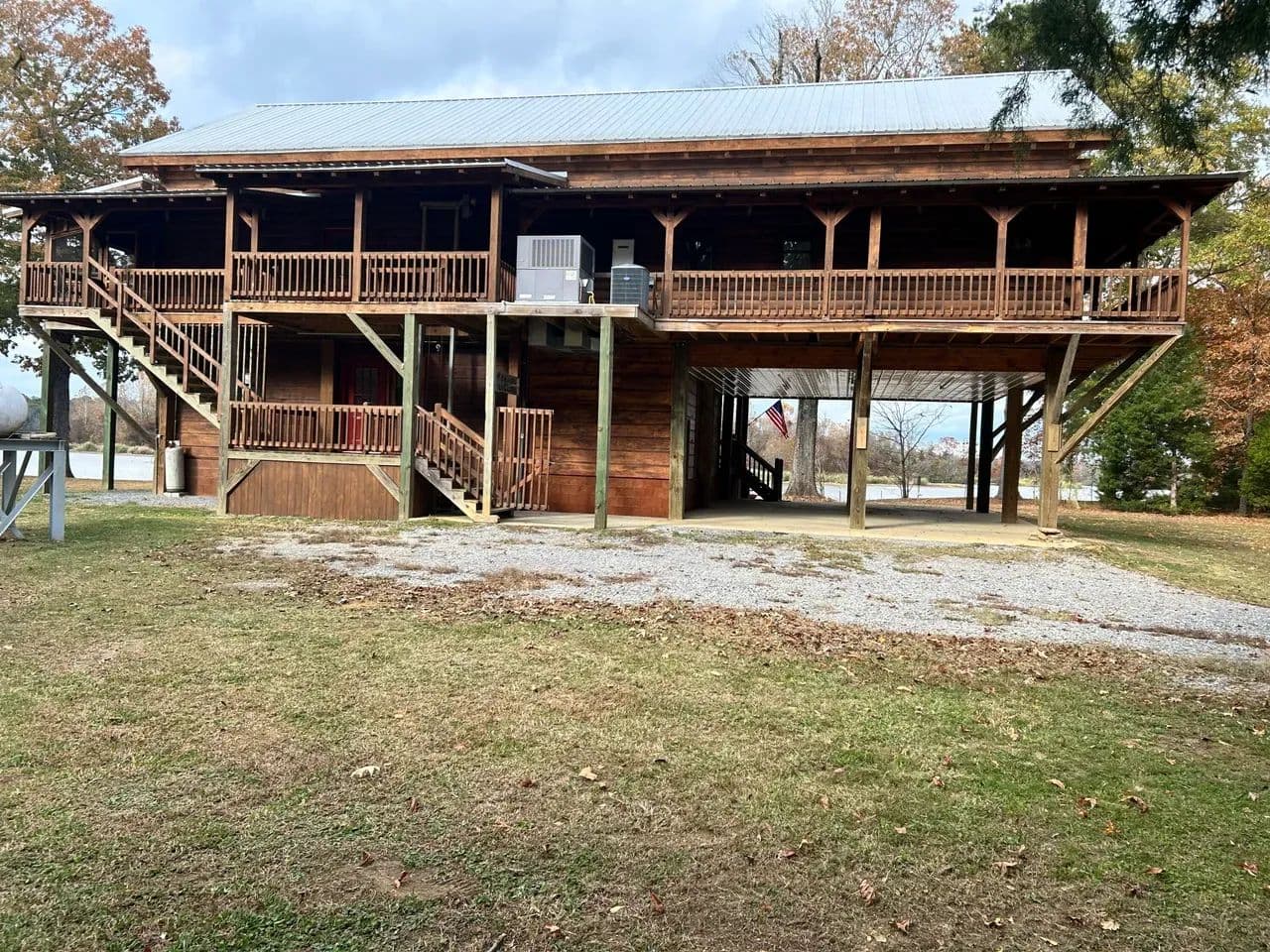 The Homestead Lodge is located in the Pumpkin Creek gated riverfront community in Brooksville, Mississippi. Pumpkin Creek is located in the majestic Tombigbee River bottom hardwoods. The community offers a private boat ramp for access to the Tombigbee River. The home sits on a spacious 1.6 acre lot nestled among beautiful cherry bark oaks with wonderful views of Pumpkin Creek and the main channel. The topography of the lot is flat and level.