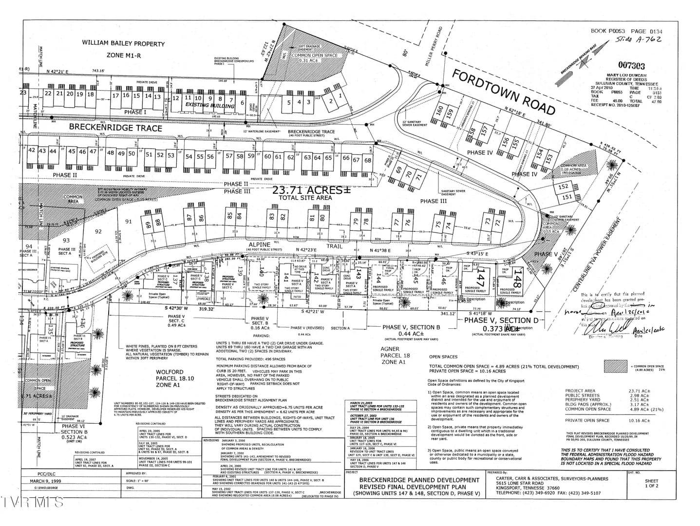 Introducing: Breckenridge a premier 90 plus unit development. Currently Zoned PUD (Planned Unit Development) or R3 Developments. Discover a new standard of living in the thriving heart of North East Tennessee. Breckenridge, offers an unparalleled opportunity for investors and future home-buyers alike. Infrastructure is currently in place with roads, utilities, water, and sewer available. Nestled within the beauty of the Tri-Cities region and designed with both luxury and community in mind; this development represents the future of upscale living. Situated in Kingsport city limits and a mile from I81 and I26 at exit 10; residents will have convenient access to the area's top attractions (Hard Rock Casino), including shopping centers (The Pinnacle), schools (New Tri Cities Christian Academy), recreational facilities, and employment. Whether you're looking to invest in a rapidly growing region or start a development, Breckenridge offers an ideal developer investment opportunity in one of Tennessee's most desirable locations equidistant from Bristol, Kingsport, and Johnson City Tennessee. No Hoa and ready to be permitted. All information taken from third party and tax records. Buyer and Buyers Agent to Verify.