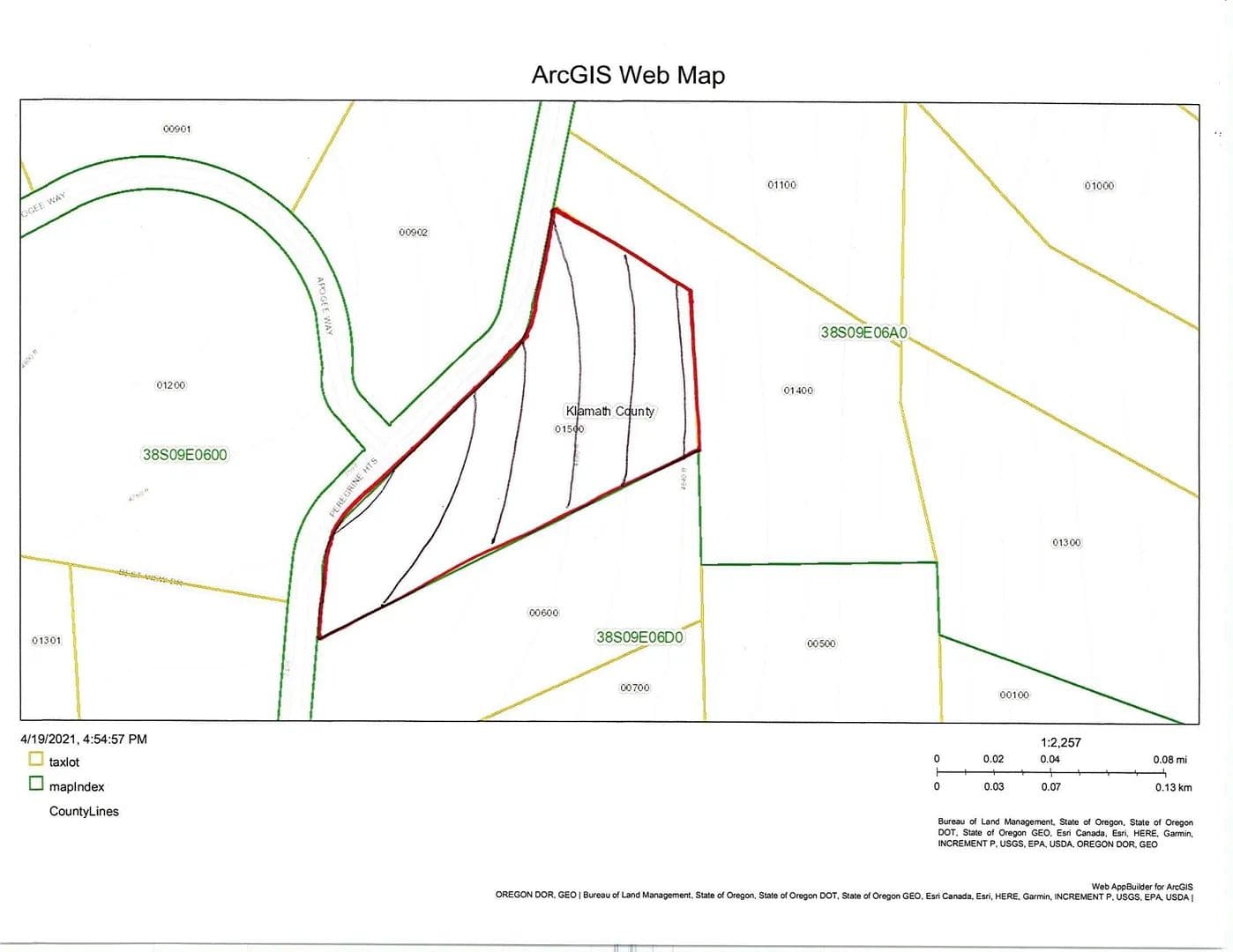 5-acre hillside lot on the eastern slope of Paradise Hill Subdivision, a gated community just north of Klamath Falls, mountain views, including a distant view of Mt. Shasta! This lot is more gently sloped than most. Power box on lot. Annual HOA dues were $ 438 for the 2022 year.