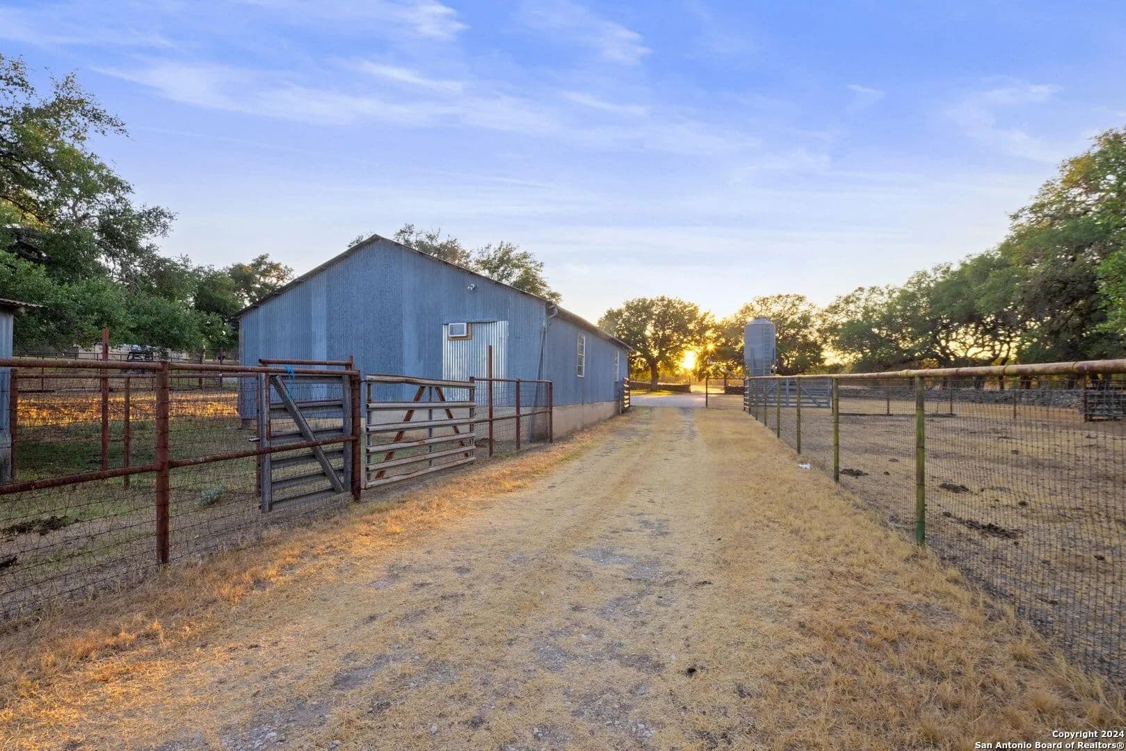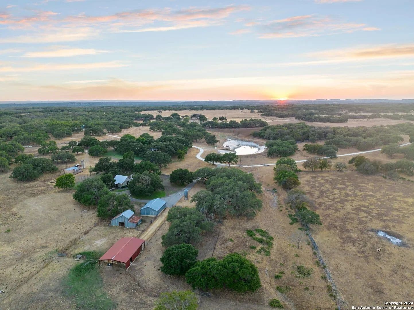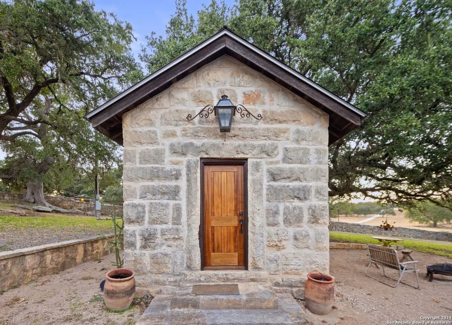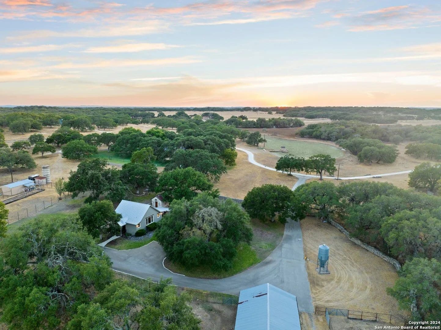 El Cerrito ranch is the epitome of Texas Hill Country Living. Situated on 65+/- acres, this ranch provides a lifestyle, wildlife, and tranquility. Welcome to El Cerrito ranch located in the small town of Kendalia, Texas. 99.9% cleared of cedar, this high-fenced ranch offers a main home, pool, and a casita. Also, a guest home, a horse barn, a two-acre pond, two wells, a chicken coop, high fenced/irrigated garden, and 3 additional barns/out buildings. Completely remodeled in 2019, the main home features custom details throughout and overlooks the pond. The 2 acre pond is spring fed when not in a drought, and was lined in 2022. In the main home, two bedrooms, two full and one half bath is down. Three bedrooms and two bathrooms are up. The entire home was re-imagined and no detail was over-looked. Hand hewn beams, oak plank barn wood floors, true saltillo tile, custom iron work, antique doors, one of a kind chandeliers throughout, and a chef's kitchen with custom cabinets, quartz countertops, and Thermador appliances over-looks the living room flooded with natural light from the wall of windows. The office has wall to wall windows and looks out over the back yard. The dreamy and open backyard features a hot tub/pool with a slide and a pool house complete with a bedroom and kitchenette. Mature trees canopy over this property truly making it feel like paradise. The fully remodeled guest house offers two bedrooms, a full bathroom, a full chef's kitchen including a Wolf gas range that over looks a dining room and living room, and its own utility room. This guest house exudes comfort and will make your guest feel as if they are in paradise. Just outside of the guest house is a wine cellar inside a building built in the 1800's. Completely restored with custom cherry wood wine racks, this building will certainly be a conversation starter for you and your guests while you enjoy a glass of wine. El Cerrito ranch is gated, fully fenced and cross fenced. You can easily be in Boerne or San Antonio in less than 30 minutes. Welcome home to El Cerrito Ranch where memories are waiting to be made