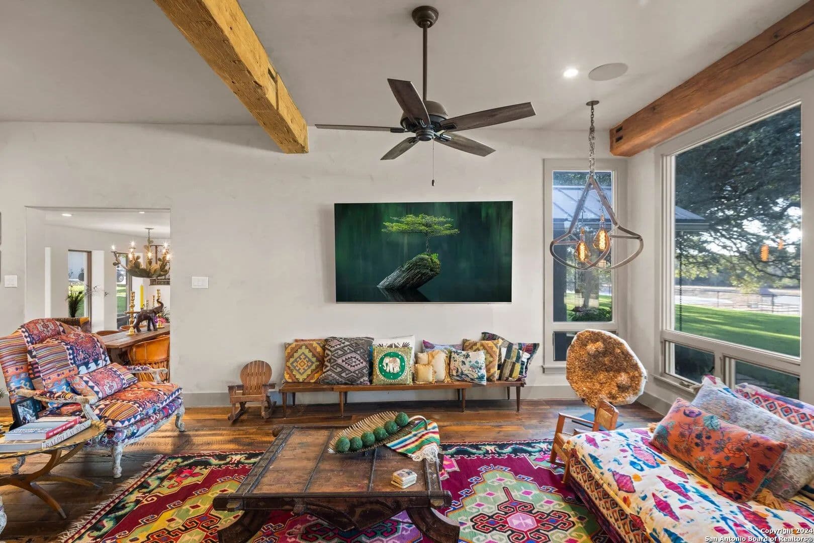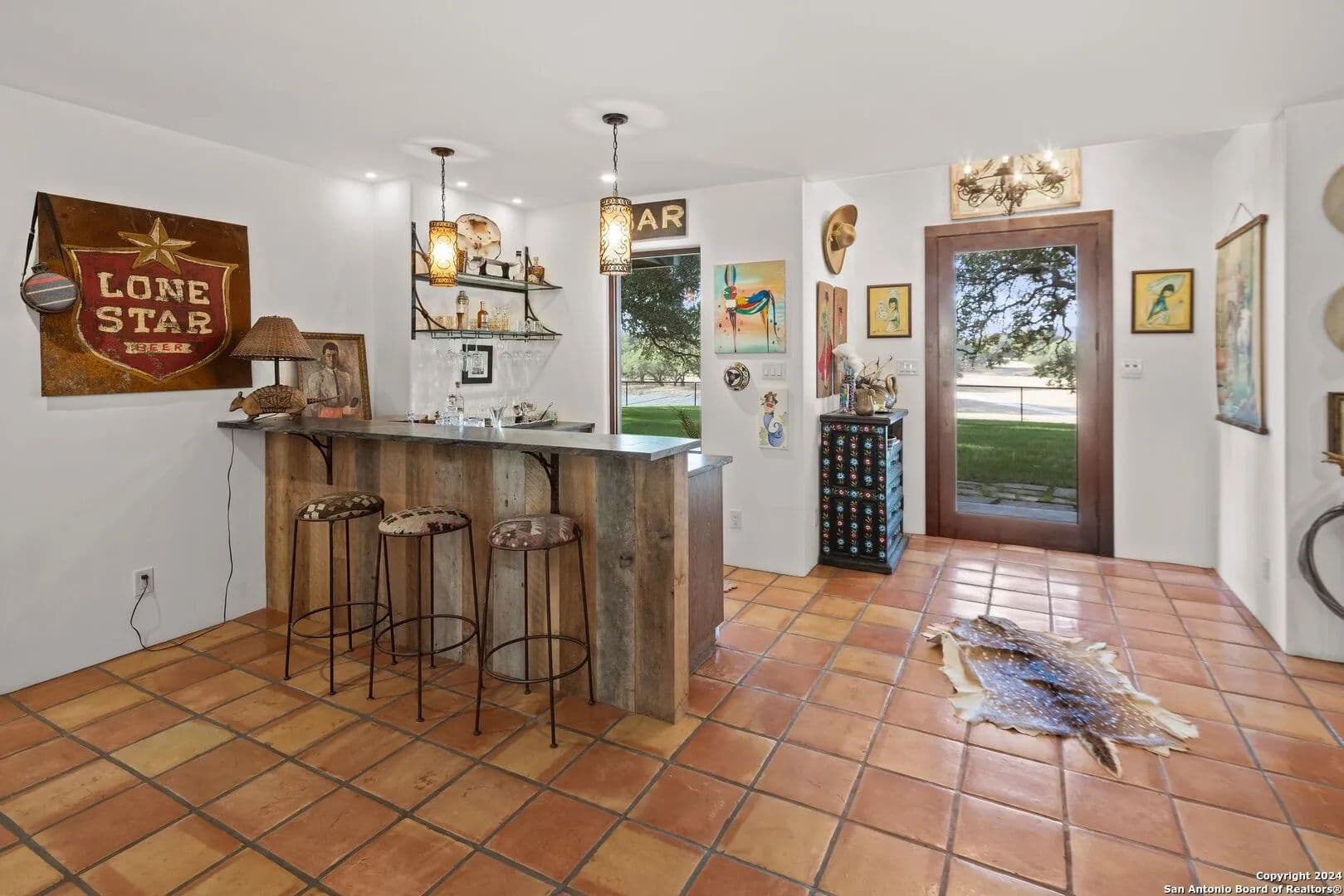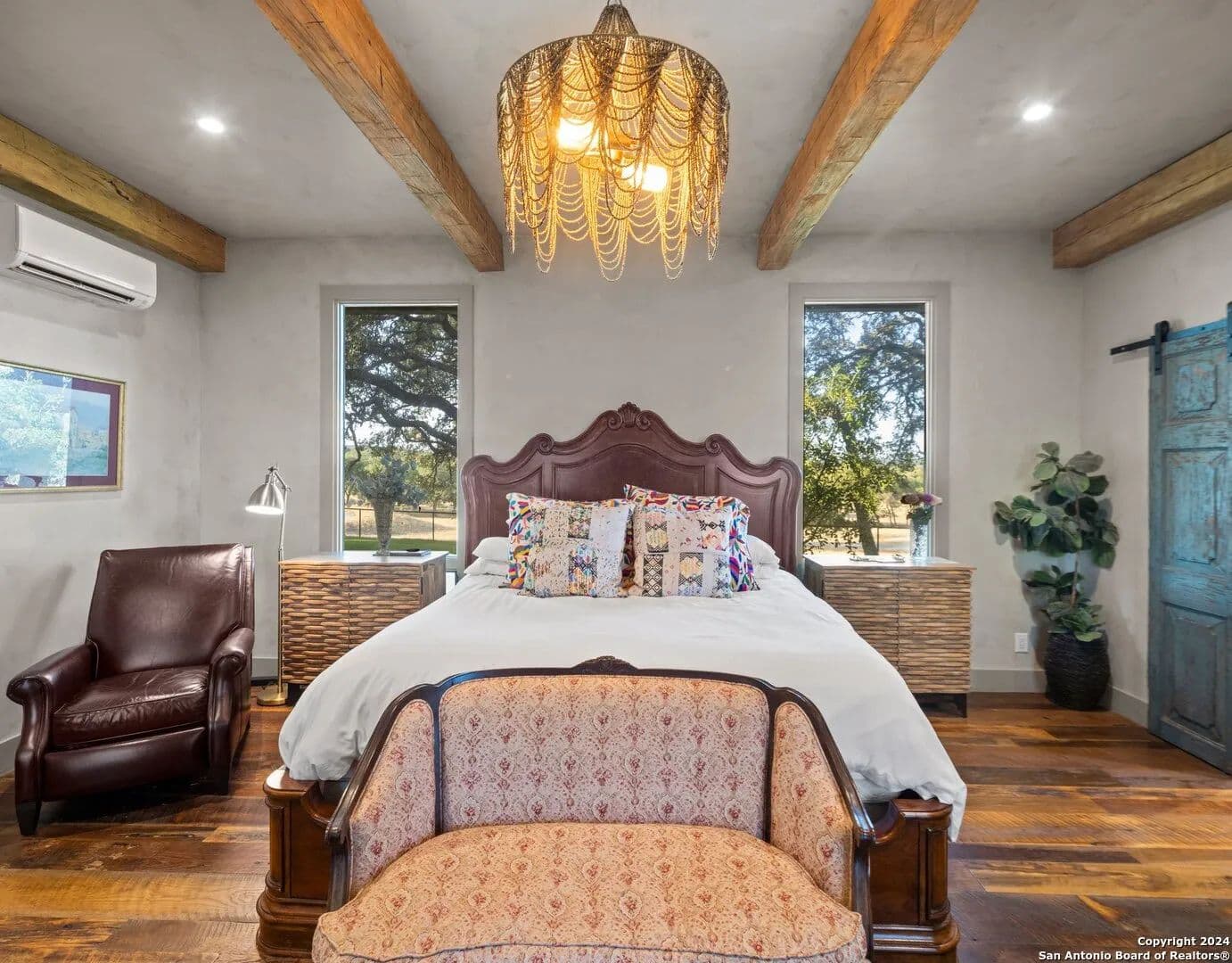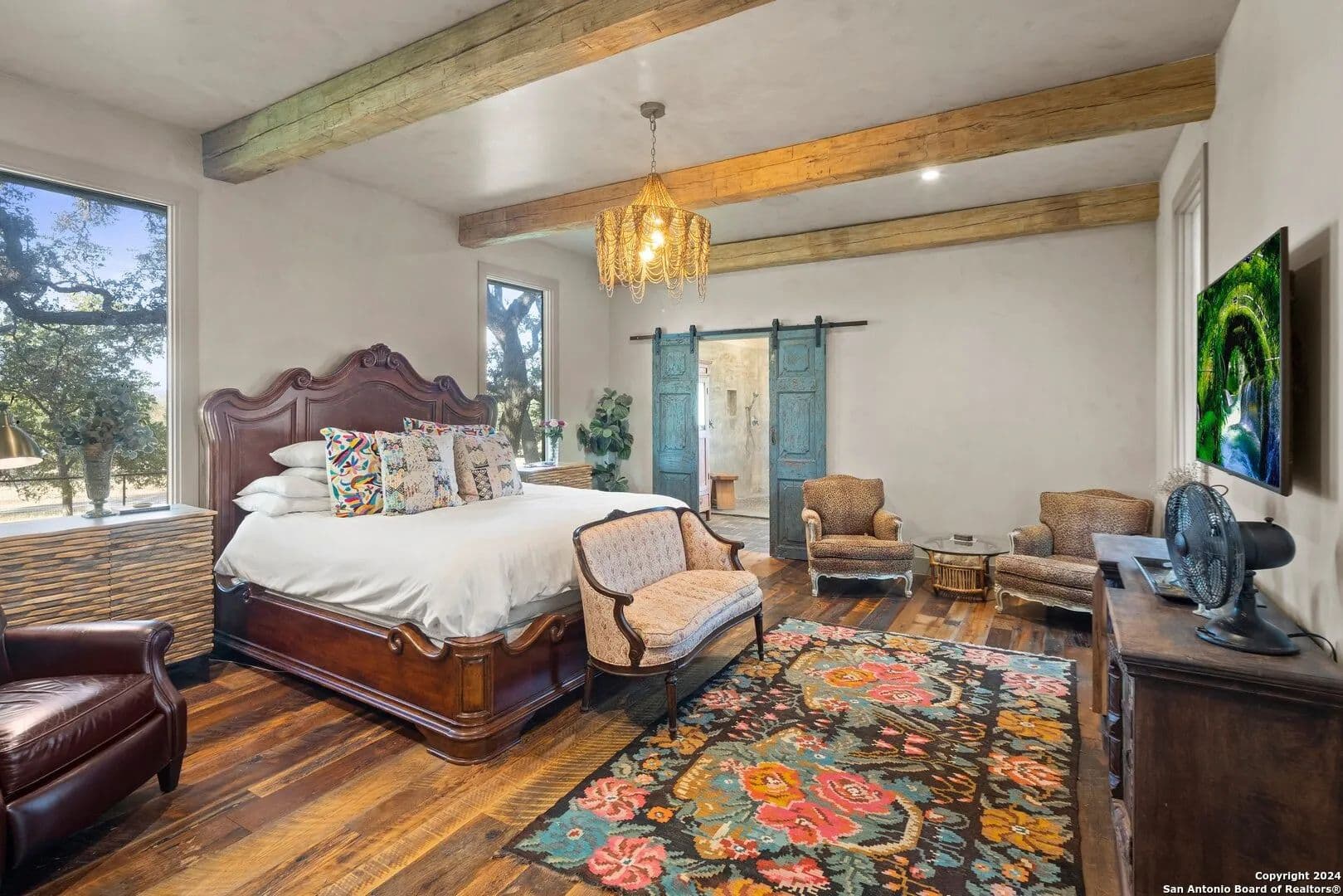 El Cerrito ranch is the epitome of Texas Hill Country Living. Situated on 65+/- acres, this ranch provides a lifestyle, wildlife, and tranquility. Welcome to El Cerrito ranch located in the small town of Kendalia, Texas. 99.9% cleared of cedar, this high-fenced ranch offers a main home, pool, and a casita. Also, a guest home, a horse barn, a two-acre pond, two wells, a chicken coop, high fenced/irrigated garden, and 3 additional barns/out buildings. Completely remodeled in 2019, the main home features custom details throughout and overlooks the pond. The 2 acre pond is spring fed when not in a drought, and was lined in 2022. In the main home, two bedrooms, two full and one half bath is down. Three bedrooms and two bathrooms are up. The entire home was re-imagined and no detail was over-looked. Hand hewn beams, oak plank barn wood floors, true saltillo tile, custom iron work, antique doors, one of a kind chandeliers throughout, and a chef's kitchen with custom cabinets, quartz countertops, and Thermador appliances over-looks the living room flooded with natural light from the wall of windows. The office has wall to wall windows and looks out over the back yard. The dreamy and open backyard features a hot tub/pool with a slide and a pool house complete with a bedroom and kitchenette. Mature trees canopy over this property truly making it feel like paradise. The fully remodeled guest house offers two bedrooms, a full bathroom, a full chef's kitchen including a Wolf gas range that over looks a dining room and living room, and its own utility room. This guest house exudes comfort and will make your guest feel as if they are in paradise. Just outside of the guest house is a wine cellar inside a building built in the 1800's. Completely restored with custom cherry wood wine racks, this building will certainly be a conversation starter for you and your guests while you enjoy a glass of wine. El Cerrito ranch is gated, fully fenced and cross fenced. You can easily be in Boerne or San Antonio in less than 30 minutes. Welcome home to El Cerrito Ranch where memories are waiting to be made