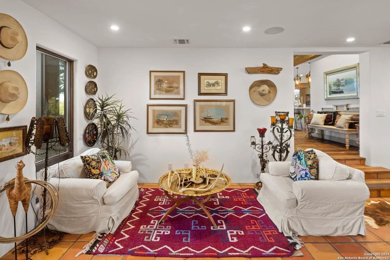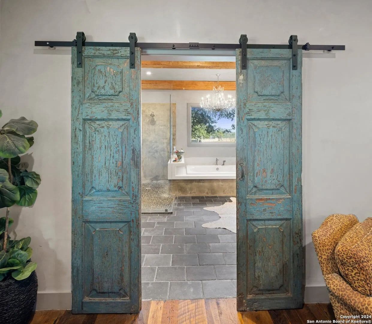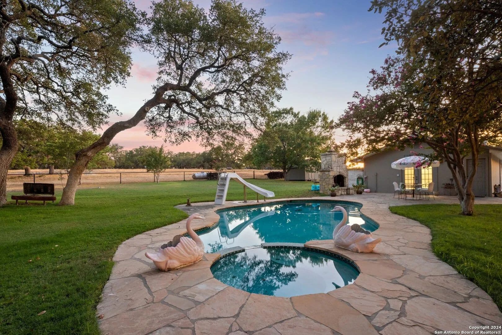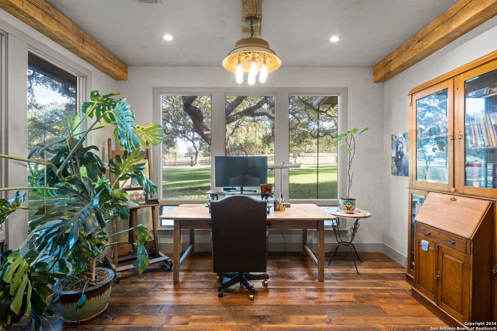 El Cerrito ranch is the epitome of Texas Hill Country Living. Situated on 65+/- acres, this ranch provides a lifestyle, wildlife, and tranquility. Welcome to El Cerrito ranch located in the small town of Kendalia, Texas. 99.9% cleared of cedar, this high-fenced ranch offers a main home, pool, and a casita. Also, a guest home, a horse barn, a two-acre pond, two wells, a chicken coop, high fenced/irrigated garden, and 3 additional barns/out buildings. Completely remodeled in 2019, the main home features custom details throughout and overlooks the pond. The 2 acre pond is spring fed when not in a drought, and was lined in 2022. In the main home, two bedrooms, two full and one half bath is down. Three bedrooms and two bathrooms are up. The entire home was re-imagined and no detail was over-looked. Hand hewn beams, oak plank barn wood floors, true saltillo tile, custom iron work, antique doors, one of a kind chandeliers throughout, and a chef's kitchen with custom cabinets, quartz countertops, and Thermador appliances over-looks the living room flooded with natural light from the wall of windows. The office has wall to wall windows and looks out over the back yard. The dreamy and open backyard features a hot tub/pool with a slide and a pool house complete with a bedroom and kitchenette. Mature trees canopy over this property truly making it feel like paradise. The fully remodeled guest house offers two bedrooms, a full bathroom, a full chef's kitchen including a Wolf gas range that over looks a dining room and living room, and its own utility room. This guest house exudes comfort and will make your guest feel as if they are in paradise. Just outside of the guest house is a wine cellar inside a building built in the 1800's. Completely restored with custom cherry wood wine racks, this building will certainly be a conversation starter for you and your guests while you enjoy a glass of wine. El Cerrito ranch is gated, fully fenced and cross fenced. You can easily be in Boerne or San Antonio in less than 30 minutes. Welcome home to El Cerrito Ranch where memories are waiting to be made