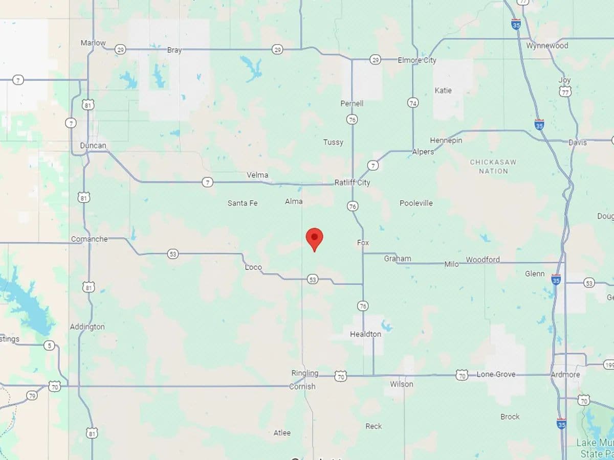 Location: N Stephens County Rd 3040, Loco, OK, 73442, Stephens County. 7 miles northeast of Loco, OK, 15 miles southwest of Healdton, OK.