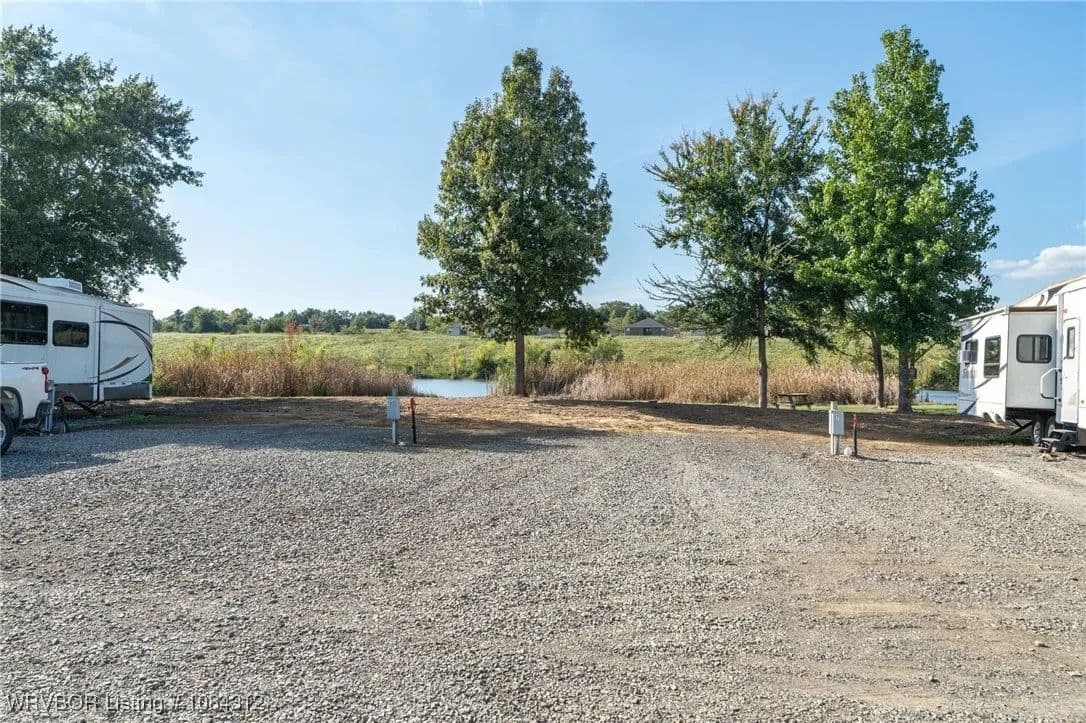 The park is fully equipped with 5 separate 200-amp electrical panels, a water meter, and three aerobic septic systems with 2,000-gallon tanks, providing each pad with 50-amp, 30-amp, and 110-volt service plus water and septic hookup. Picnic tables, mature shade trees, wild plum trees, and blackberries create a welcoming setting with breathtaking mountain views.