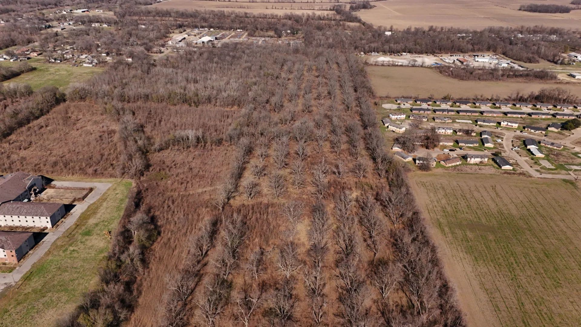 The tract consists of 32± acres in a productive pecan orchard, providing immediate agricultural or interim income potential, along with 34± acres in small trees and transitional cover that can be selectively cleared or incorporated into future development plans. The mix of open orchard ground and lightly timbered acreage offers flexibility for phased development, lot layout, or land banking while maintaining current land value.