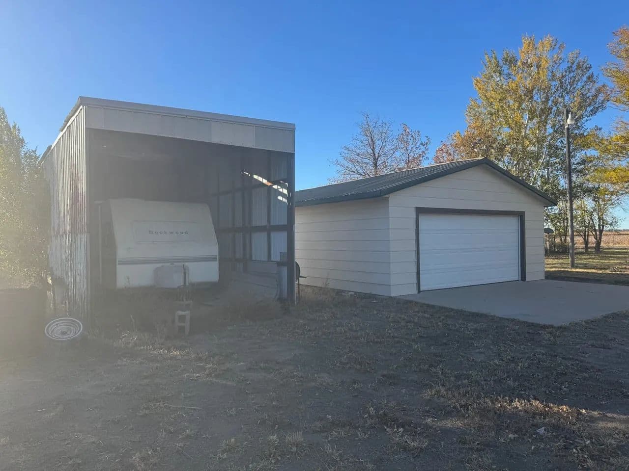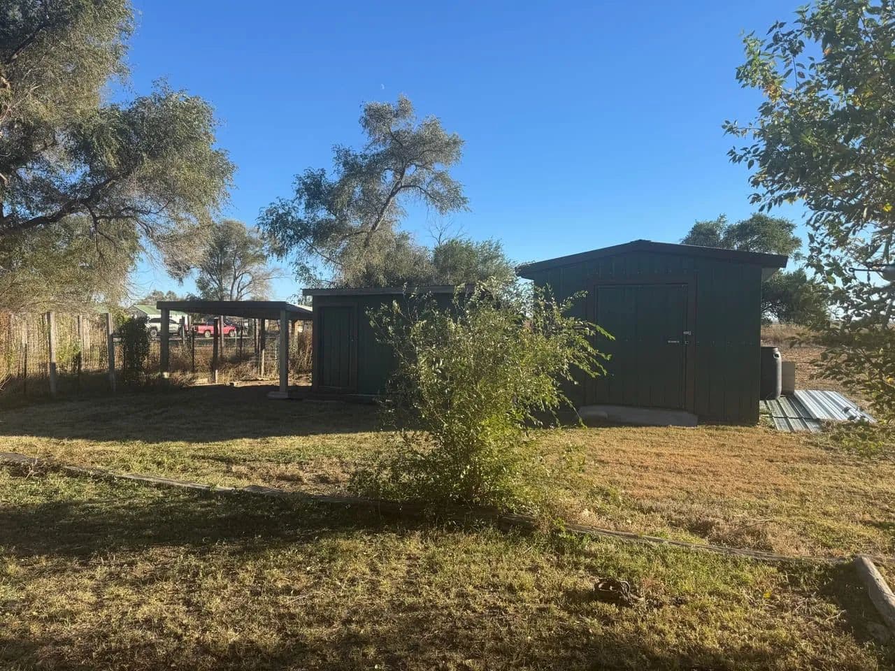 Welcome to rural living on 2.7 acres of land with space to breathe and room to grow. Located just 5.5 miles east of Las Animas in the community of Ft. Lyon, this property has a 3 bedrooms, 2 bathroom ranch style home, 2 car detached garage, and a carport tall enough to fit a camper or RV. In the backyard there are 2 metal sheds, and a fenced in area perfect for a garden. A small lean to sits next to the sheds creating more covered storage. The property has a water well for the house and yard and shade trees surrounding the house. The exterior and interior has fresh paint and updated flooring in the bedrooms and bathrooms. A covered patio sits off of the side of the house leading through French doors from the kitchen area. The kitchen offers plenty of cabinets and counter space with room for a dining table. A large living room is situated in the center of the home offering abundant space for furniture or an additional dining area. The main bedroom with attached bathroom sits on the west side of the home and the other 2 bedrooms and hallway bath sit on the west side of the home. A designated laundry/utility room is tucked behind the front entrance of the house. This property has so much to offer a new owner. Schedule your tour today!