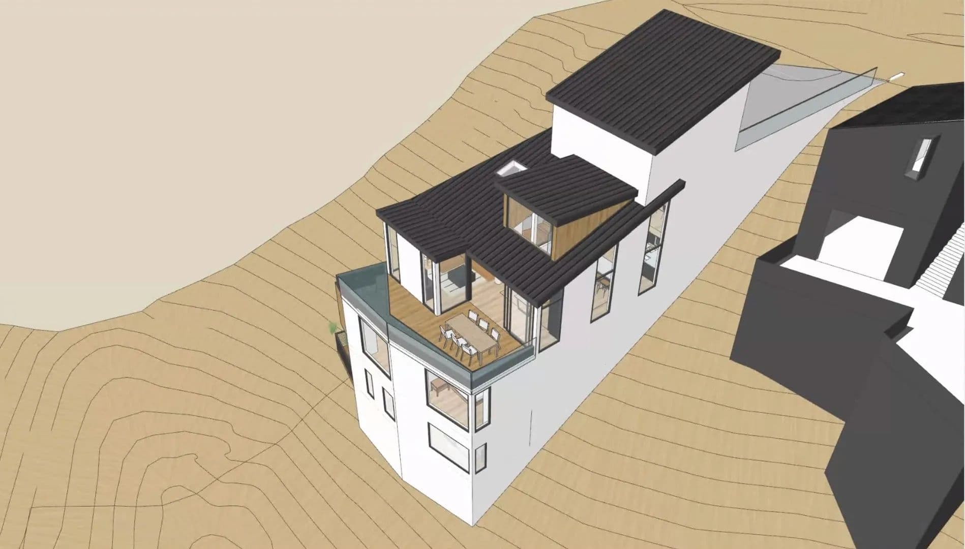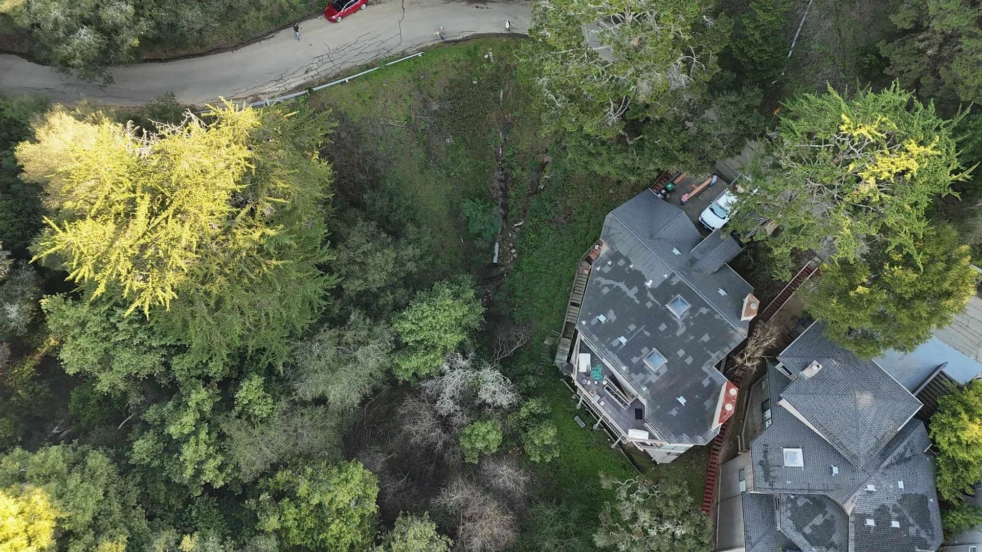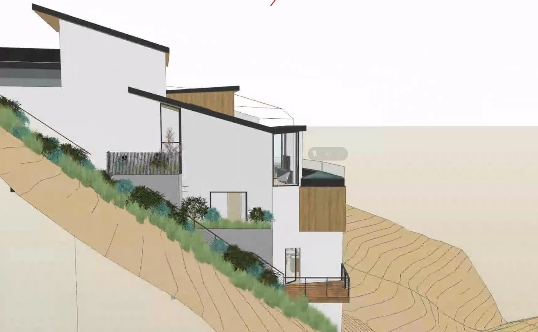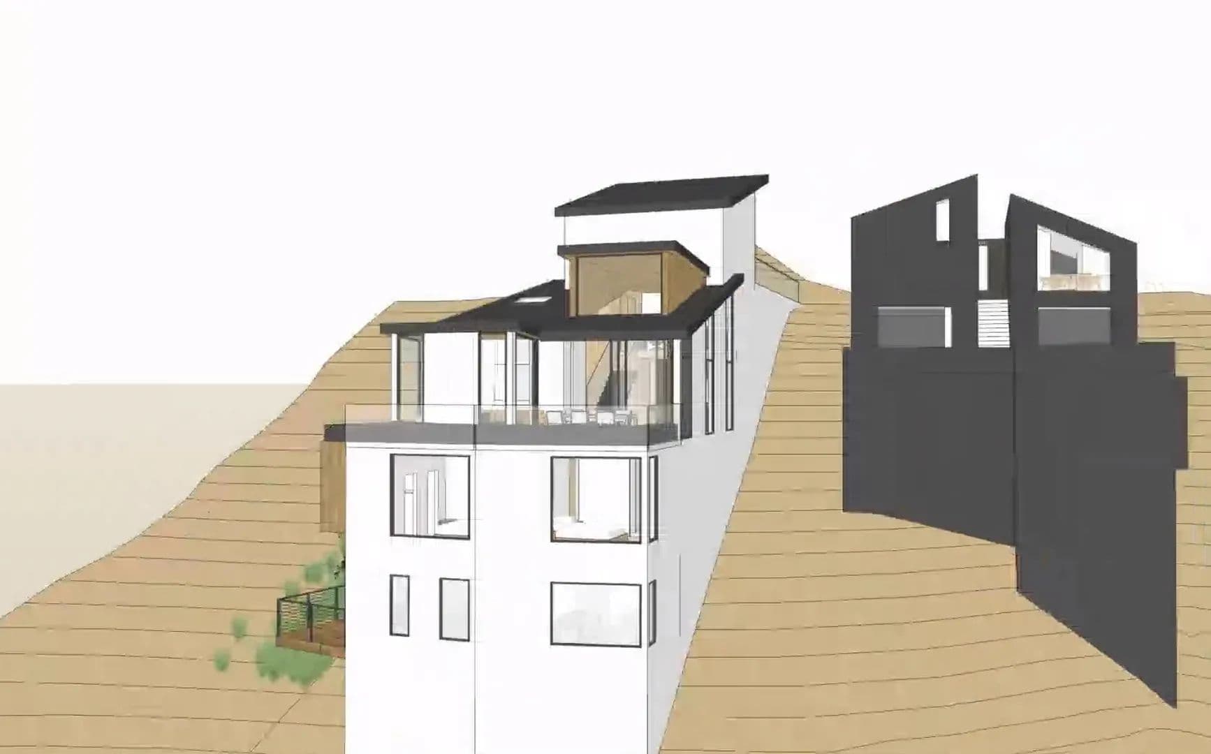 Downslope with direct views of downtown San Francisco. Design review approved plans. The next step is construction drawings for a building permit.