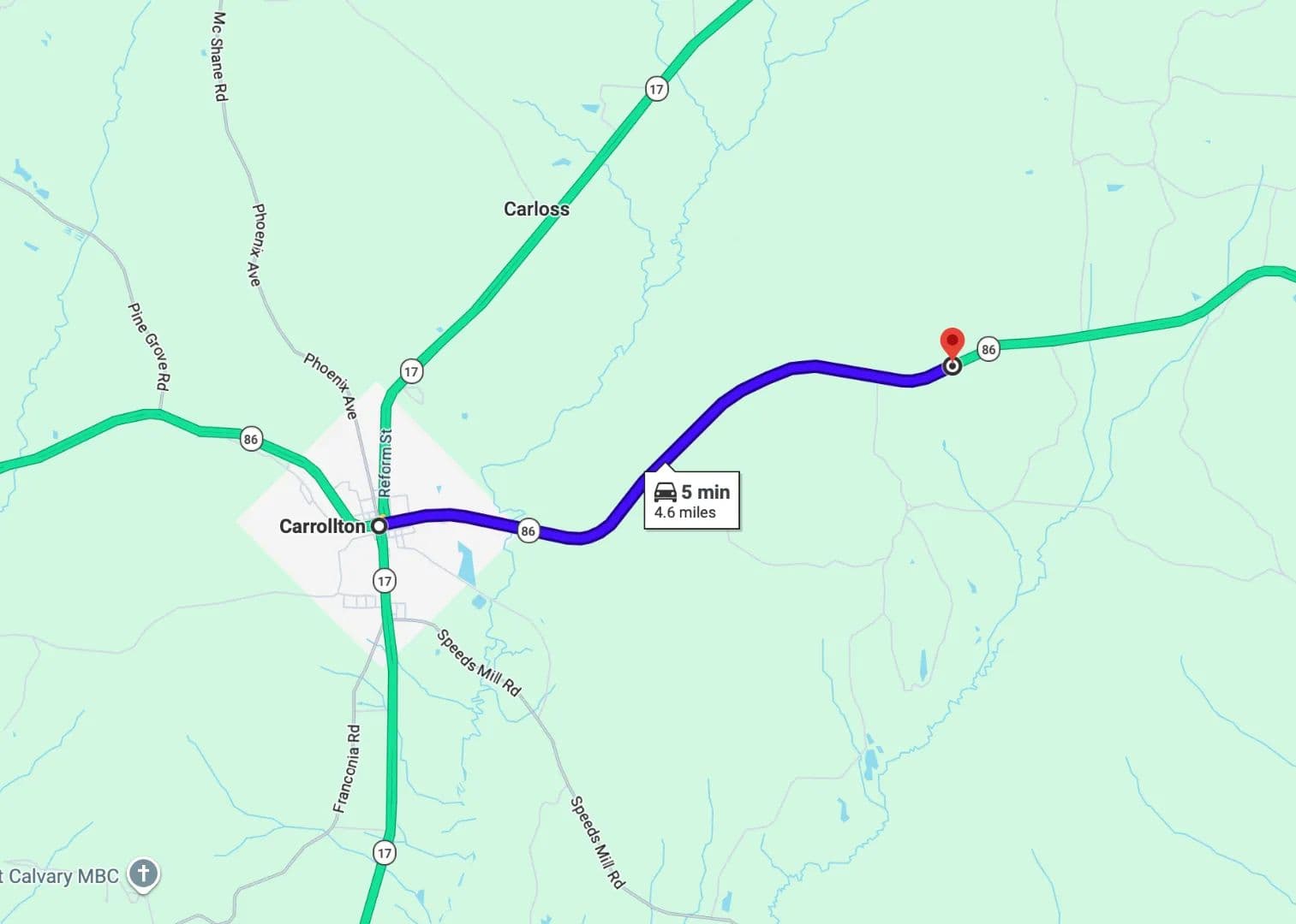 The Pickens 39 provides excellent access with direct road frontage on Highway 86 and sits just 5± miles from downtown Carrollton, 30± miles from Tuscaloosa, 25± miles from Lake Lurleen State Park in Coker, and 36± miles from Columbus, Mississippi.