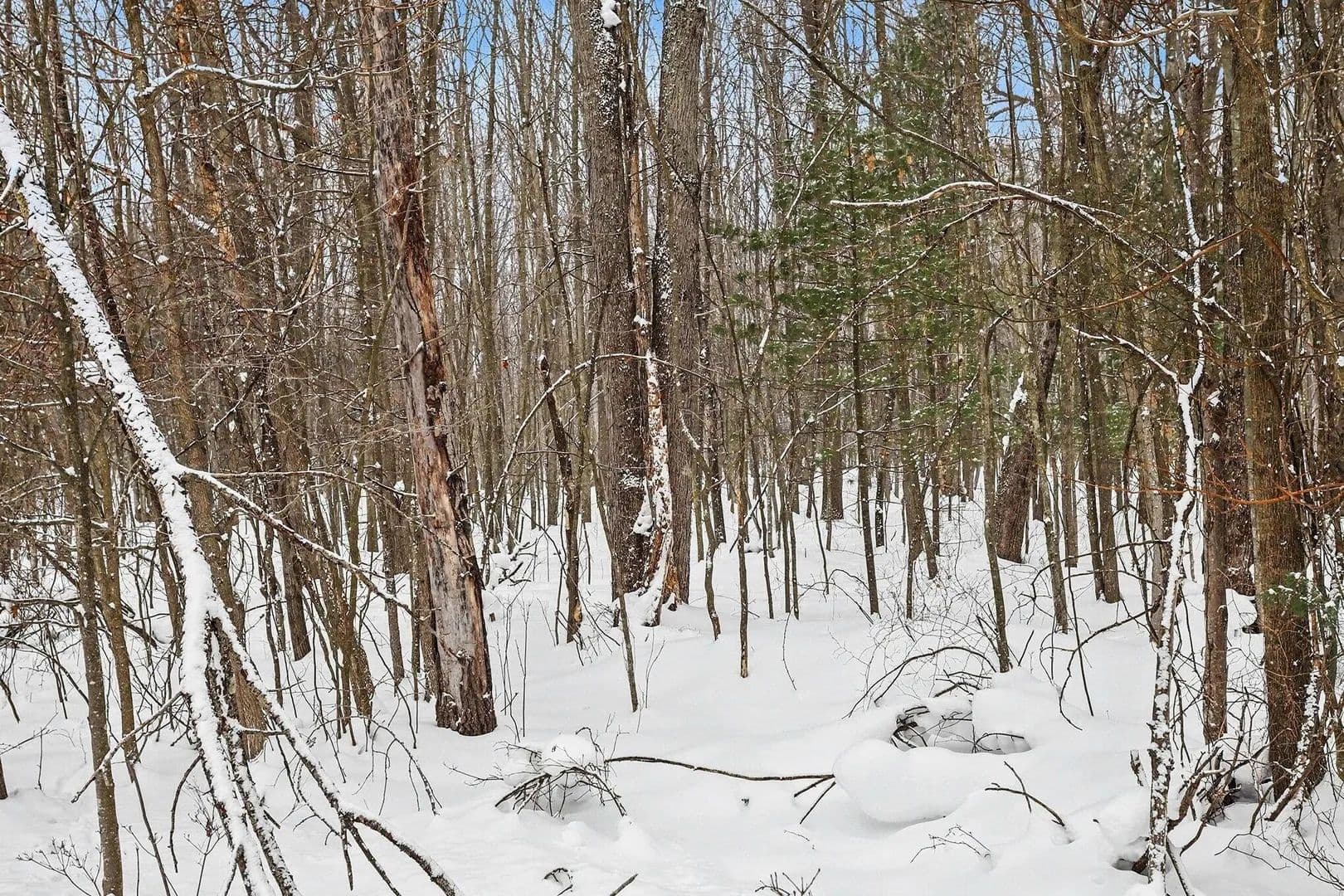 Approximately 45 wooded acres in Allegan County near Pullman with deeded access to Upper Scott Lake. The property is divided by paved Nadeau Drive and offers a unique combination of a buildable homesite and separate recreational lake frontage. A soil evaluation has been completed and approved on the larger parcel, supporting residential construction. The land is fully wooded with mature trees, privacy, and abundant deer and turkey wildlife habitat. The additional acreage across the road provides direct lake access where a dock may be installed for fishing, kayaking, and lakeside use. This allows a home or cabin to be built on the main acreage while still enjoying the lake. Power is available. A well and septic system would be typical for development. A utility easement along the rear portion creates natural clearings and trails. Suitable for a full-time residence, seasonal cabin, or recreational hunting property.