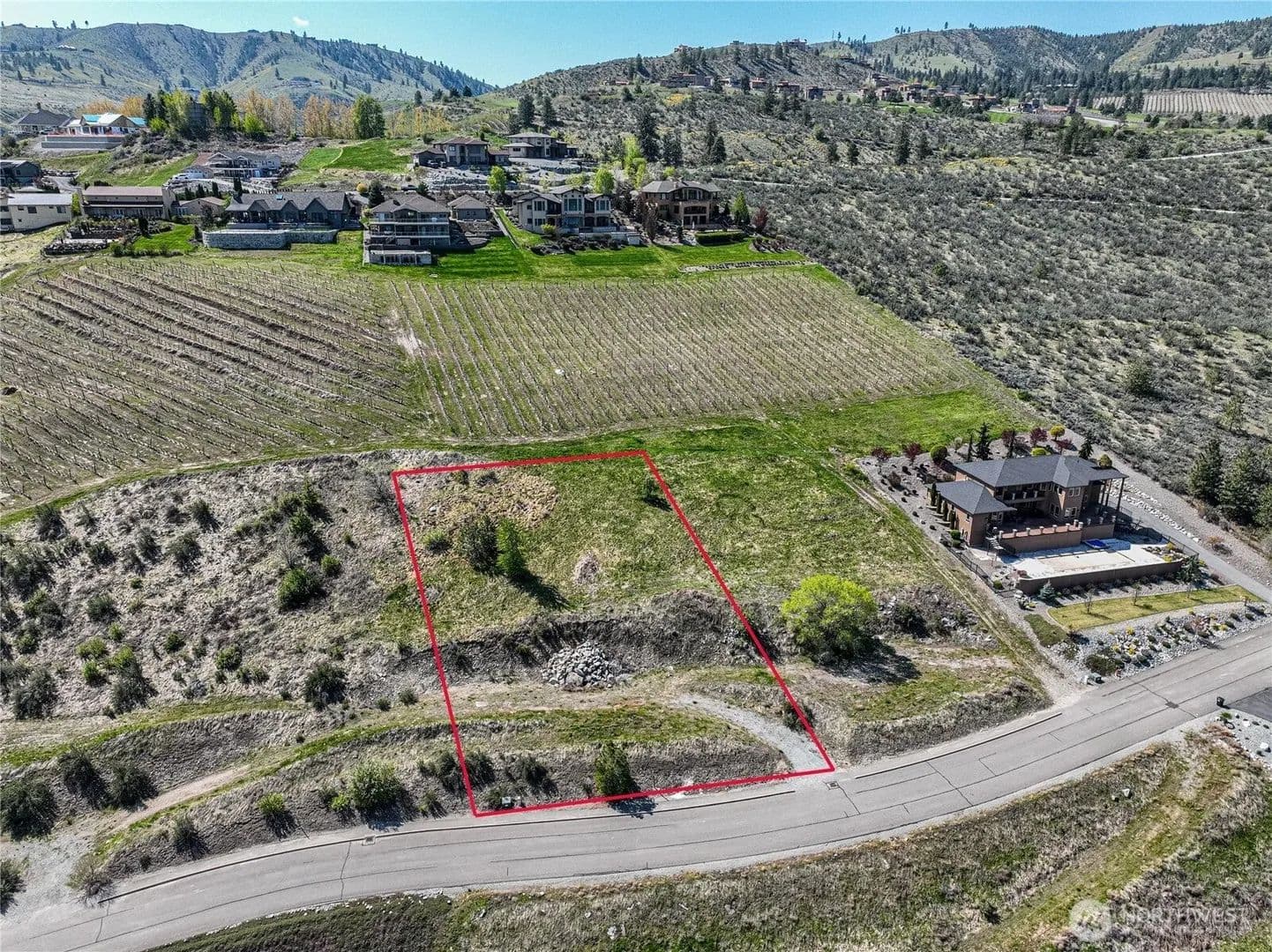 Clos Chevalle premier lot 49 with amazing panoramic views of Lake Chelan. Clos Chevalle is Lake Chelan's most prestigious gated community with 140 acres overlooking glorious vineyards & crystal clear waters. Enjoy 3 miles of walking trails, open space and amazing parks to enjoy with peace, tranquility & furry friends. This lot has great elevation and topography for a luxury build in the heart of wine country. Lot 49 backs up some of the 100 acres of vineyards with an amazing view corridor. There is a flat building pad with an easy entryway or option to increase elevation closer to the vineyard for a commanding view of the shimmering lake. Lot purchase comes w/ permitted home plans for a remarkable build. Gate code needed for entry.