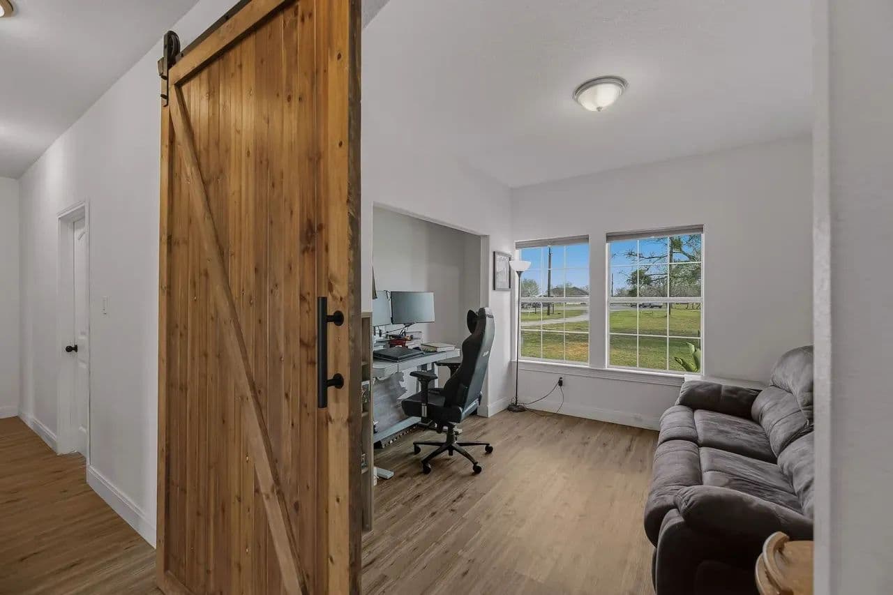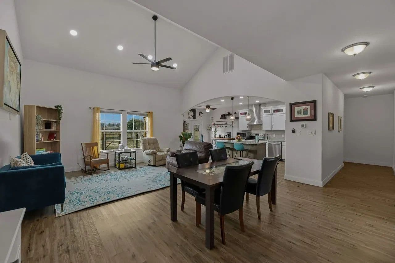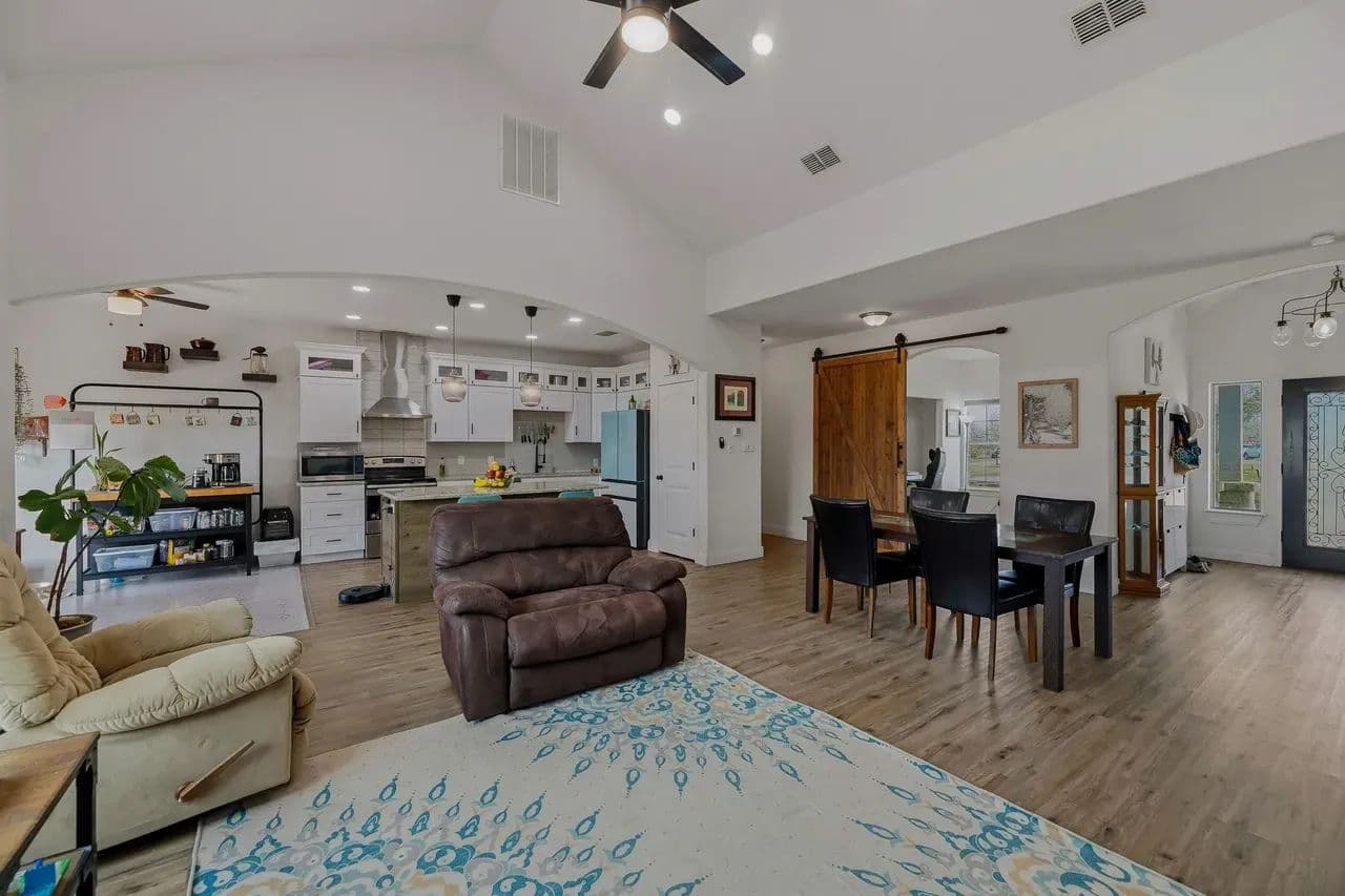 Come explore Hidden Ranch where country privacy meets modern comfort! Tucked away on a quiet cul-de-sac, this one-acre country retreat offers peaceful seclusion and scenic rural views while delivering the class and function of a modern home. Built in 2021, the 2,088 square foot residence blends country charm with thoughtful design and contemporary comfort. The flexible floor plan features four bedrooms and two-and-a-half baths, or alternatively three bedrooms with a dedicated office, study, nursery, playroom, or den to suit your lifestyle. An open-concept layout with vaulted ceilings creates a spacious, airy feel-ideal for everyday living and entertaining, while the durable vinyl and laminate flooring throughout the home ensure both style and low-maintenance care.