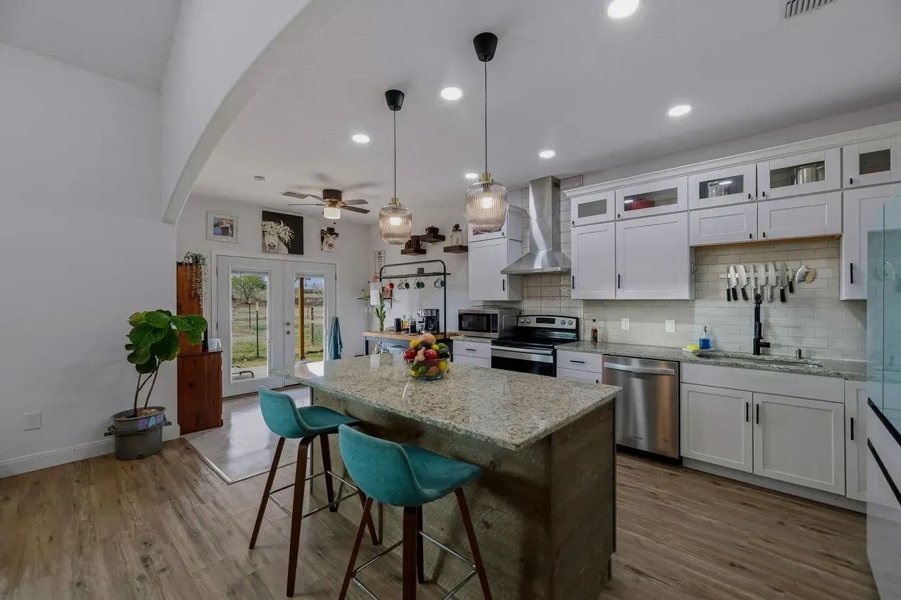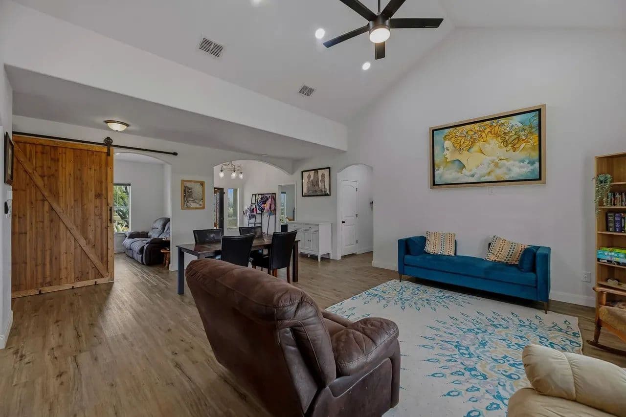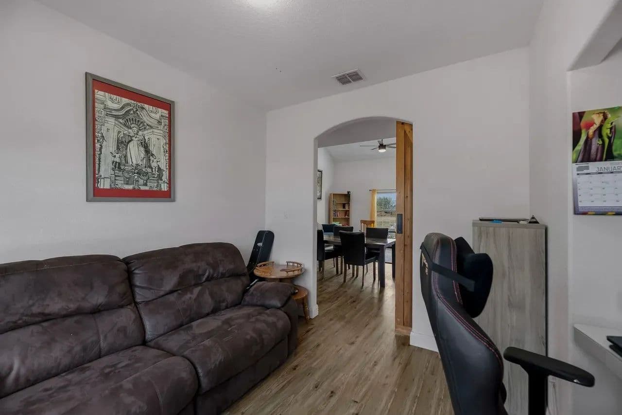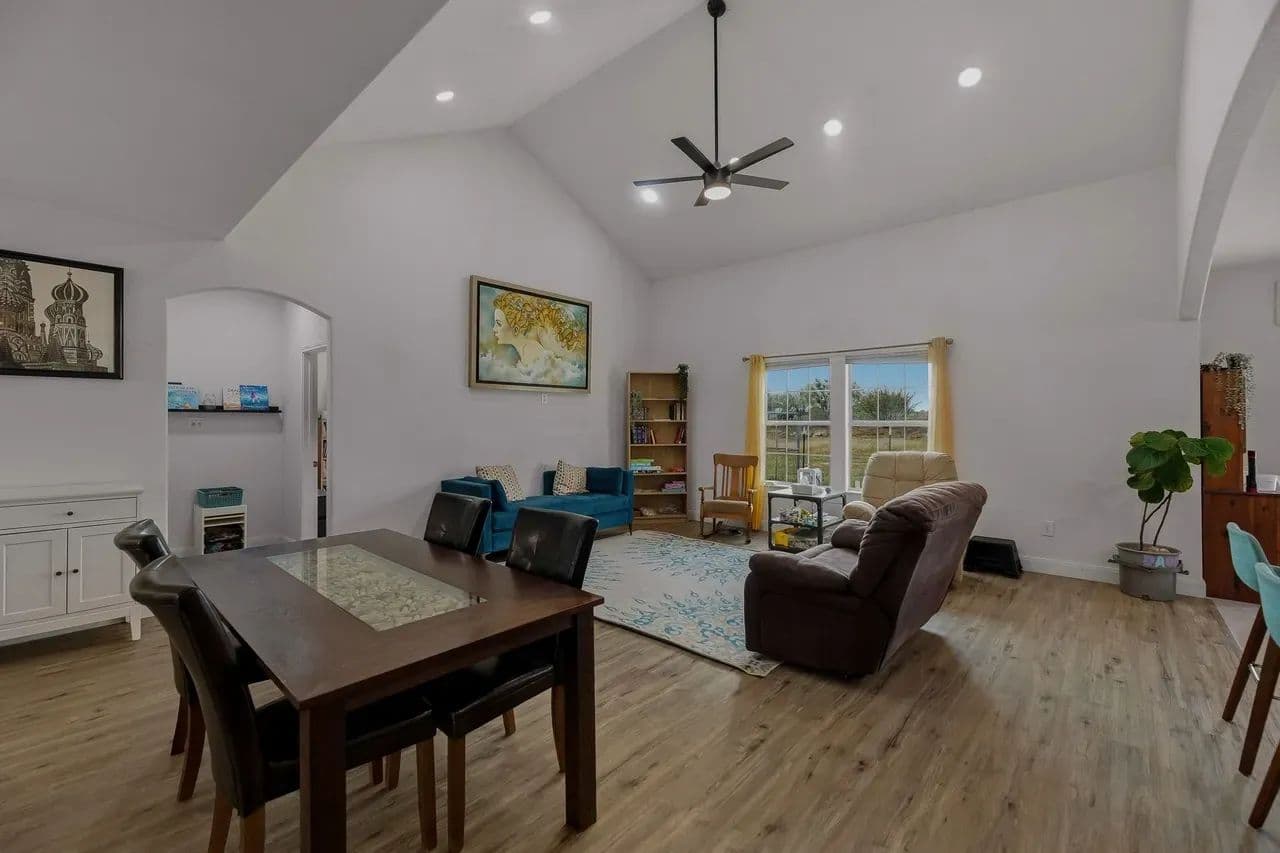 Come explore Hidden Ranch where country privacy meets modern comfort! Tucked away on a quiet cul-de-sac, this one-acre country retreat offers peaceful seclusion and scenic rural views while delivering the class and function of a modern home. Built in 2021, the 2,088 square foot residence blends country charm with thoughtful design and contemporary comfort. The flexible floor plan features four bedrooms and two-and-a-half baths, or alternatively three bedrooms with a dedicated office, study, nursery, playroom, or den to suit your lifestyle. An open-concept layout with vaulted ceilings creates a spacious, airy feel-ideal for everyday living and entertaining, while the durable vinyl and laminate flooring throughout the home ensure both style and low-maintenance care.