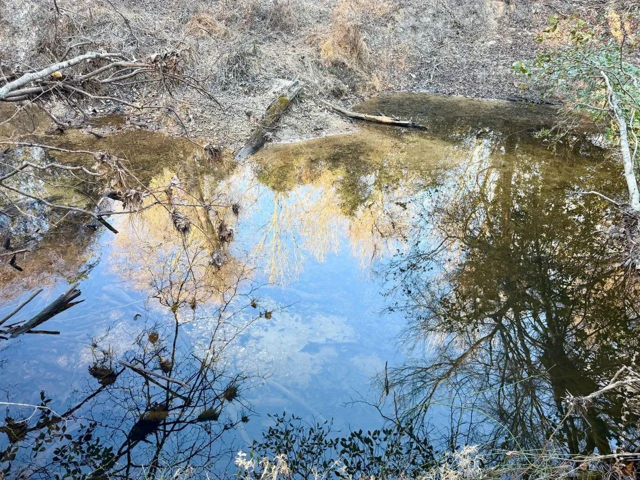 A meandering creek provides a water source that wildlife depend on, increasing activity and success.