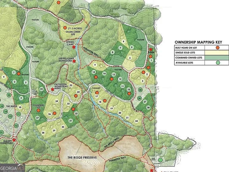 SERENITY SEEKERS: A truly exceptional opportunity awaits to build your dream home on a 5-acre lot within a sought-after community, offering immediate access to miles of private hiking trails and a two-mile stocked trout stream perfect for catch-and-release fly fishing. Set along the winding path of Spring Camp Road, your new mountain oasis features the soothing sound of a babbling brook/creek at the rear of the property and a scenic pasture view with a partial mountain vista. The overall neighborhood layout prioritizes conservation with more than 300 acres of common areas, spring creeks, hardwood forests, and meadows, all protected by a conservation easement that joins the Chattahoochee National Forest. Community amenities include Anderson Lake, a stone pavilion, primitive camp sites, and The Spring Camp Barn with 5 stalls and a 10-acre pasture for the equestrian. Essential utilities, including power, cable, phone, and high-speed internet access, are conveniently available underground at the street, though water will require a private well, for which soil tests have been completed by the developer. Property owners here appreciate the well-defined Covenants and Restrictions designed to maintain high architectural and aesthetic standards, thereby protecting your investment and long-term property values. The neighborhood's commitment to preserving the integrity of the Anderson Creek Watershed, one of the last unspoiled primary trout streams in Georgia, makes this a rare and valuable investment. Consider purchasing this and the lot beside it and combining the two for a true mountain estate. Inquire today to secure your slice of this unique mountain retreat and begin designing your custom home!