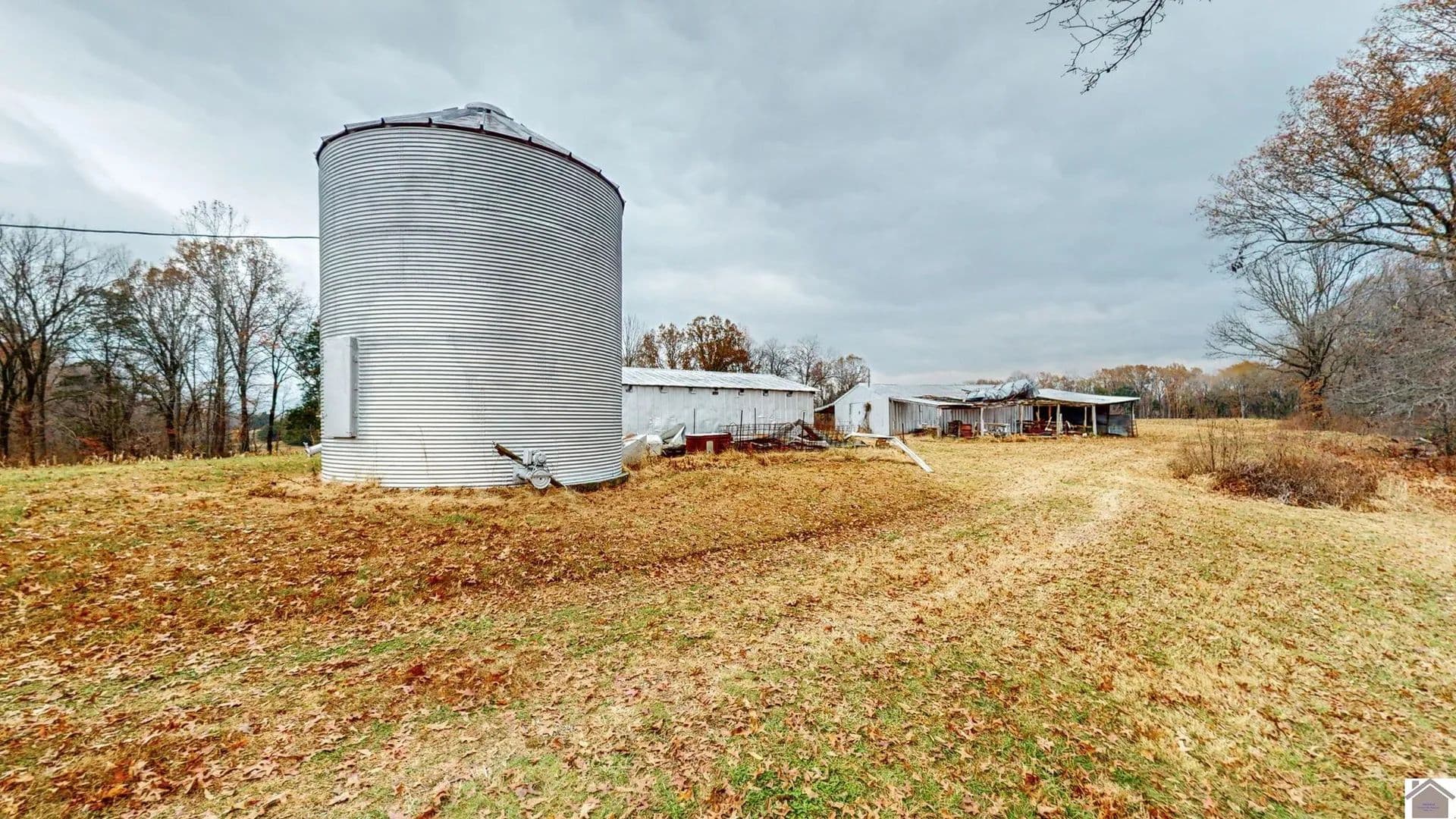 approximately 27 acres with 2 older buildings and a grain bin