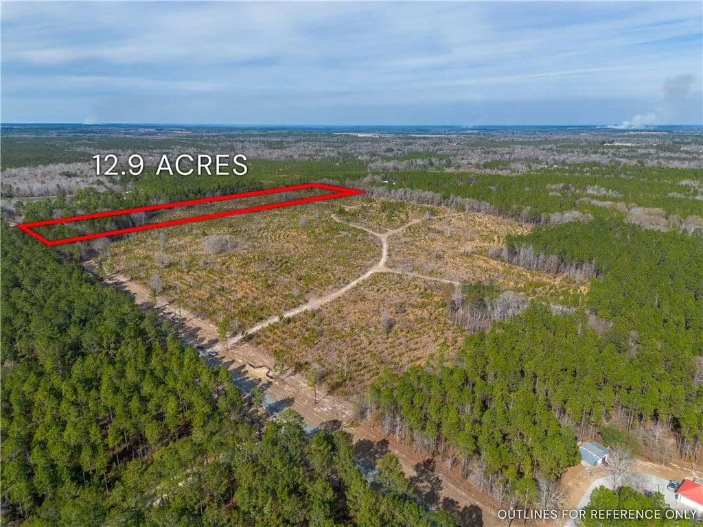 This 12.9-acre tract offers a great blend of accessibility and country living, with paved road frontage on Bell Line Road and additional frontage on Wilson Woodard Road. The dual road access provides flexibility for driveway placement and property layout options.