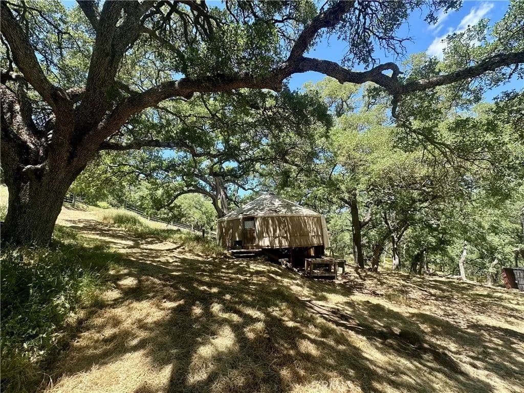 Beautiful 53 +/- acres of rolling mountains and oaks. The owner has built sweat equity into this property and it can be yours!! Property is mostly fenced and boast a off grid approach to green living. There are a couple of large graded areas and the property even has a Yurt to enjoy.There is approximately 10 thousand gallons of water storage on the property.