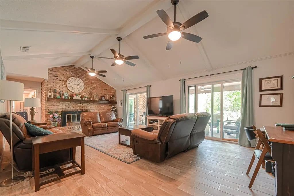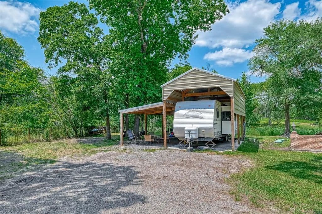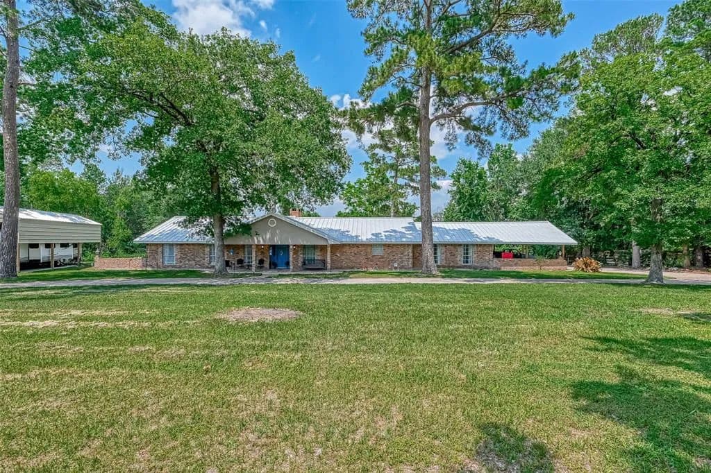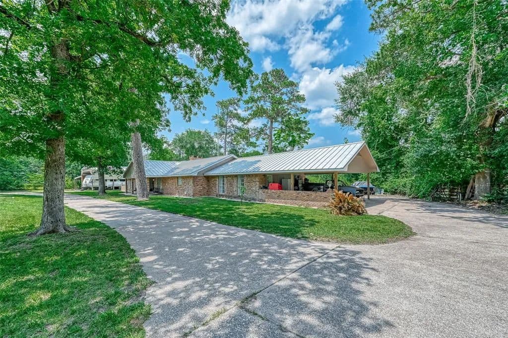 Welcome 758 IH 45N. This 2520 sq/ ft ranch style home sits on 5 acres of unrestricted land. Located on a quiet street right off 45 N with a second entrance to the property on Livingston Moffett in the back of the property perfect for a commercial business, horses, or agriculture. The home has a gated circle driveway and 2 carports one is fitted for RV's with hookups. Three bedrooms with 2 primary suites, 3 bathrooms, large office, separate formal dining room, and open concept living room and kitchen. Beautiful wood burning fireplace is the focal point in the living room with incredible views of the landscape through 2 double paned sliding doors. The updated kitchen has granite countertops, soft close drawers, double oven, island cooktop, and farm sink. Make your appointment today to show this beautiful home on 5 acres!