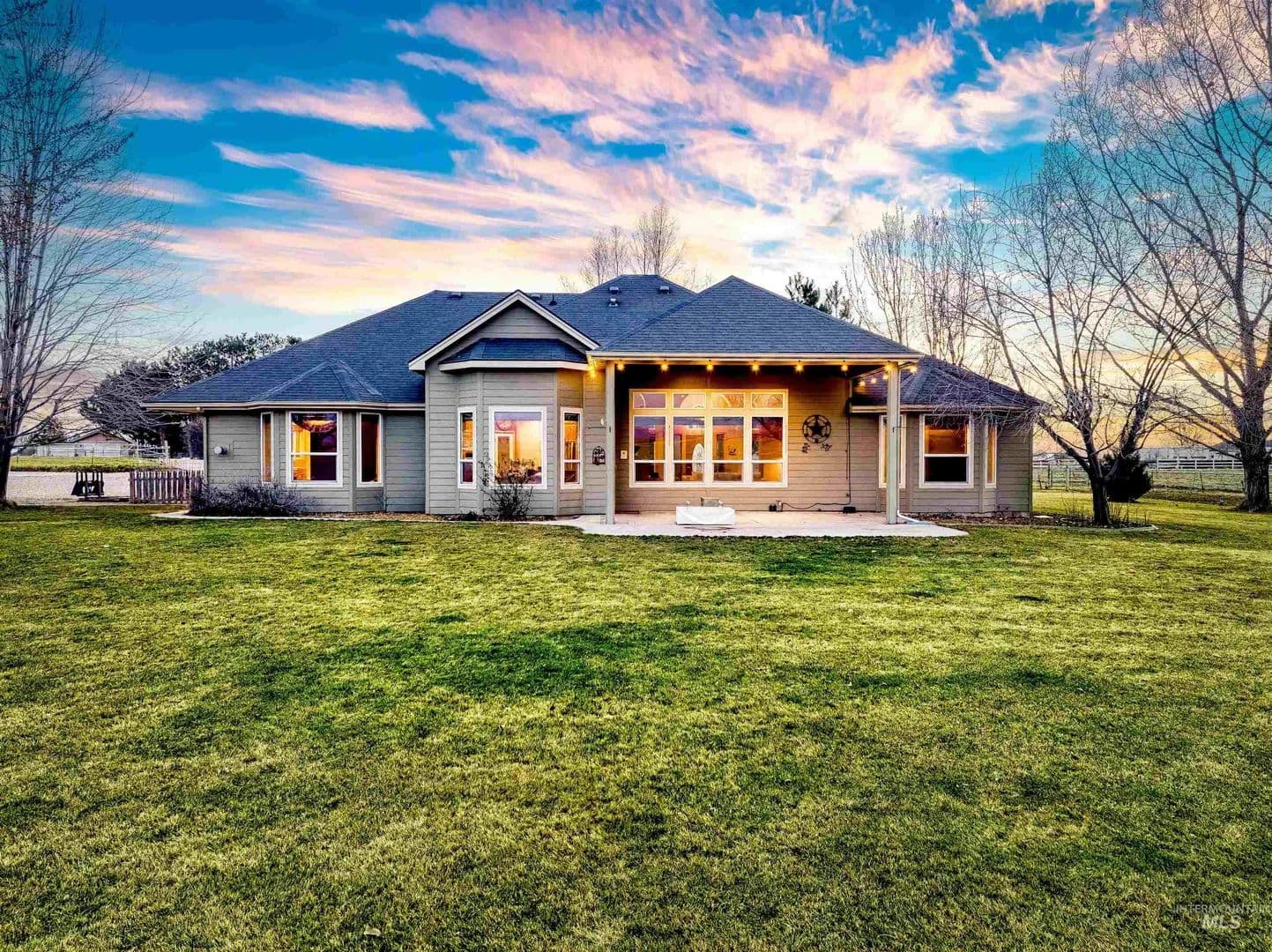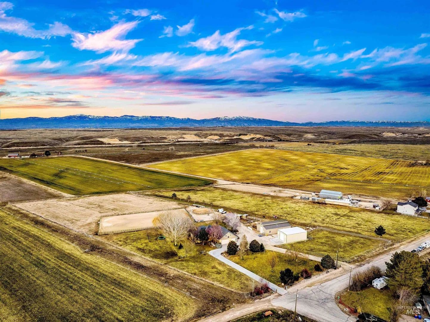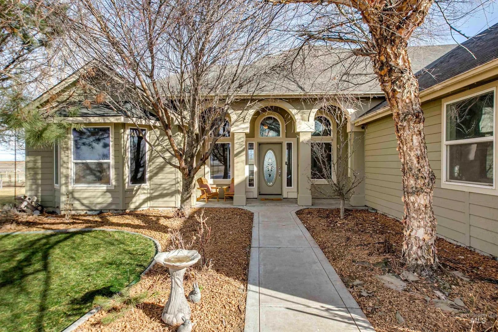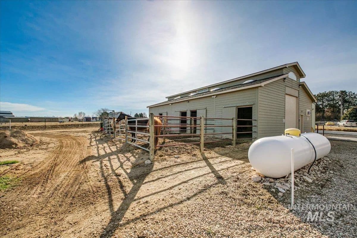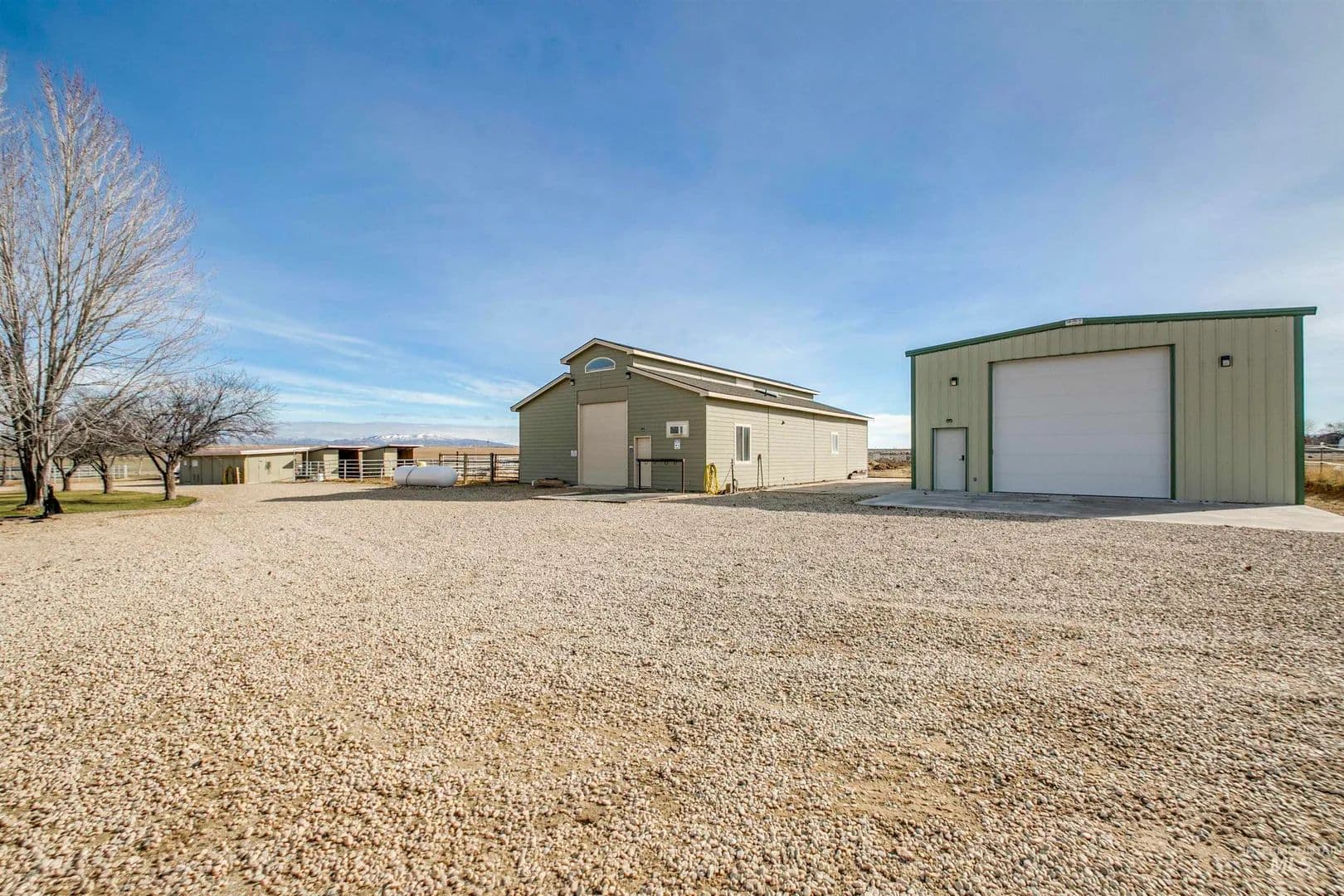 Welcome to your equestrian paradise! This single-story 4-bed, 2.5-bath haven is thoughtfully laid out to provide comfort and privacy. Natural light floods the great room that flows into the dining room & kitchen featuring maple cabinets, granite countertops, and a gas cooktop. Enjoy the spacious primary suite with fireplace, ensuite, and jetted tub. The bonus room upstairs is a versatile space offering a wet bar perfect for entertaining. This sprawling horse property features mature landscaping and a covered patio with majestic views of the Boise foothills. Delight in the equine amenities for riding enthusiasts including a 130x215 arena, covered horse shelters, and sprawling pastures. The property's centerpiece is a 4-stall barn with tack room, hay storage and loft storage plus cozy 1-bed, 1-bath guest quarters. A 30x48 heated RV shop provides ample storage and features 14' automatic garage doors. With no HOA or CC&Rs & conveniently located on the Boise/Kuna border, this is a one-of-a-kind horse property.