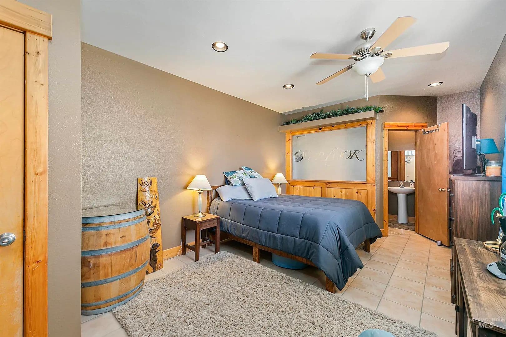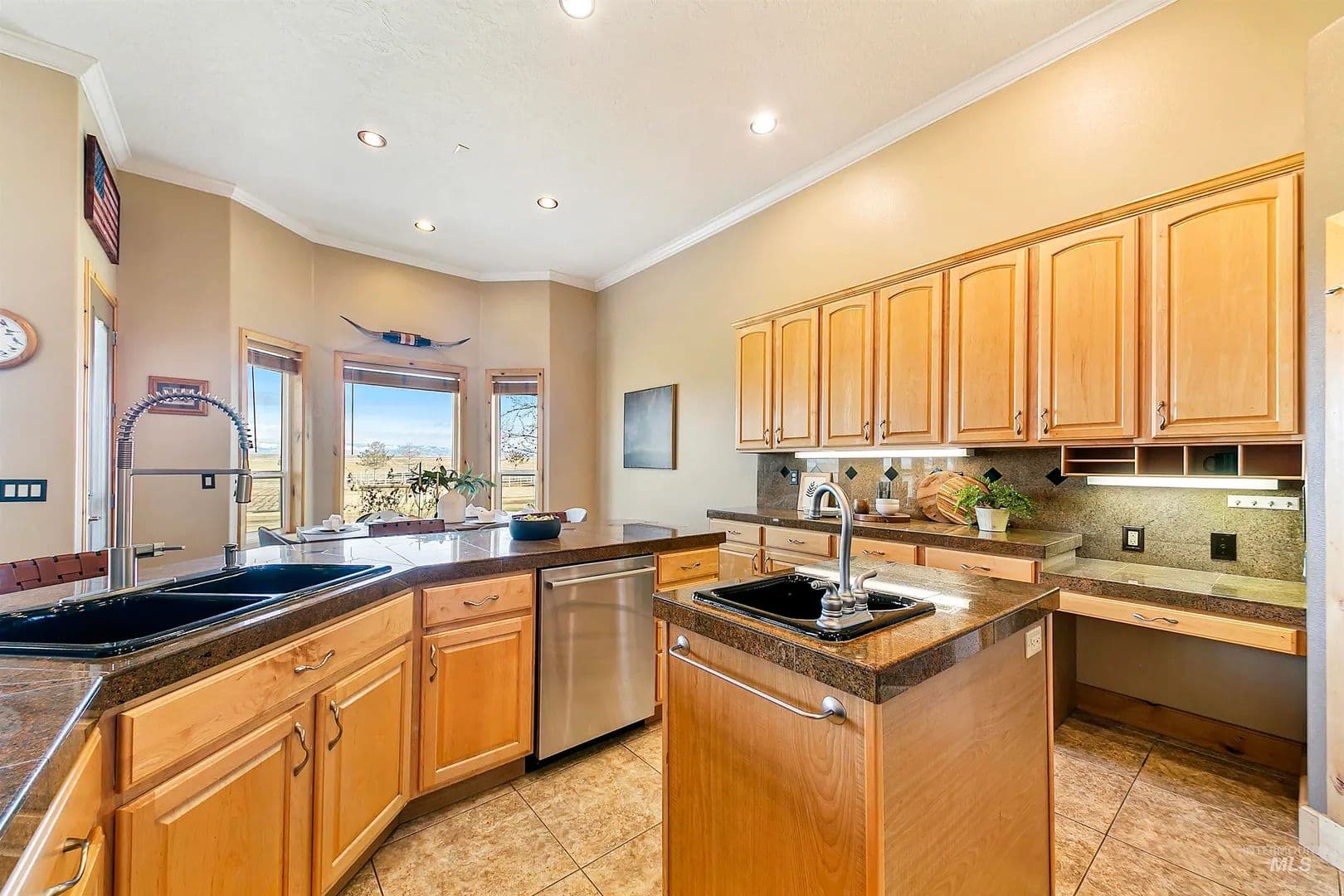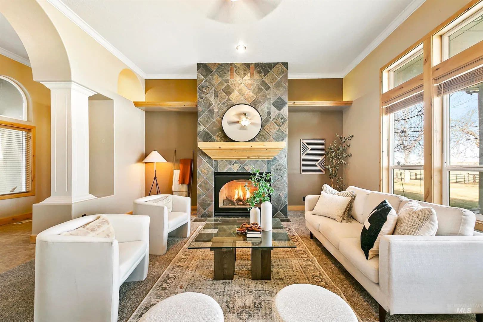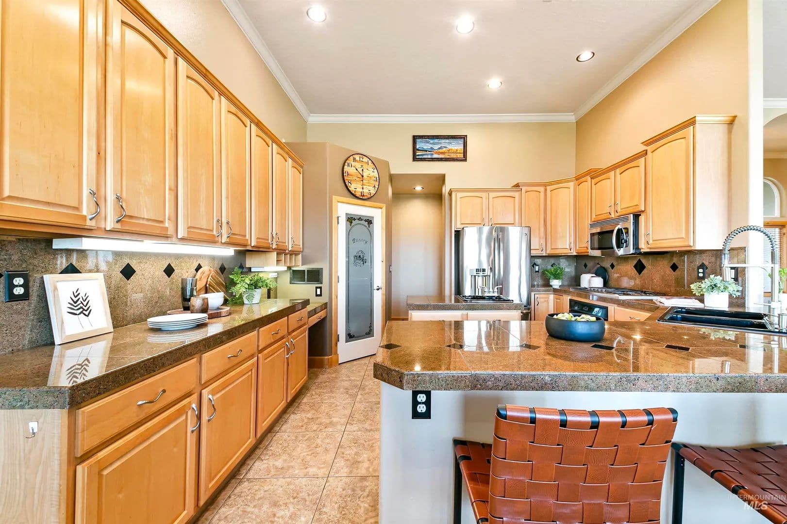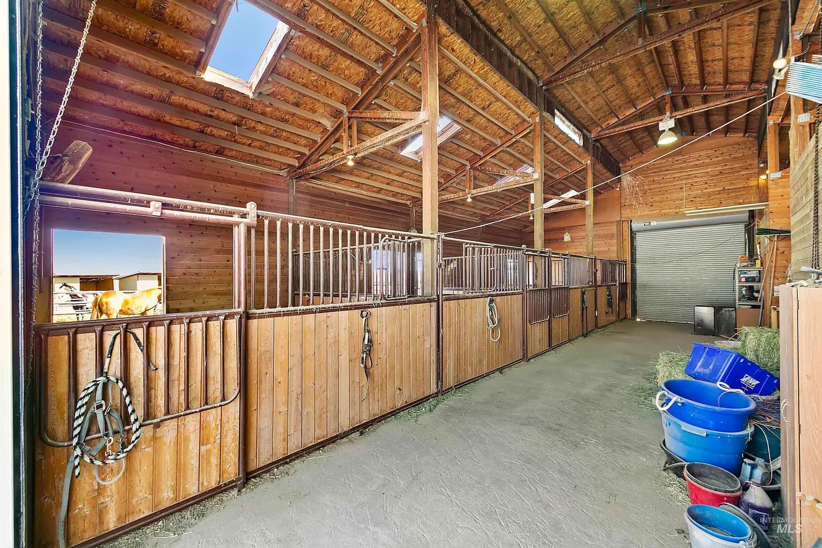 Welcome to your equestrian paradise! This single-story 4-bed, 2.5-bath haven is thoughtfully laid out to provide comfort and privacy. Natural light floods the great room that flows into the dining room & kitchen featuring maple cabinets, granite countertops, and a gas cooktop. Enjoy the spacious primary suite with fireplace, ensuite, and jetted tub. The bonus room upstairs is a versatile space offering a wet bar perfect for entertaining. This sprawling horse property features mature landscaping and a covered patio with majestic views of the Boise foothills. Delight in the equine amenities for riding enthusiasts including a 130x215 arena, covered horse shelters, and sprawling pastures. The property's centerpiece is a 4-stall barn with tack room, hay storage and loft storage plus cozy 1-bed, 1-bath guest quarters. A 30x48 heated RV shop provides ample storage and features 14' automatic garage doors. With no HOA or CC&Rs & conveniently located on the Boise/Kuna border, this is a one-of-a-kind horse property.