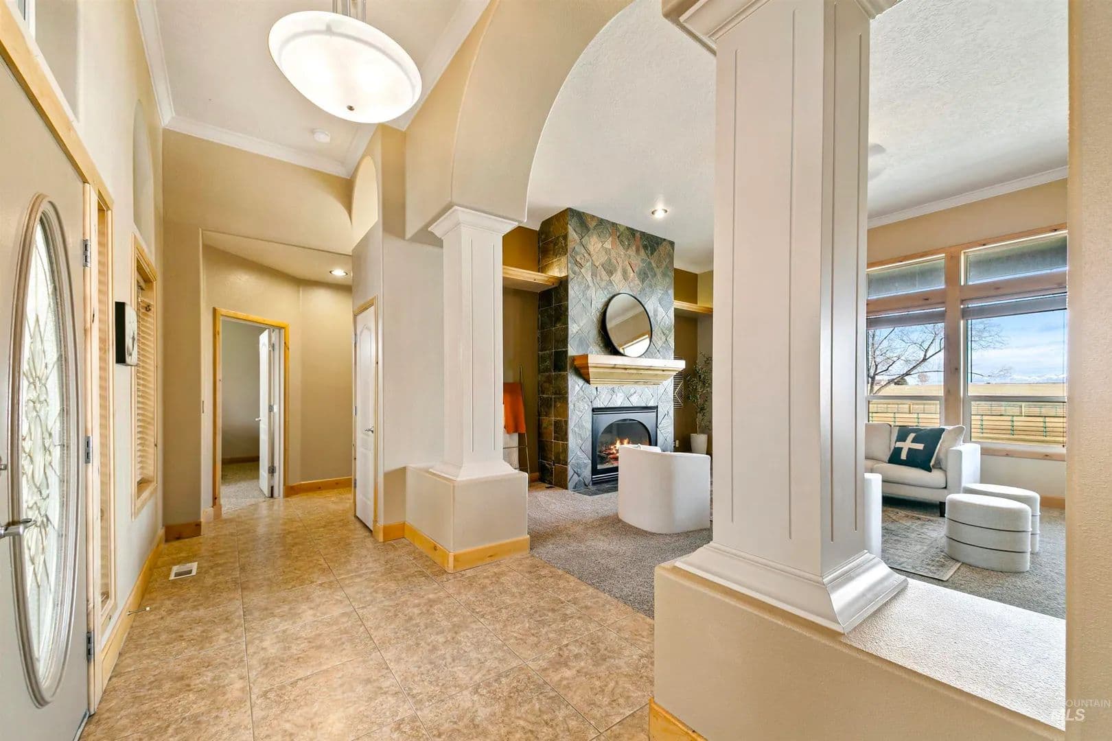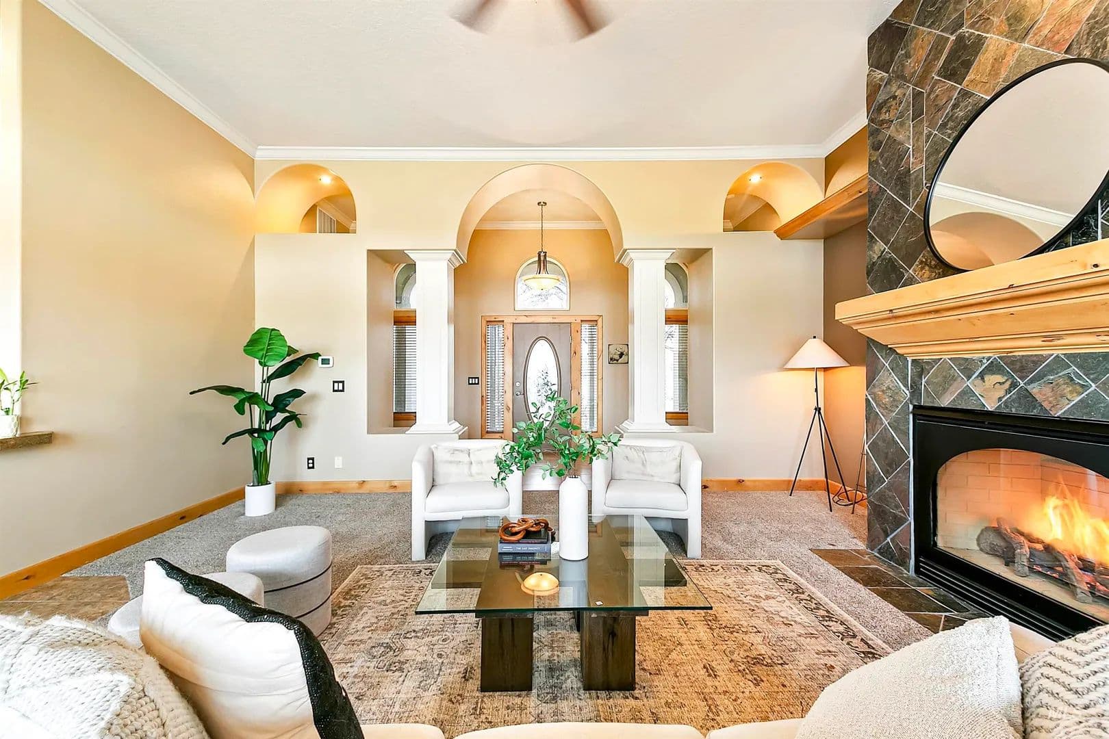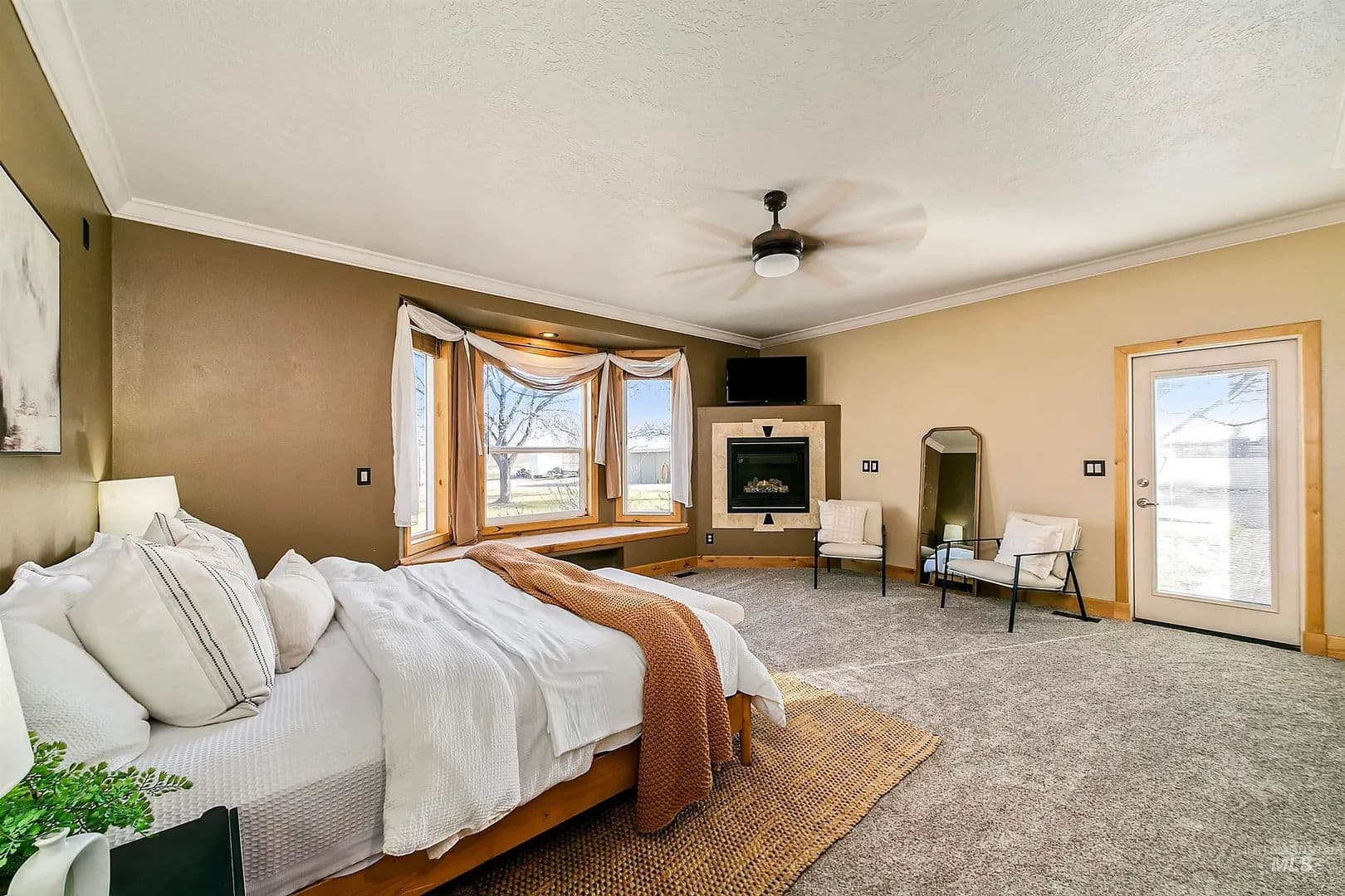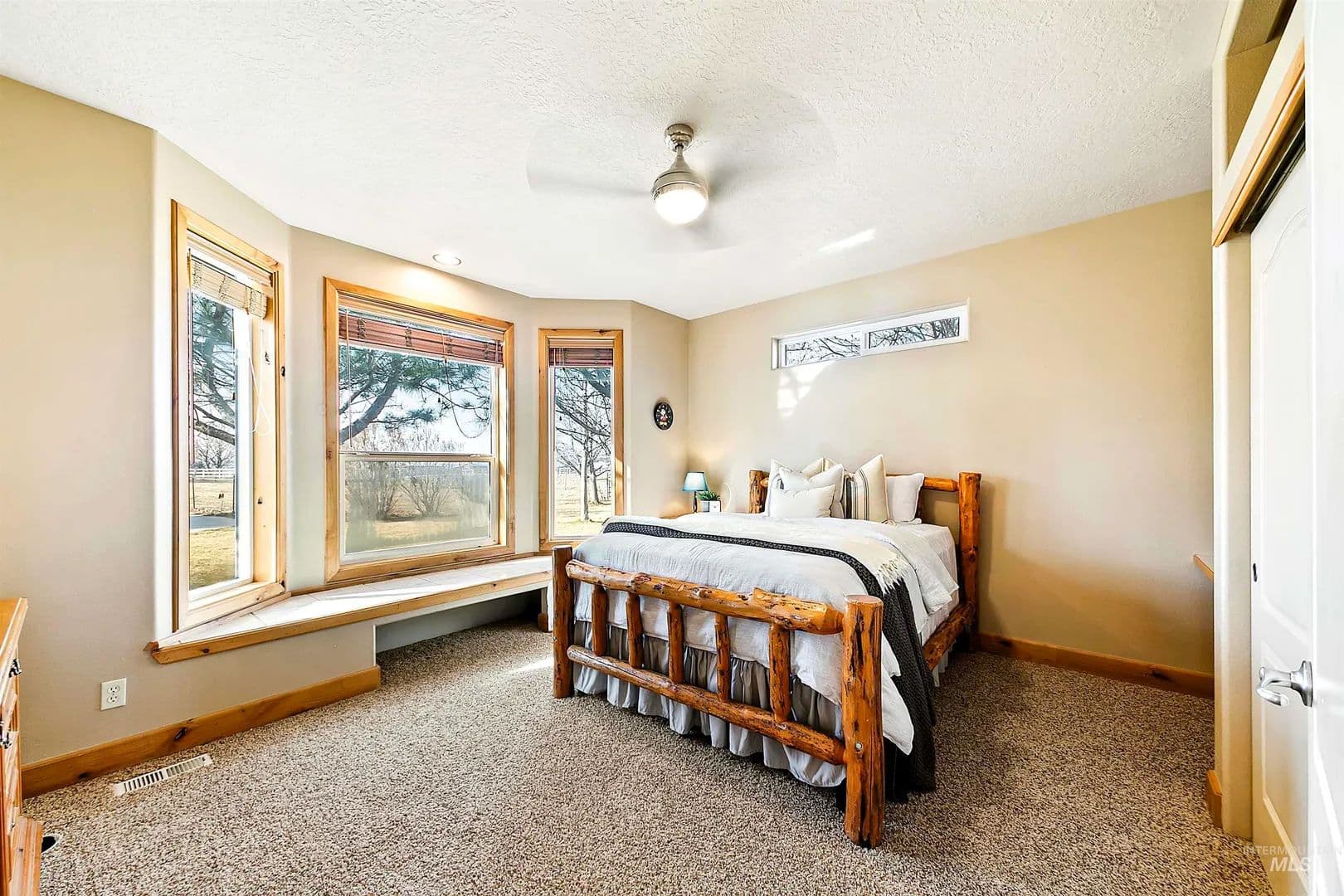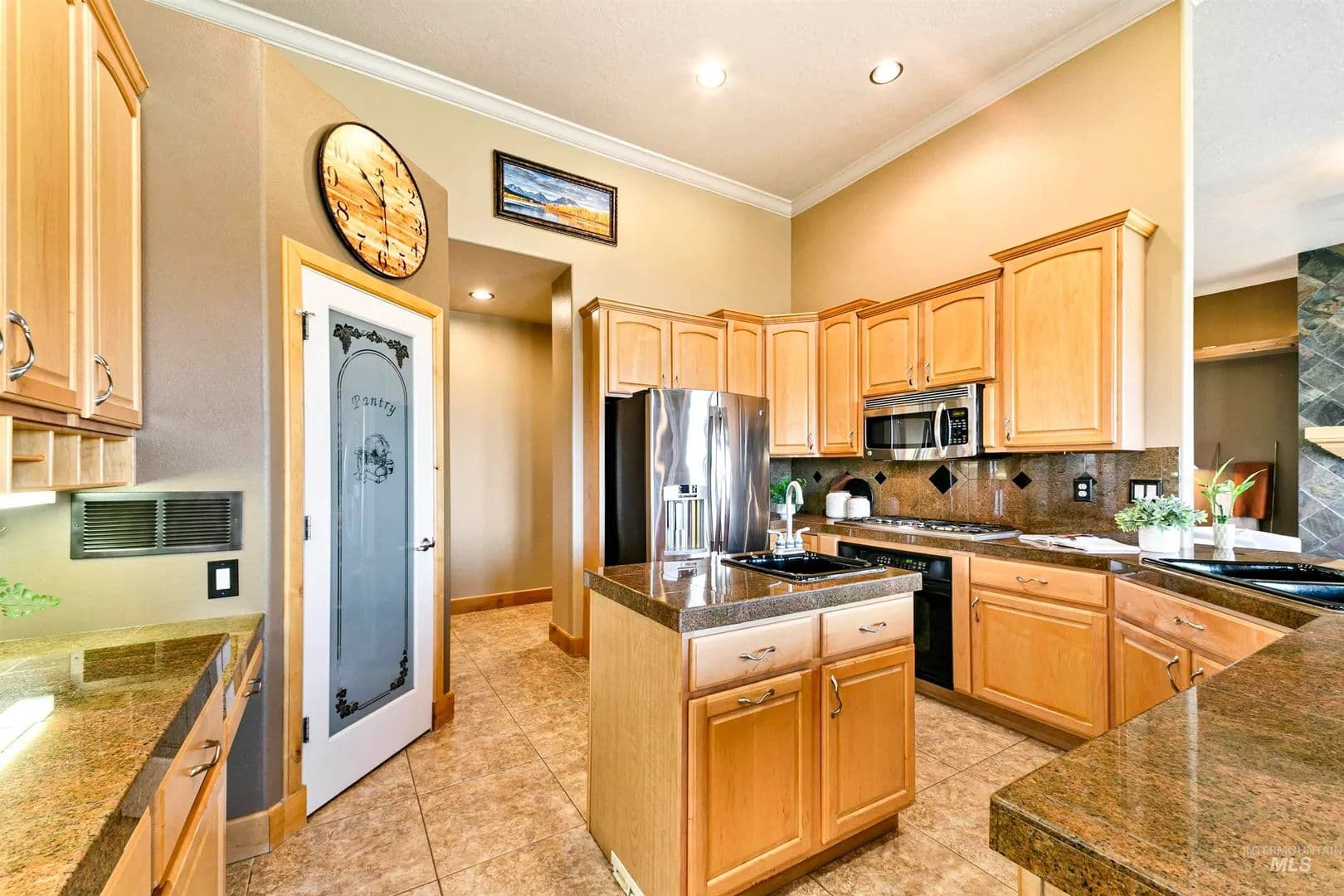 Welcome to your equestrian paradise! This single-story 4-bed, 2.5-bath haven is thoughtfully laid out to provide comfort and privacy. Natural light floods the great room that flows into the dining room & kitchen featuring maple cabinets, granite countertops, and a gas cooktop. Enjoy the spacious primary suite with fireplace, ensuite, and jetted tub. The bonus room upstairs is a versatile space offering a wet bar perfect for entertaining. This sprawling horse property features mature landscaping and a covered patio with majestic views of the Boise foothills. Delight in the equine amenities for riding enthusiasts including a 130x215 arena, covered horse shelters, and sprawling pastures. The property's centerpiece is a 4-stall barn with tack room, hay storage and loft storage plus cozy 1-bed, 1-bath guest quarters. A 30x48 heated RV shop provides ample storage and features 14' automatic garage doors. With no HOA or CC&Rs & conveniently located on the Boise/Kuna border, this is a one-of-a-kind horse property.