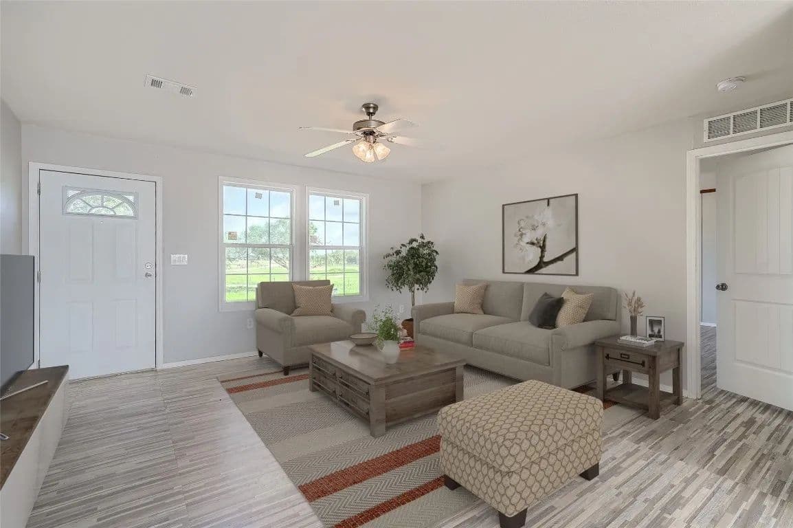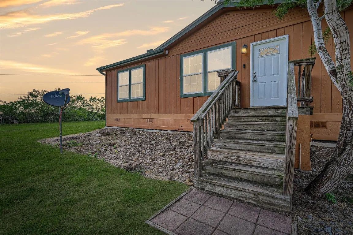 Embrace the perfect blend of country living and modern comforts at this stunning, competitively priced 11.813-acre ag-exempt property in Seguin. This 3-bedroom, 2-bath modular home offers stunning sunset views and ultimate privacy. It features an open eat-in kitchen, split bedroom plan, and a master suite with a garden tub and separate shower. The home includes brand new luxury vinyl flooring, central A/C, ceiling fans, and a separate utility room.