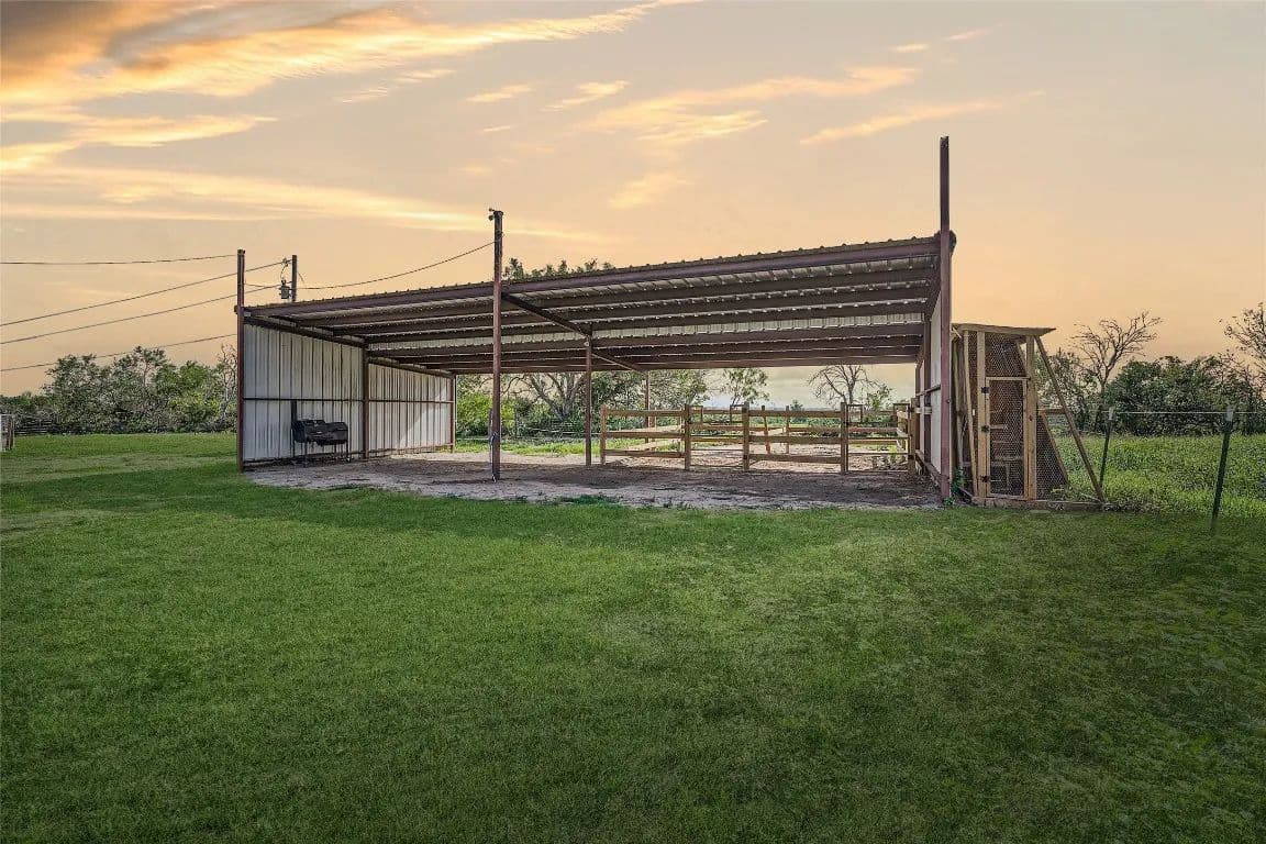 Ideal for equestrian enthusiasts, the property boasts a 50x24 horse/pole barn, multiple outbuildings, and a metal camper/RV cover with electric hookup. The cross-fenced perimeter with electric fencing ensures livestock safety. Additional highlights include city water, connected electricity, an on-site septic system, a private gate, and an oversized carport for RV/boat parking. This peaceful retreat offers convenient access to major roads and is located within the Manor ISD school district.